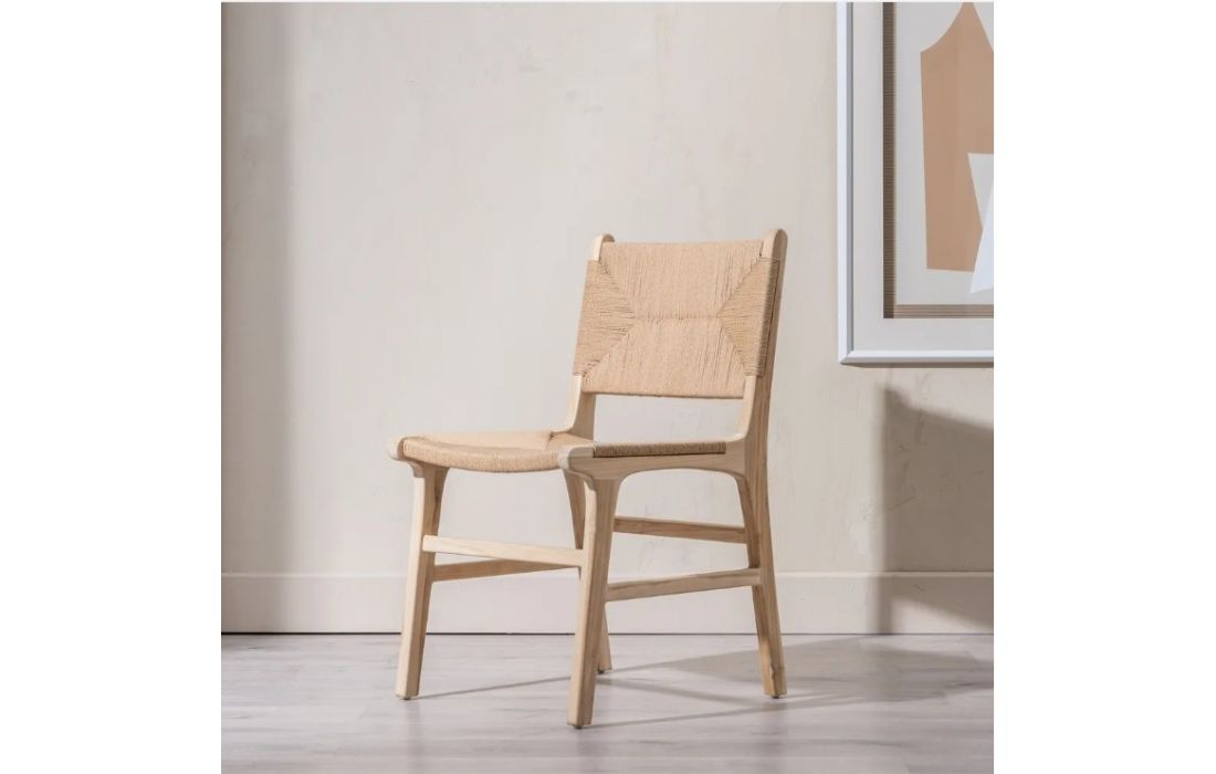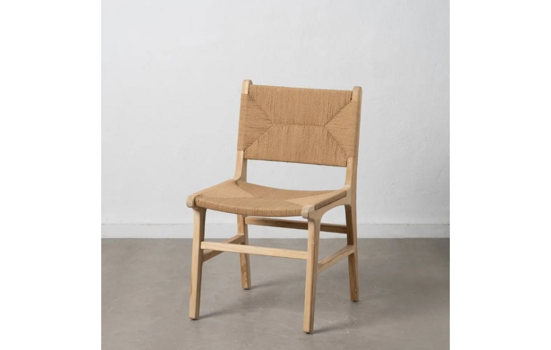 Cadeira com estrutura em madeira teca, fibra natutral.