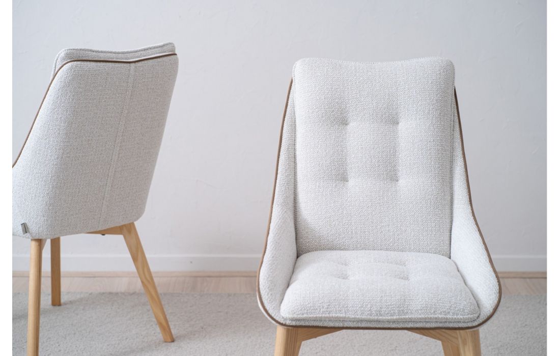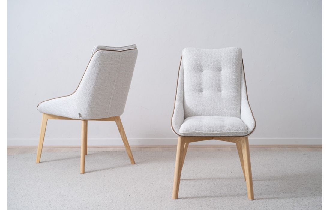 Cadeira em madeira maciça de carvalho com acabamento natural e tecidoDestinatário :
