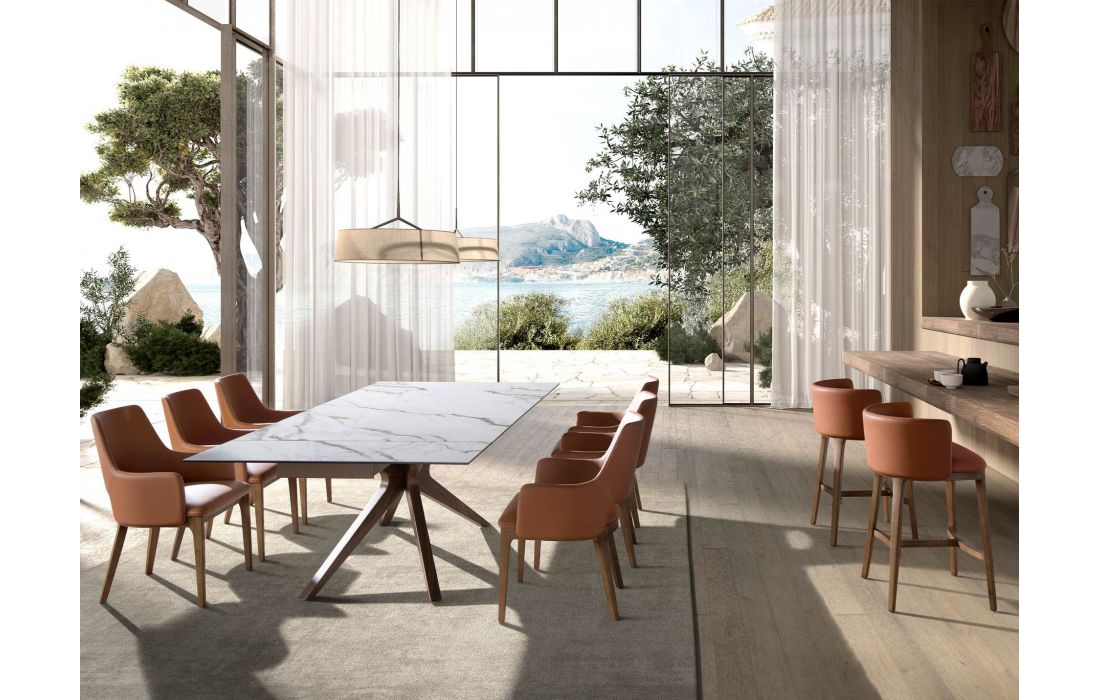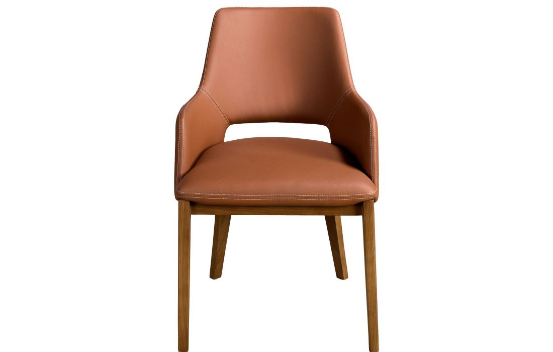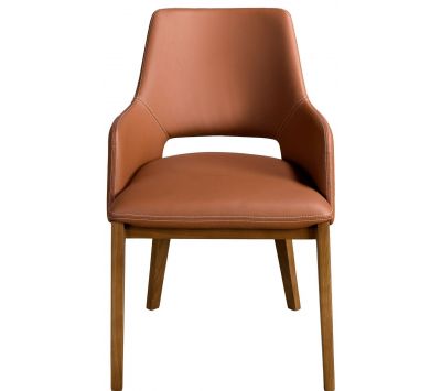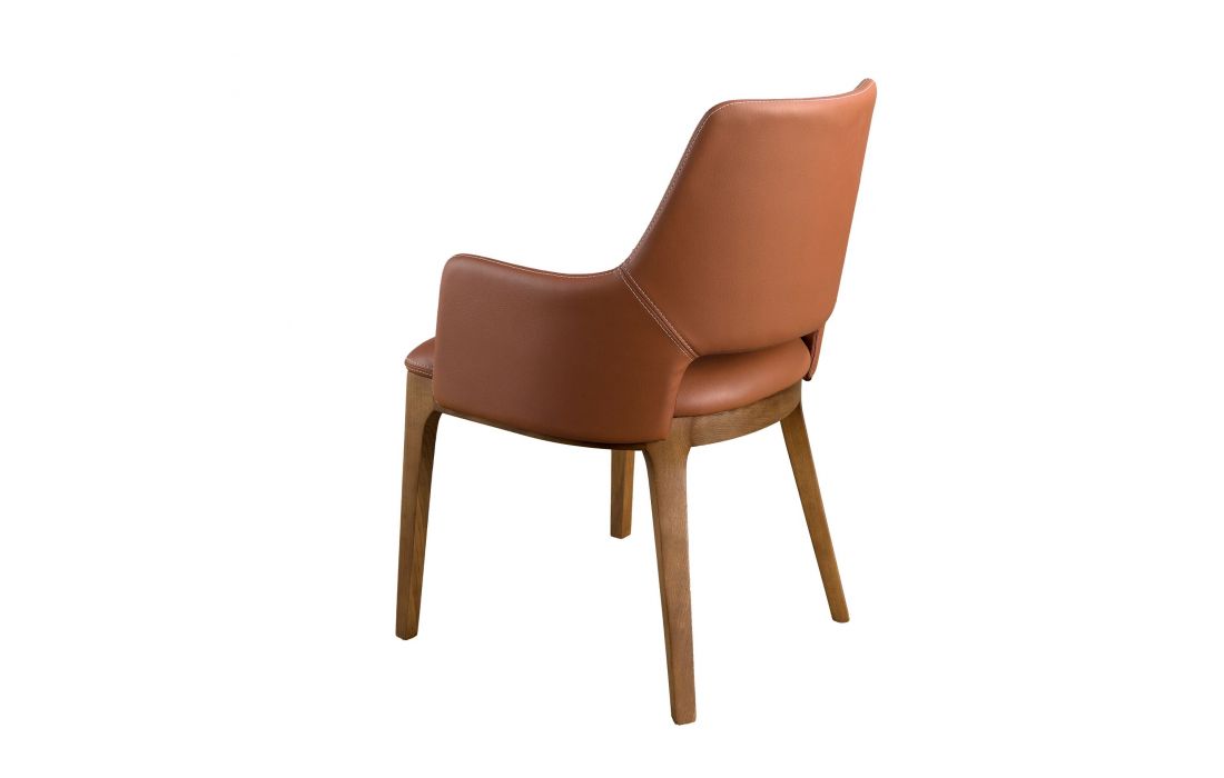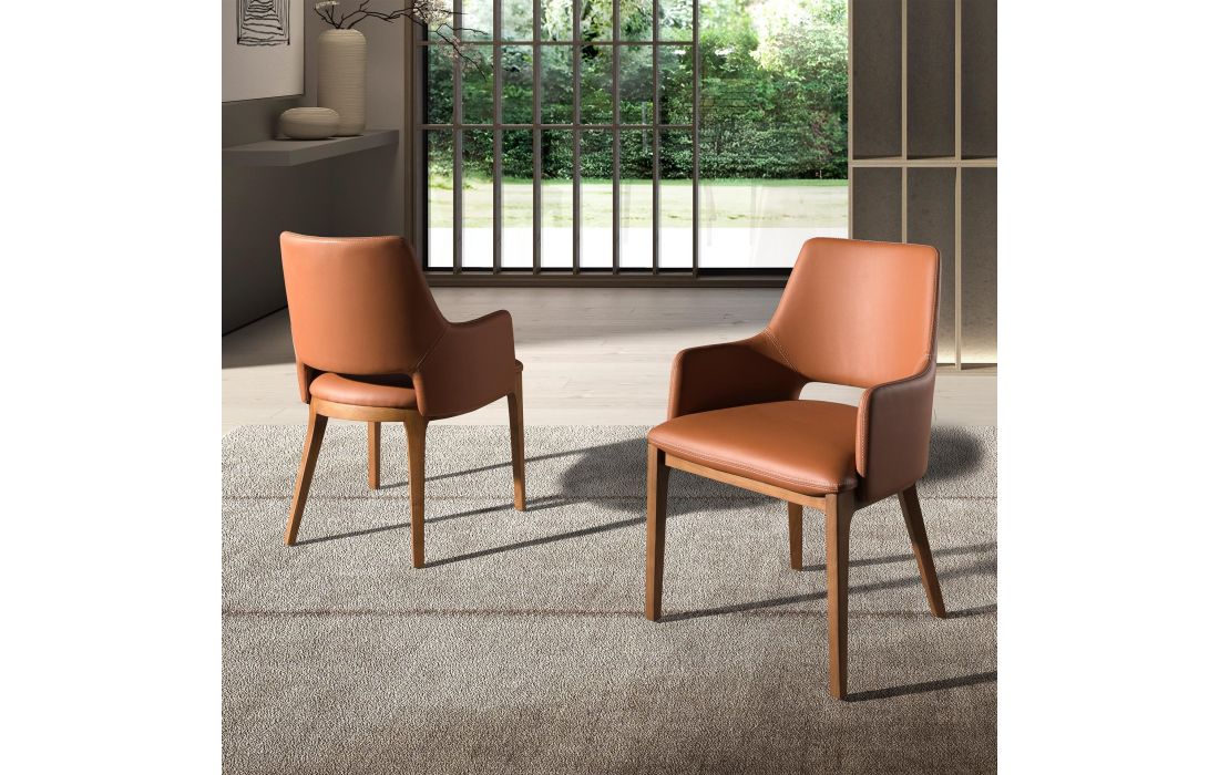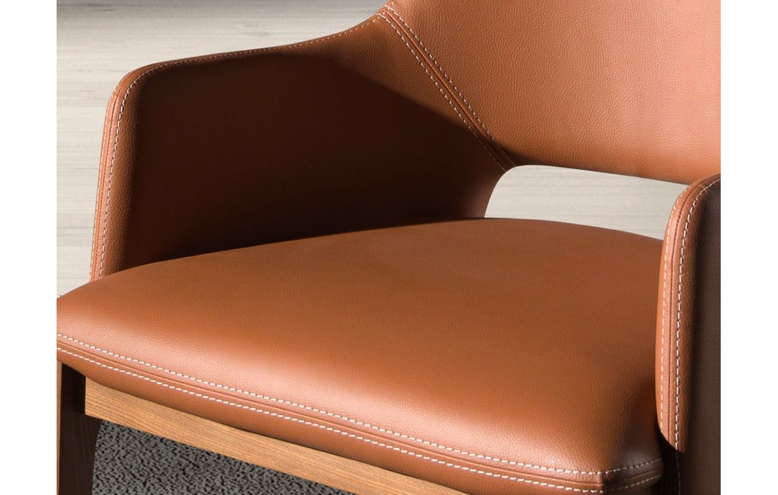 Poltrona de design moderno com assento e encosto estofados em pele sintética e as suas pernas de madeira folheada a nogueira natural, com um estilo vanguardista e intemporalDestinatário :