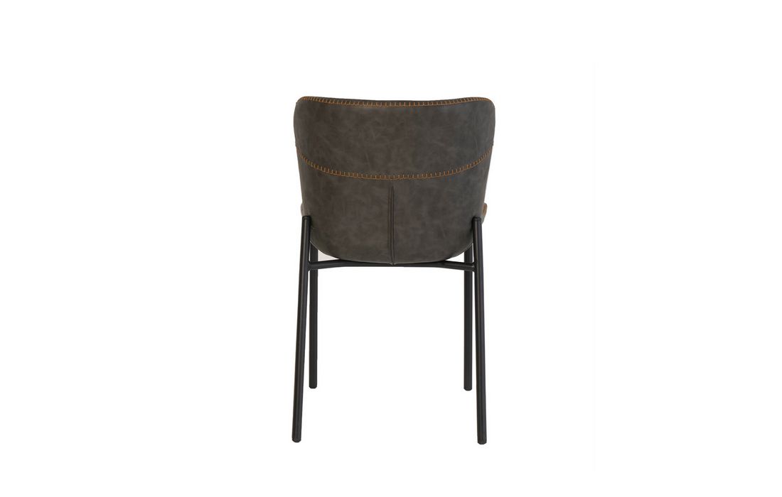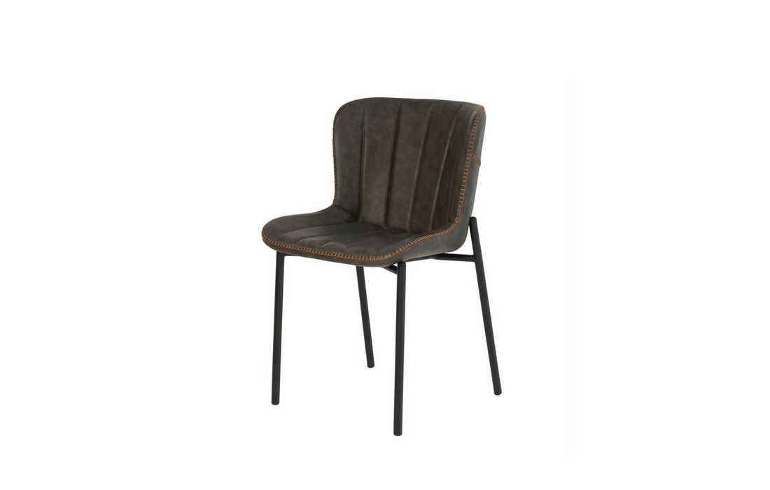O seu encosto curvado oferece um suporte ergonómico, enquanto o assento acolchoado garante conforto. Ambos os elementos são revestidos em pele sintética.