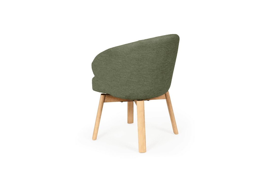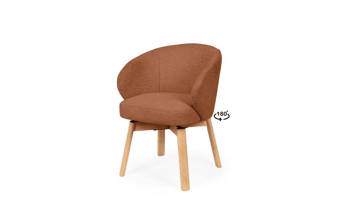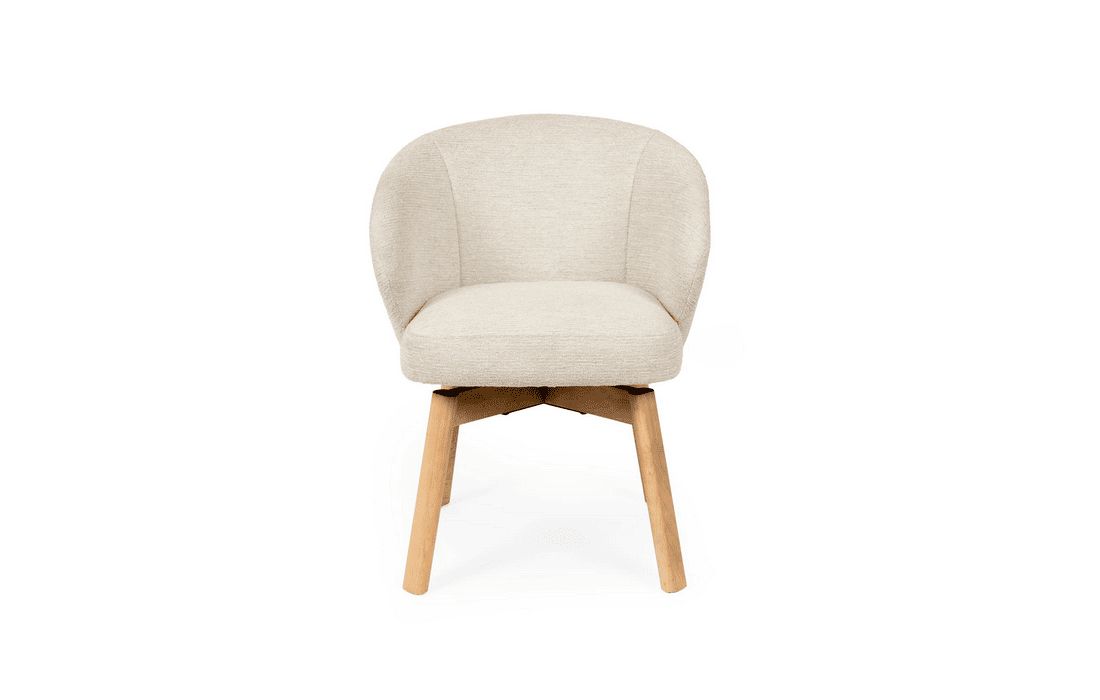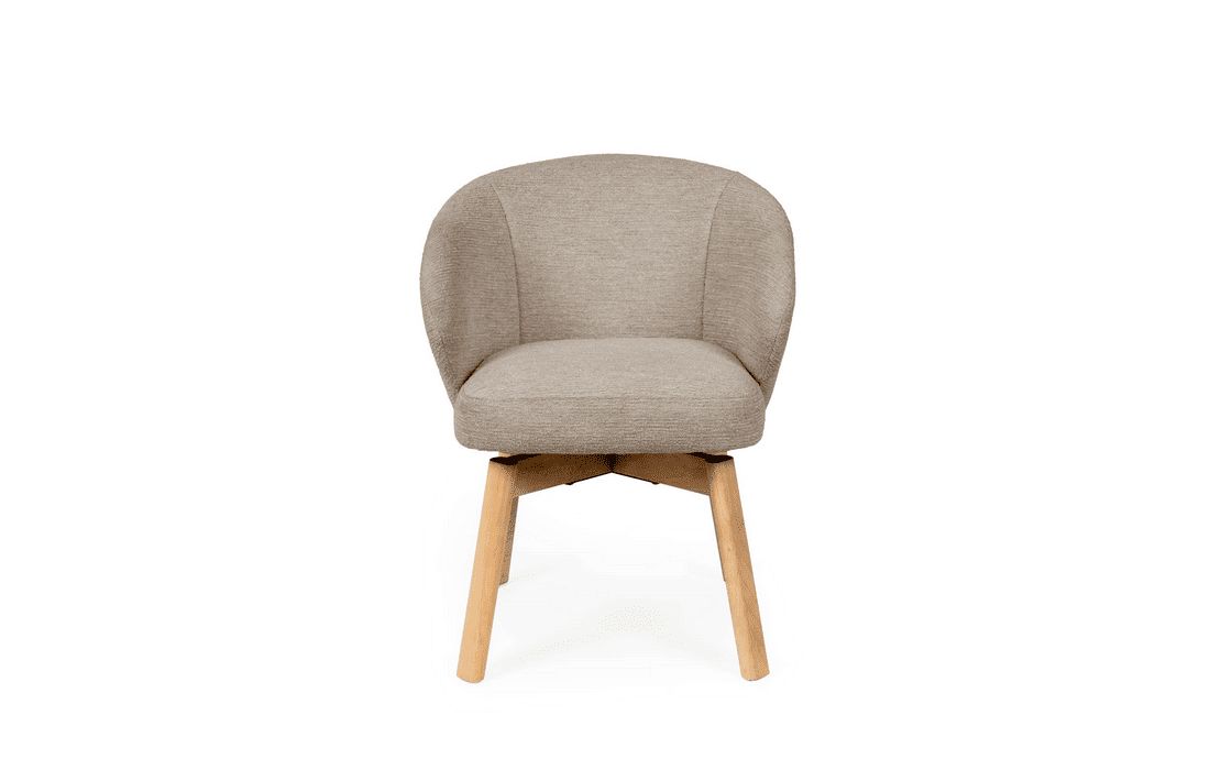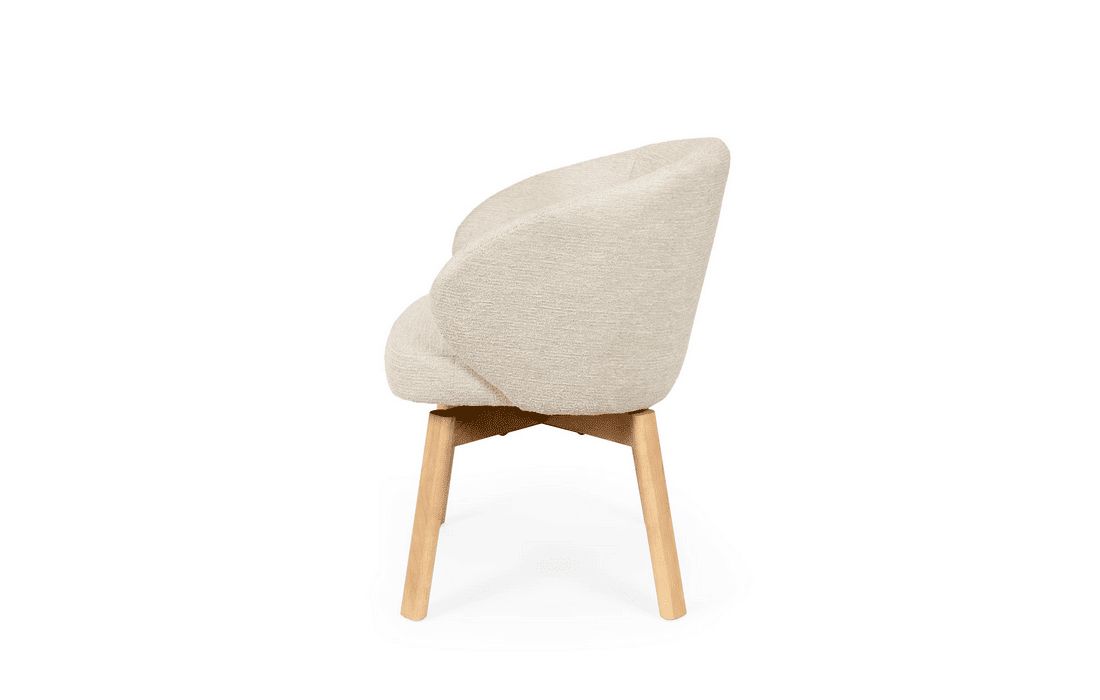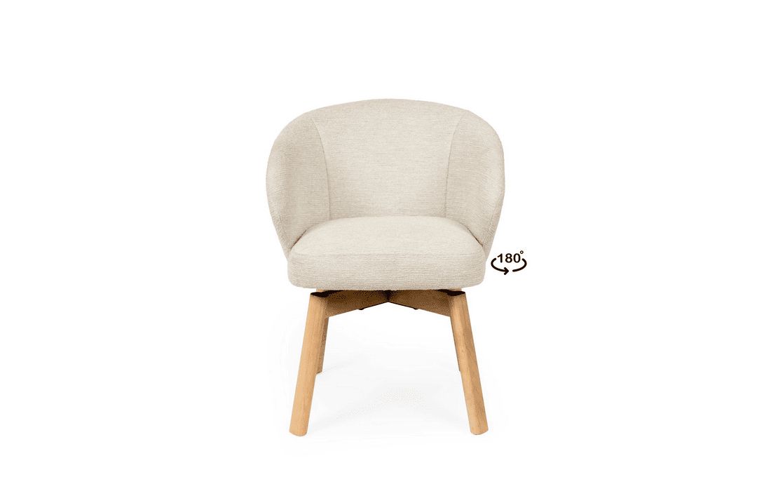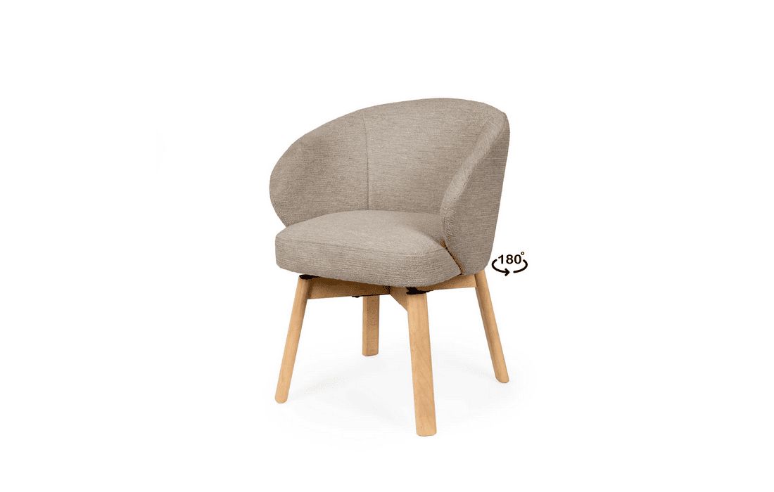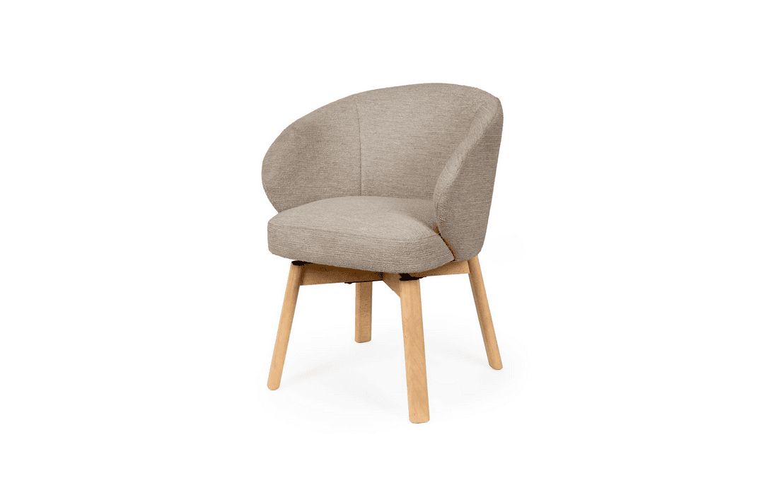 Esta cadeira personifica o aconchego moderno. O seu design envolvente e convidativo assenta sobre elegantes pés de madeira de faia, possui um mecanismo rotativo com retorno de 180º