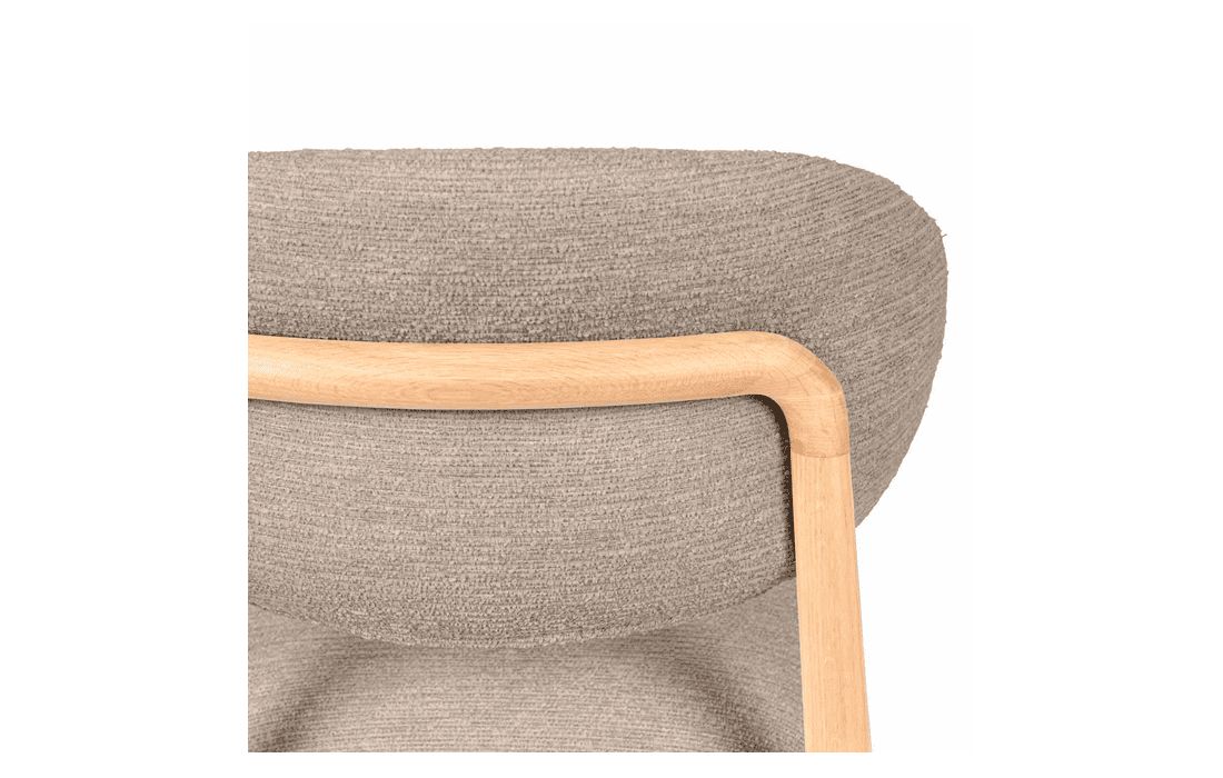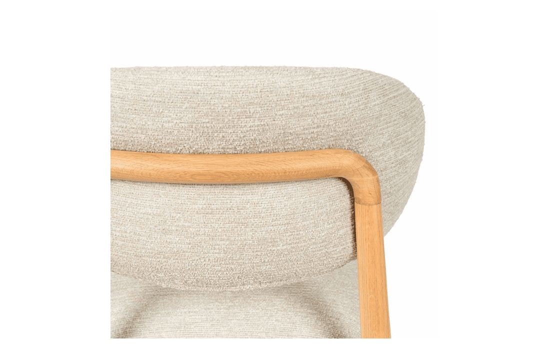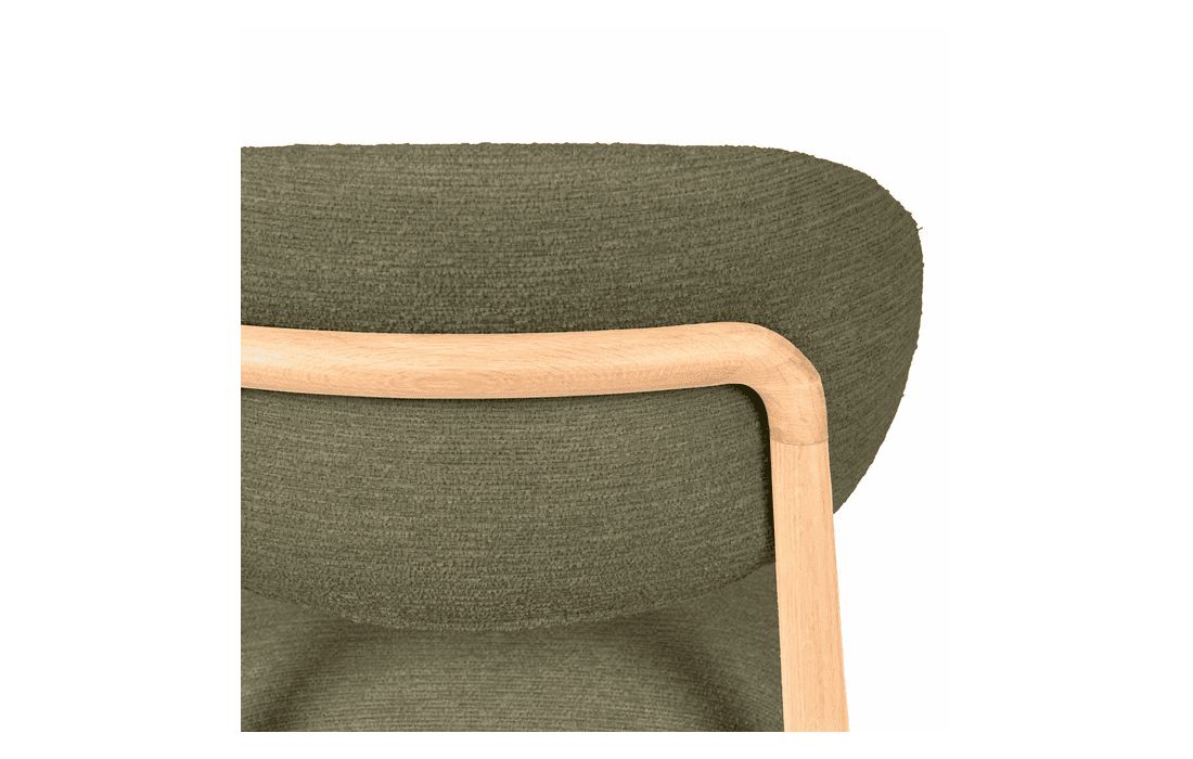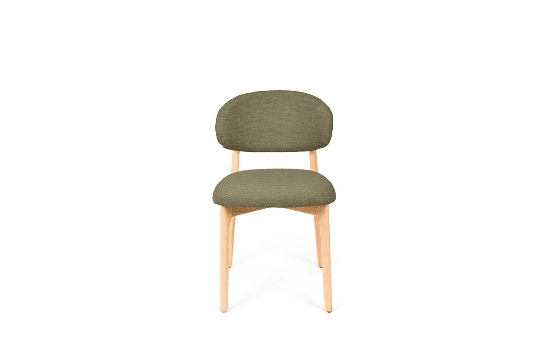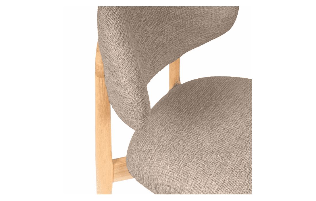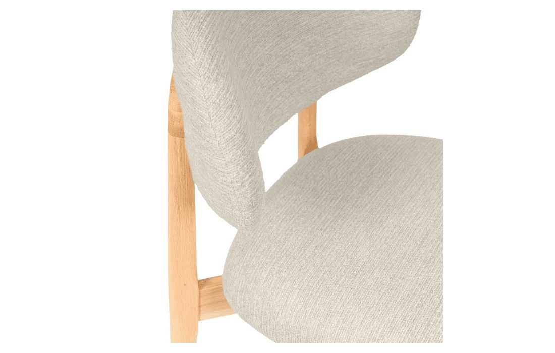 Esta cadeira destaca-se pela sua elegância natural, ideal para quem procura o equilíbrio entre estilo e funcionalidade. Apoiada em pés de madeira de faia, a sua estrutura transmite estabilidade