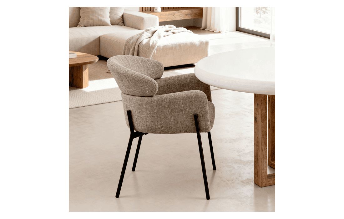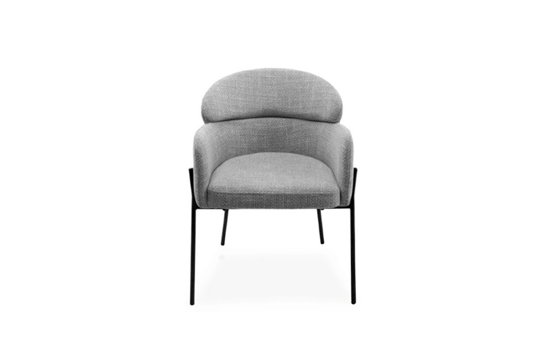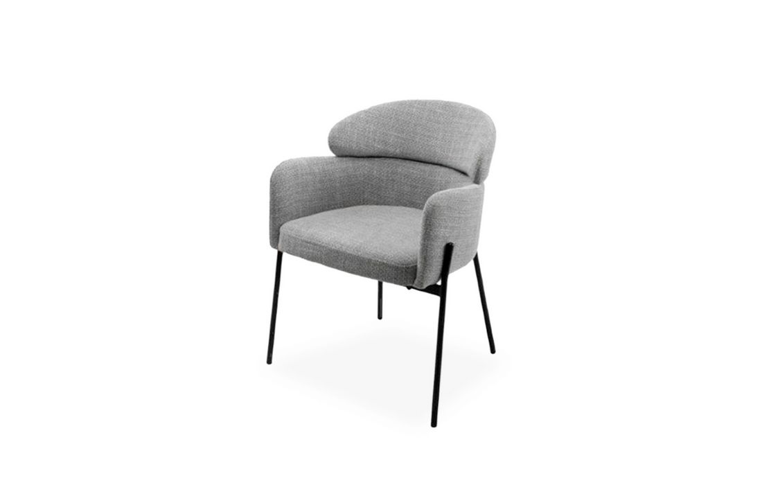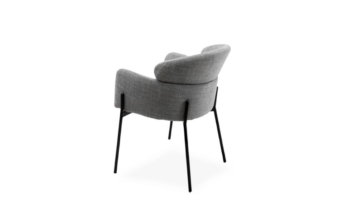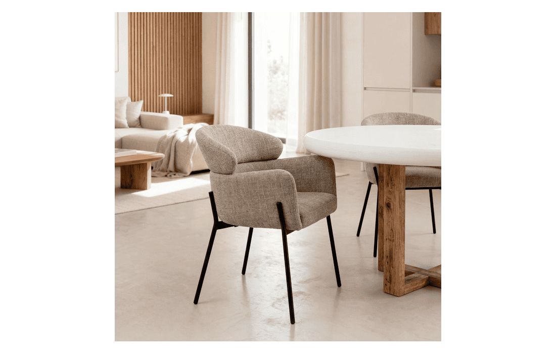 Esta cadeira possui um encosto duplo e apoios de braços acolchoados, proporcionando conforto e apoio, O design da cadeira alia elegância e durabilidade.