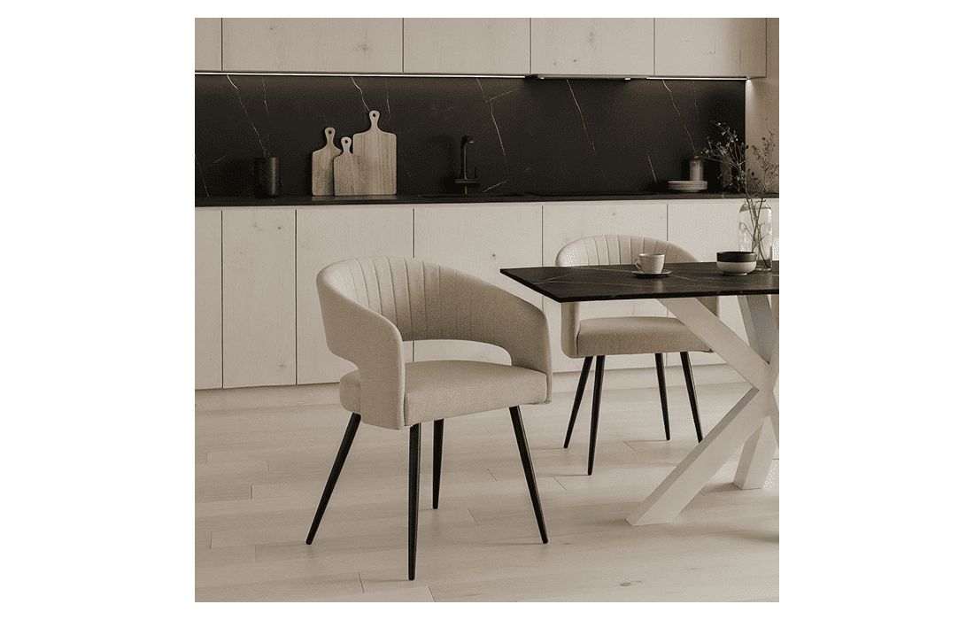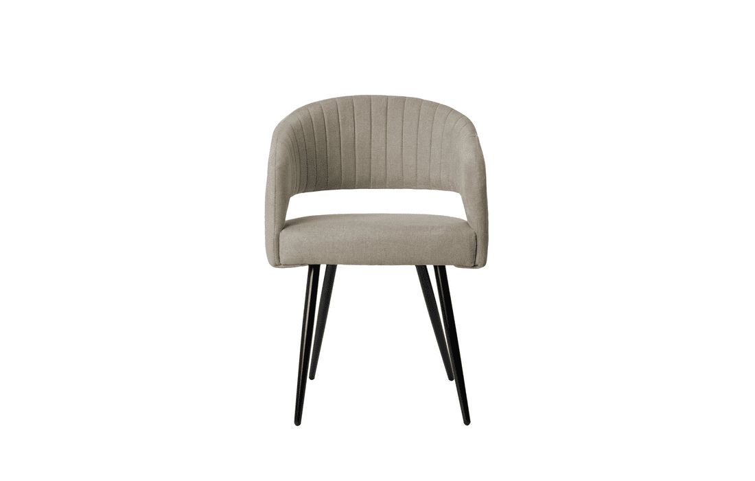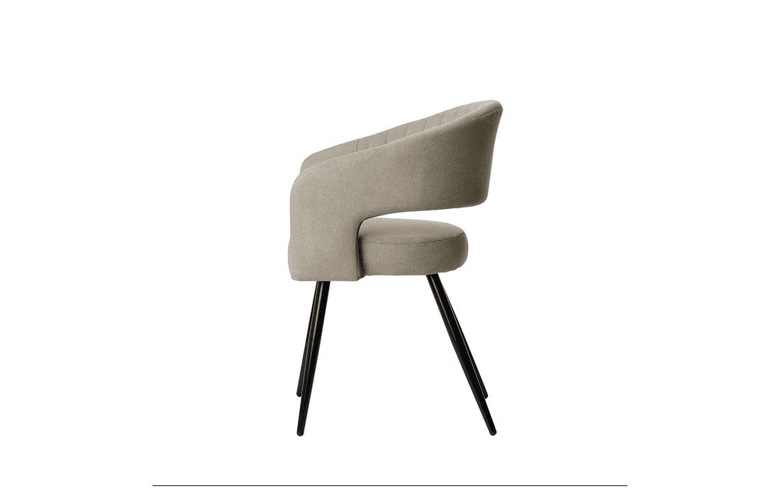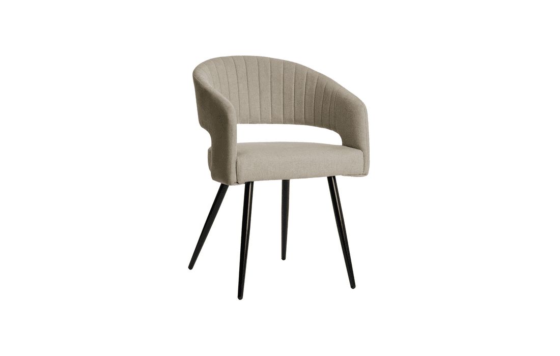 Dê um toque de elegância contemporânea à sua sala de estar com esta cadeira. O seu encosto curvo, adornado com costuras verticais, confere um aspeto sofisticado.