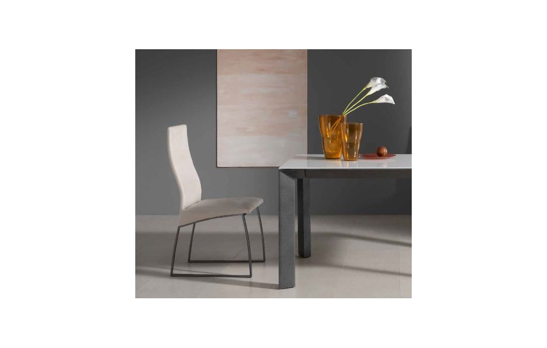 Cadeira em tecido, ecopele ou pele genuína com pés metal lacado ou metal cromado