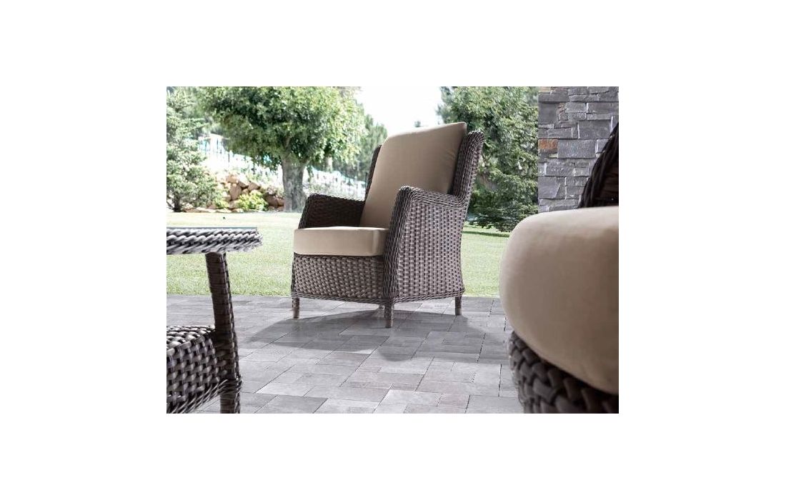 Especificações do Produto Rattan e tecido Altura do assento 47 cm Altura do braço 65 cm Não fazemos qualquer alteração ao produto Manutenção e Limpeza Limpar com um pano seco Para tirar manchas deve usar um pano húmido e de seguida passar um pano seco Legenda de medidas (C) Comprimento (P) Profundidade(A) Altura