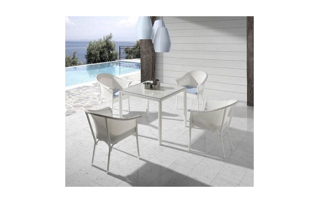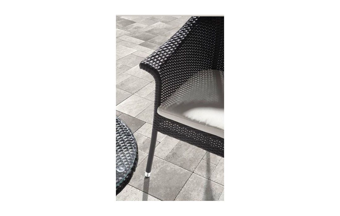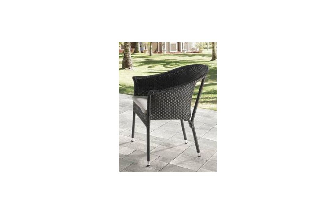 Cadeirão em rattan para uso exterior.