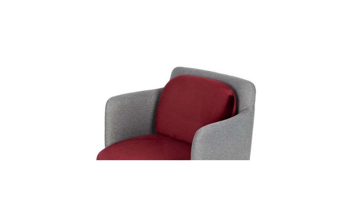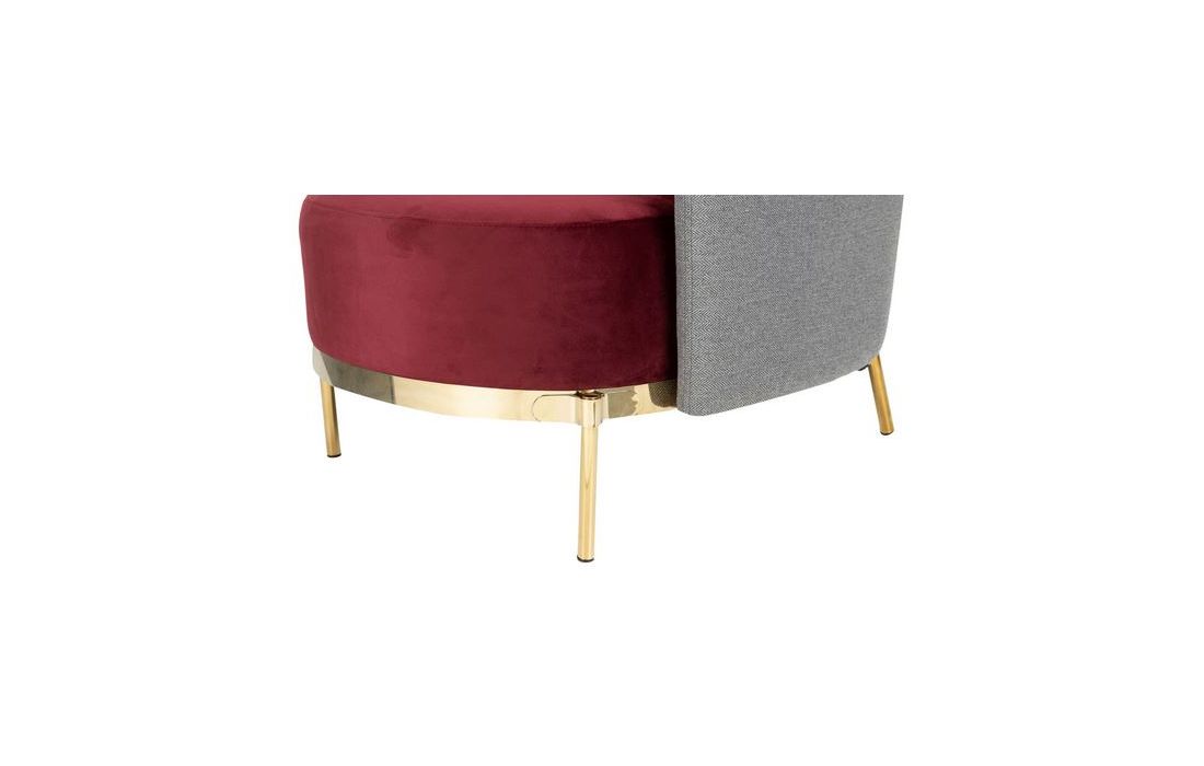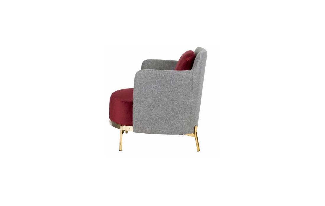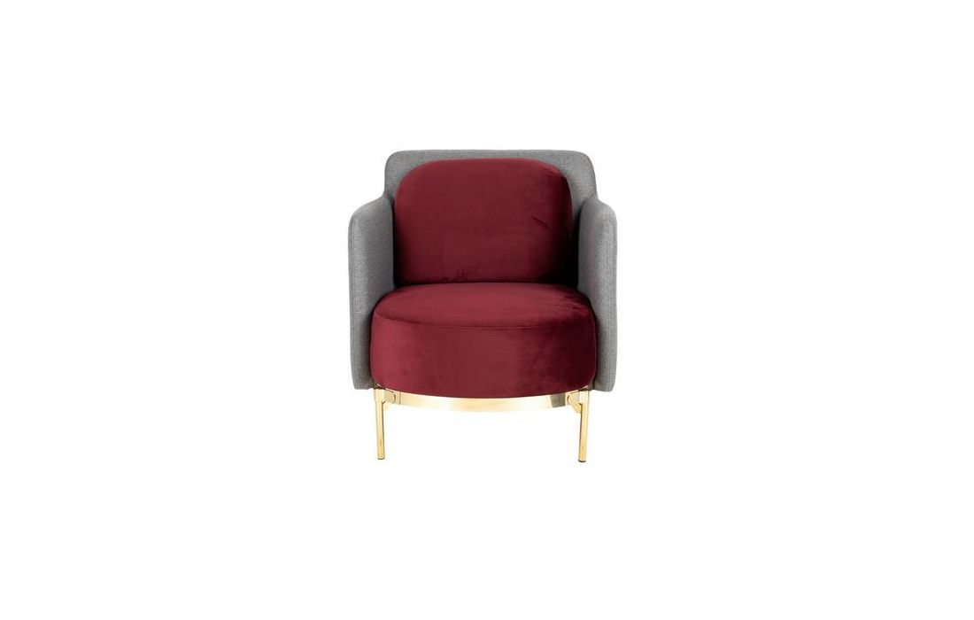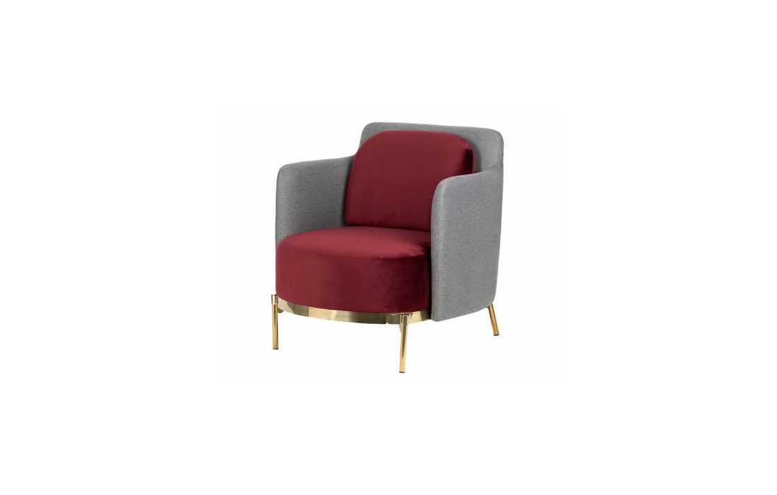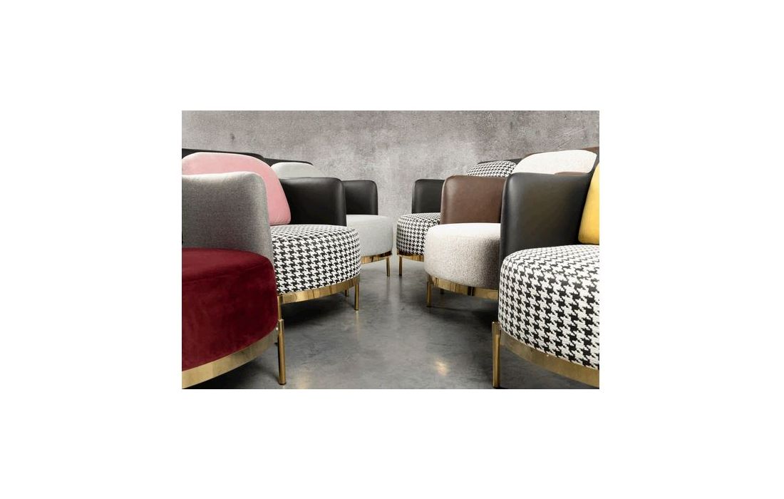 Poltrona em pele sintetica preta, com o assento e almofada em veludo cor de granito com os pés em inox pintados a dourado