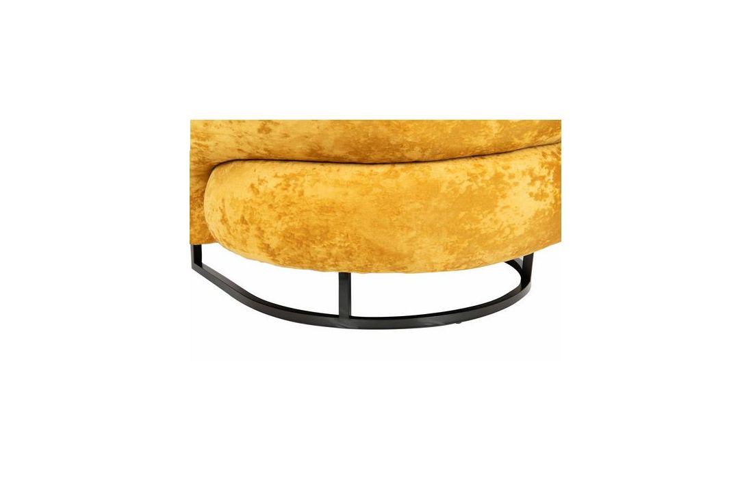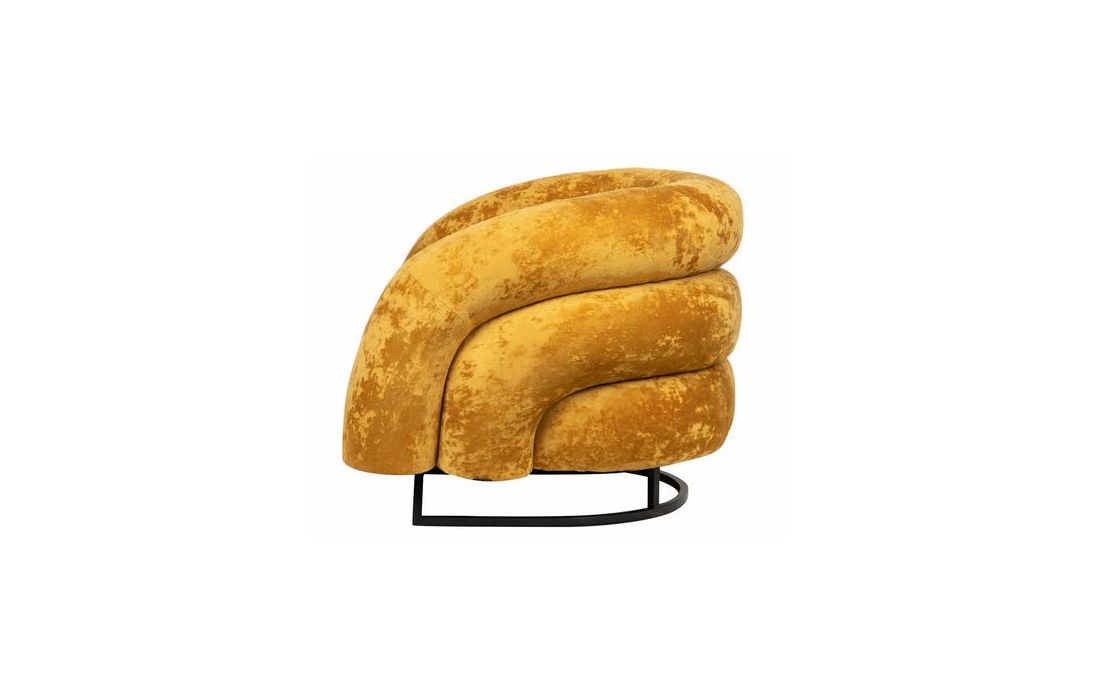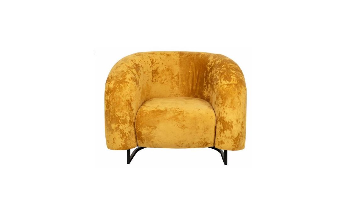 Poltrona em tecido aveludado cor de mostarda com pés em inox pintados a preto