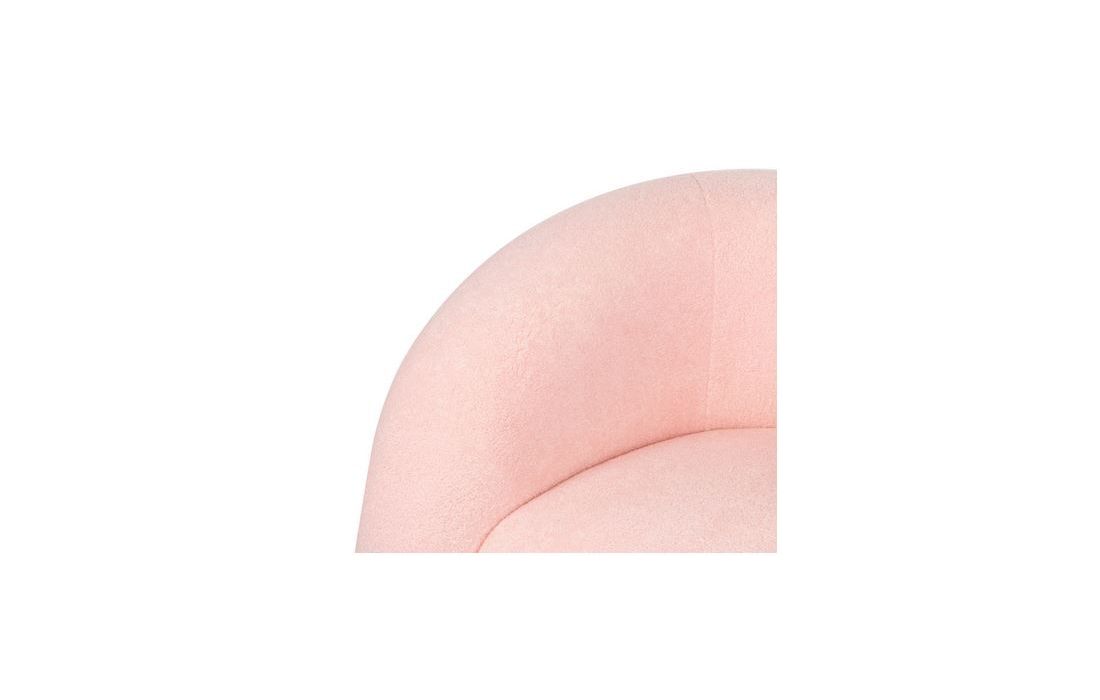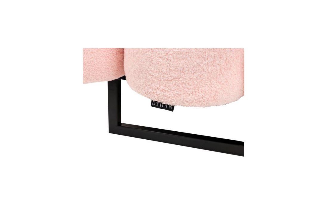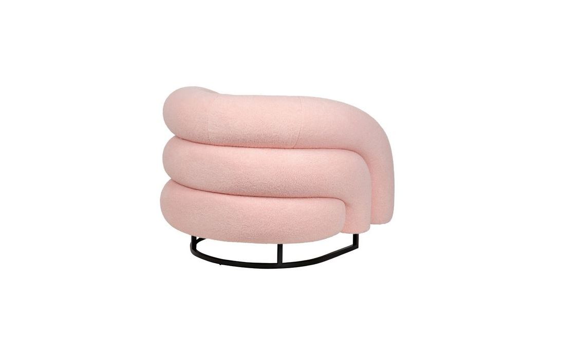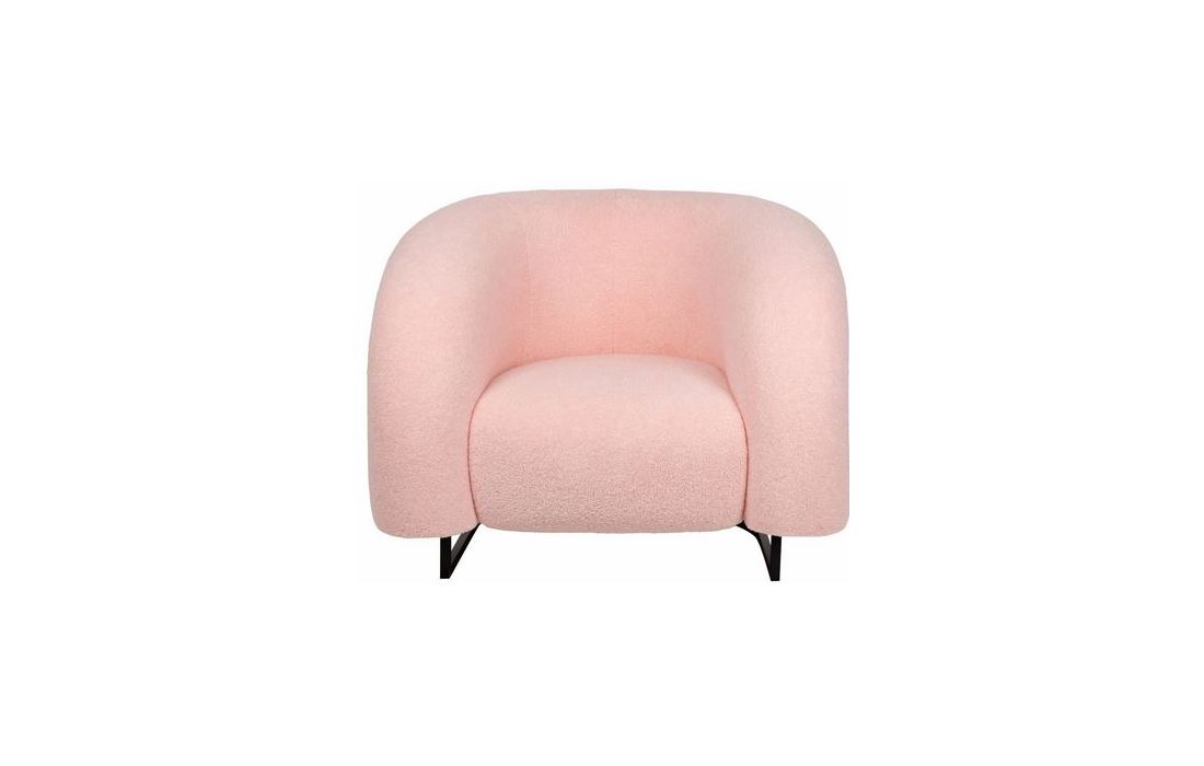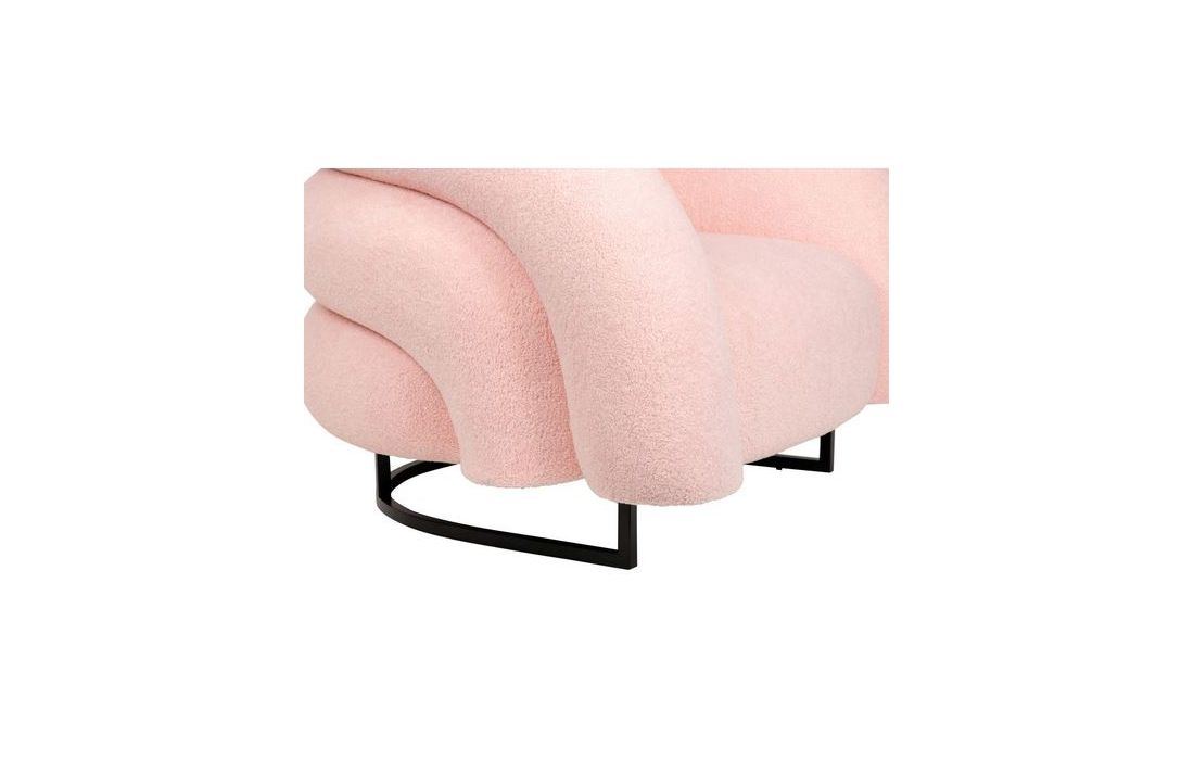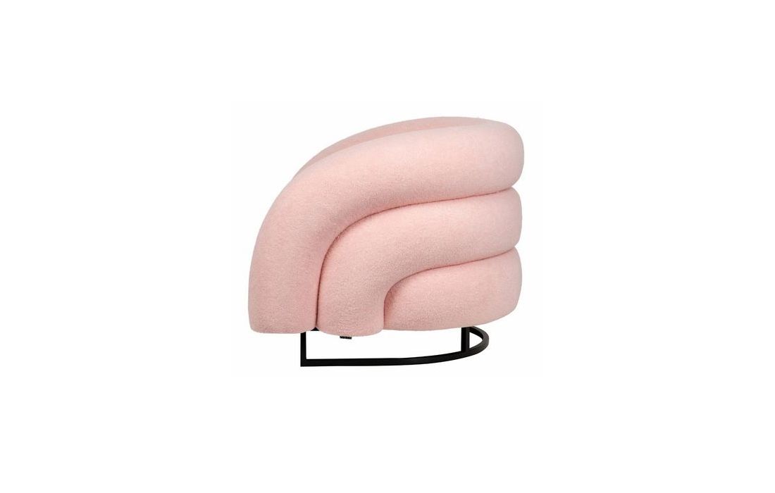 Poltrona em tecido de boucle de cor rosa com os pés em inox pintados em pretoDimensões em cm