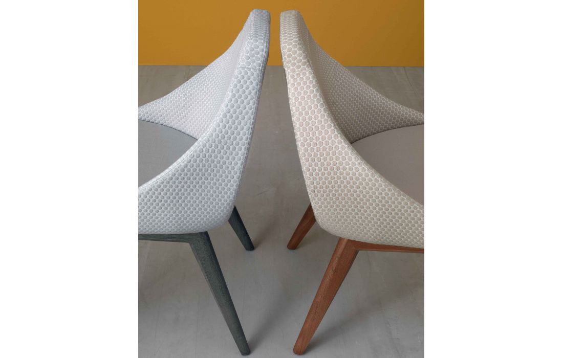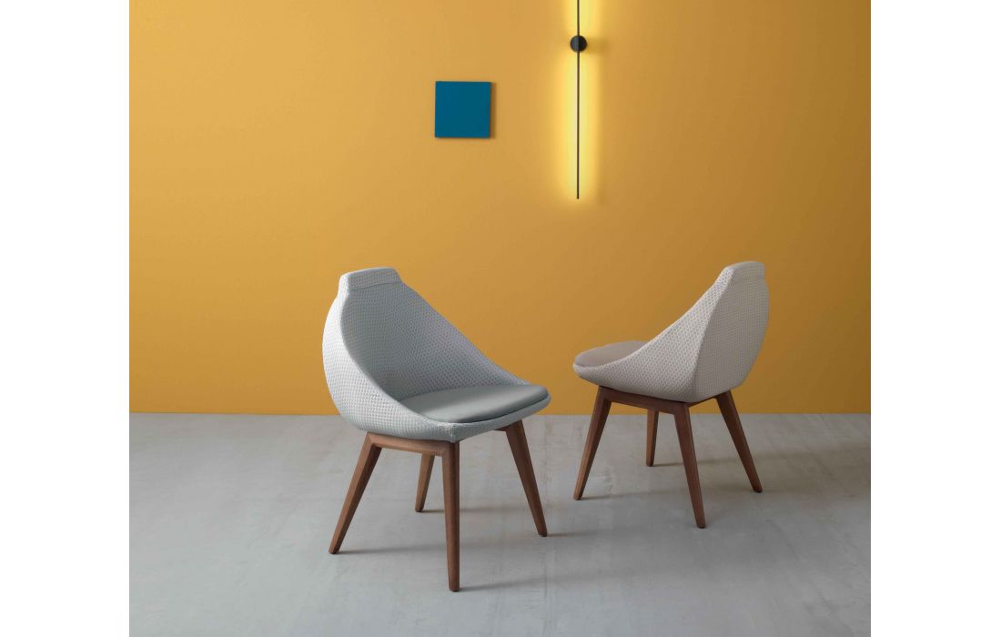 Cadeirão com assento revestido em pele sintética ou tecido com pés em nogueira ou carvalho cinza