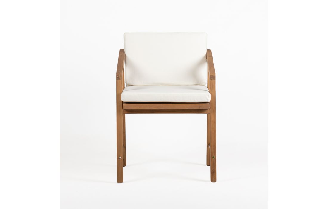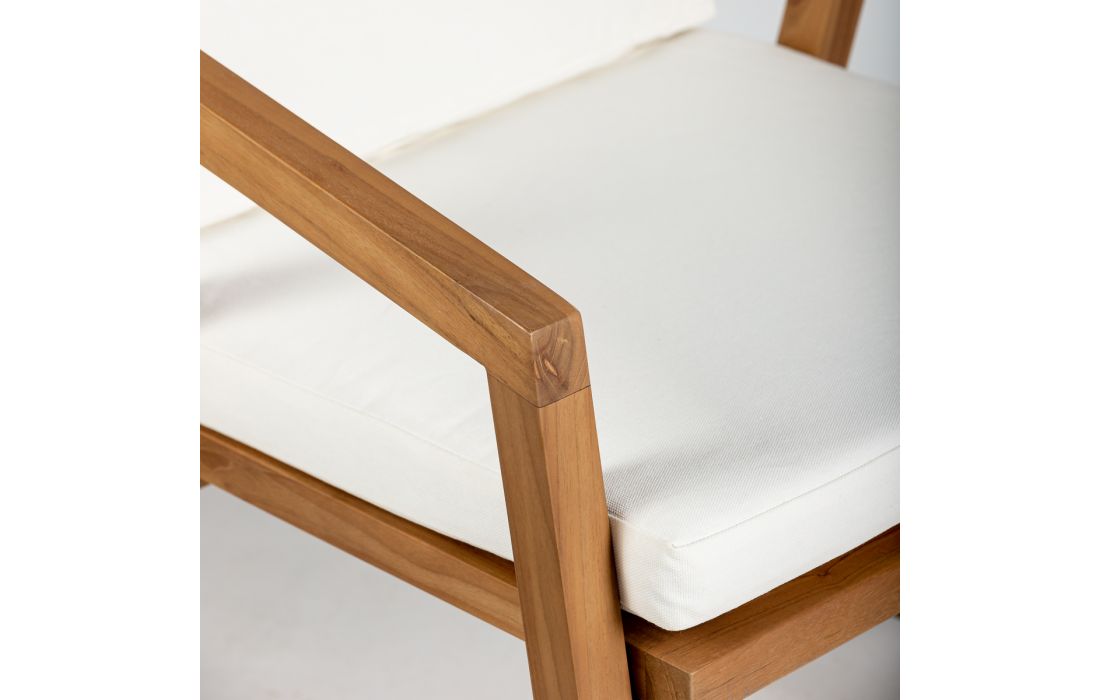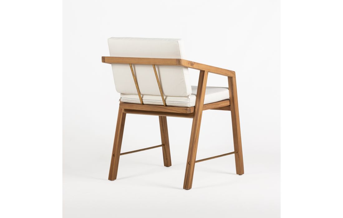 Cadeira em madeira de teca com encosto e asento em tecido branco.Destinatário :