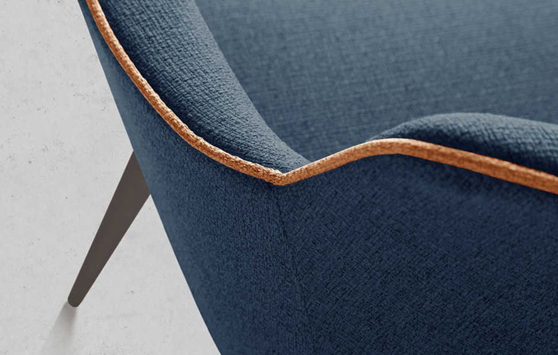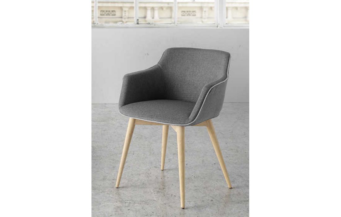 Cadeirão em tecido, ecopele ou pele genuína com pés em faia com possibilidade de várias cores.