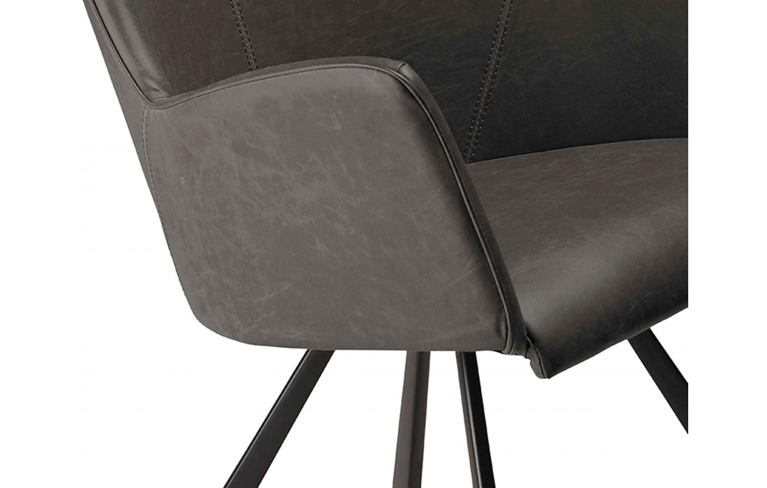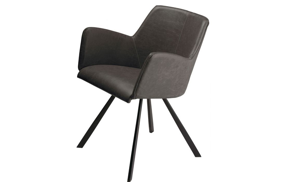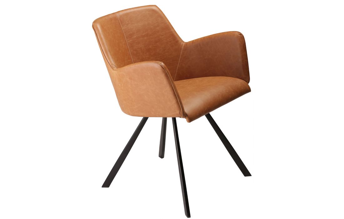 Cadeirão com estofo em pele sintética castanho claro ou preta, com pés em preto