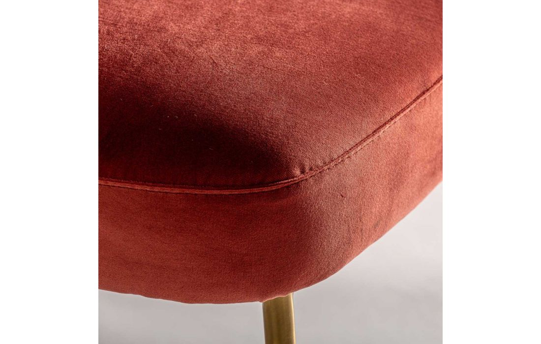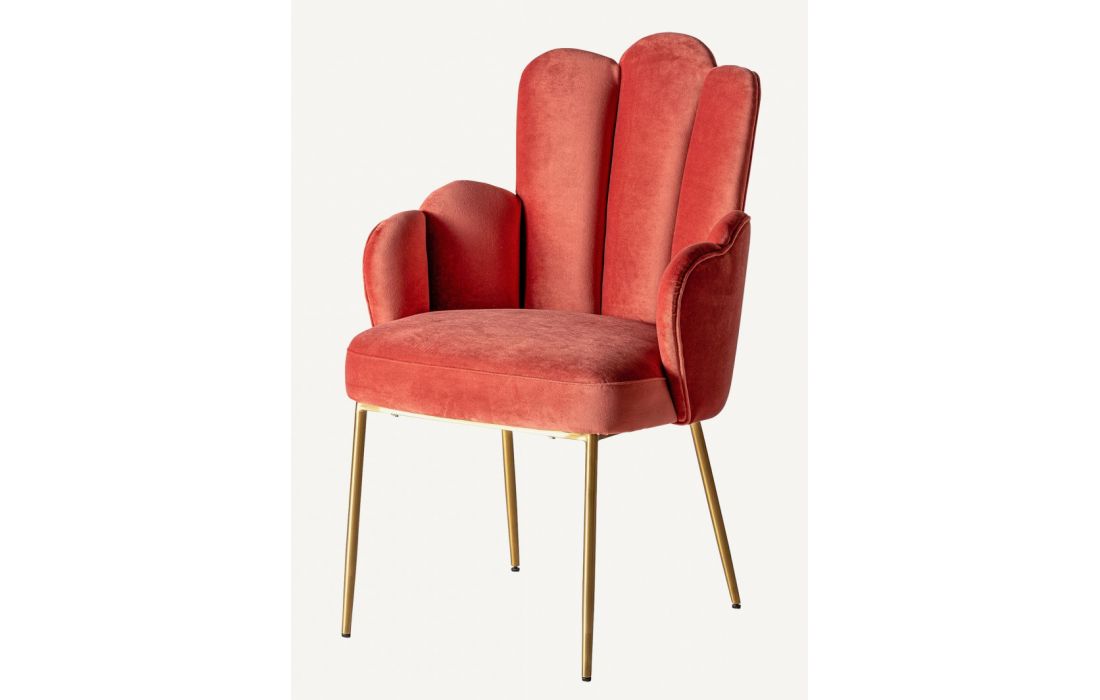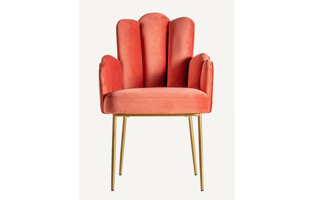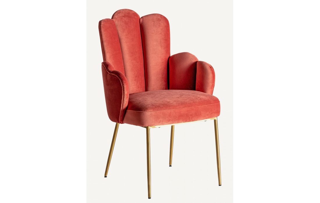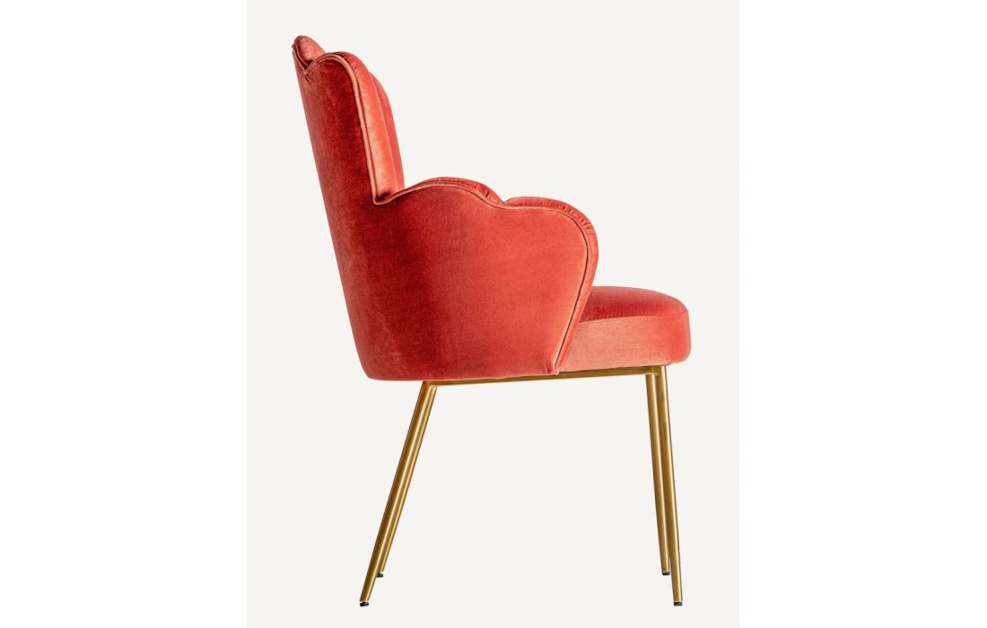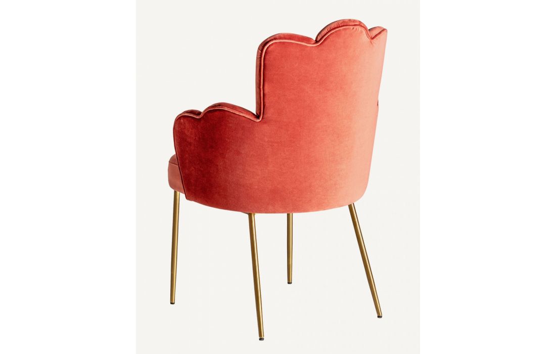 Cadeira de braços com pés em aço estofada em tecido de veludo cor rosa