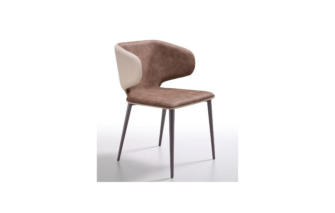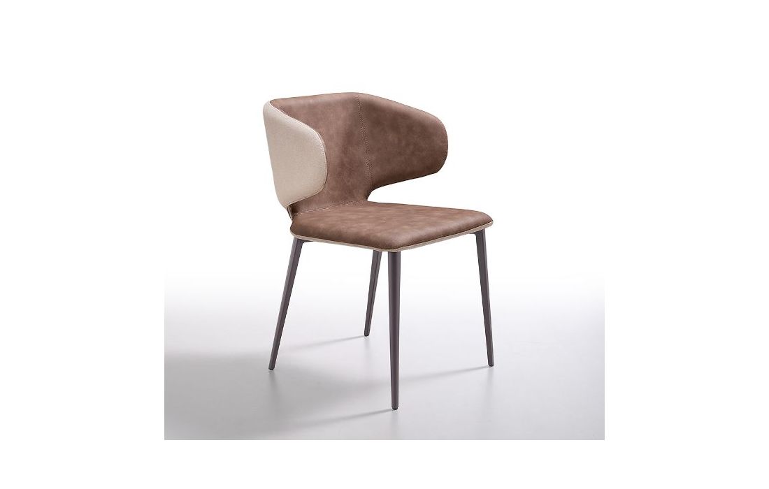 Cadeira de jantar estofado em tecido e pele sintética com estrutura de pernas em aço na cor bronze escurecido metálicoDimensões em cmL 60 P 63 A 83Prazo de Entrega15 a 20 dias