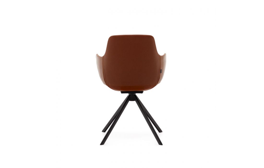 Cadeira com braços, estrutura de metal cor preta, costa em folha de nogueira com acabamento natural e assento estofado em tecidoPrazo de Entrega15 a 20 dias Dimensões em cmL 52,5 P 54,5 A 76