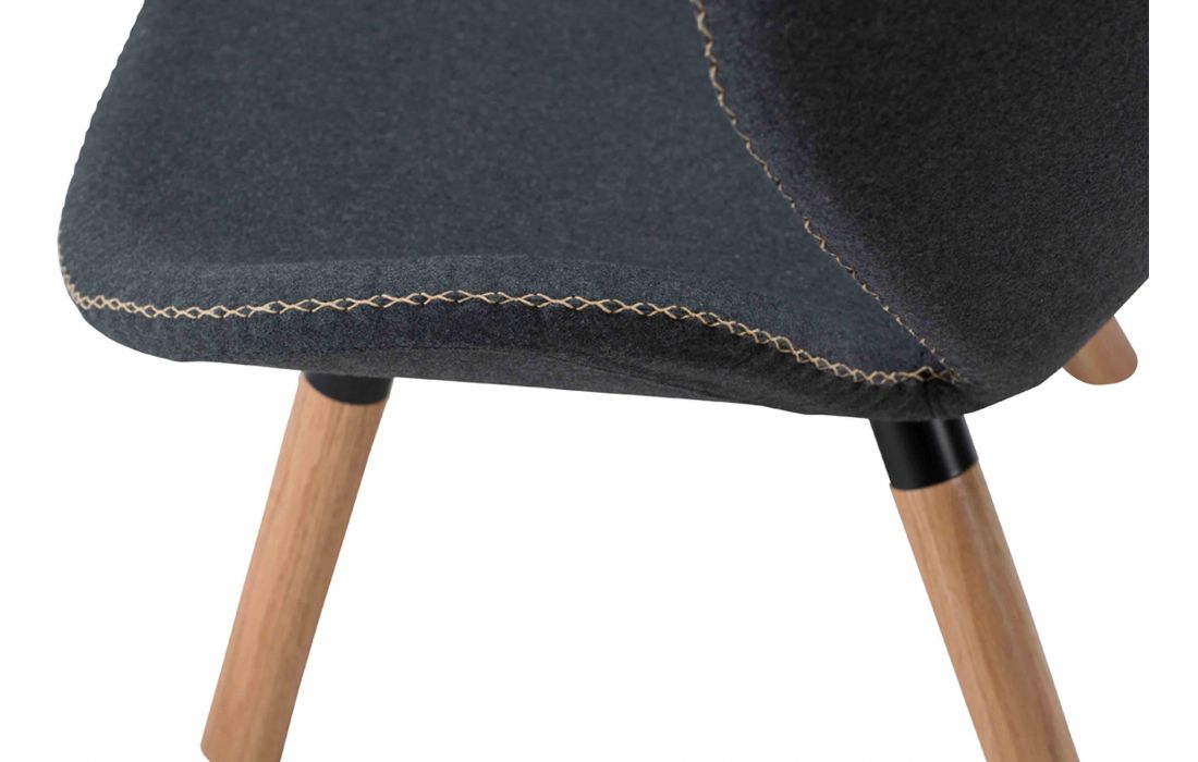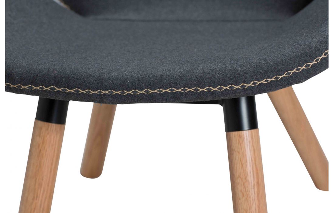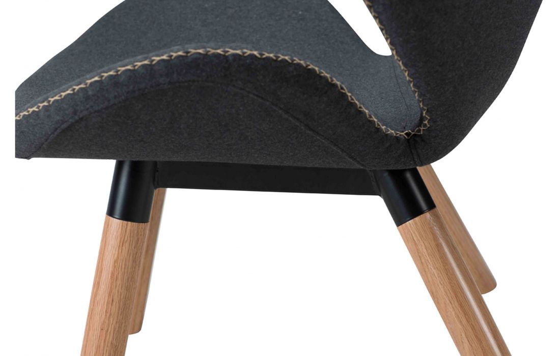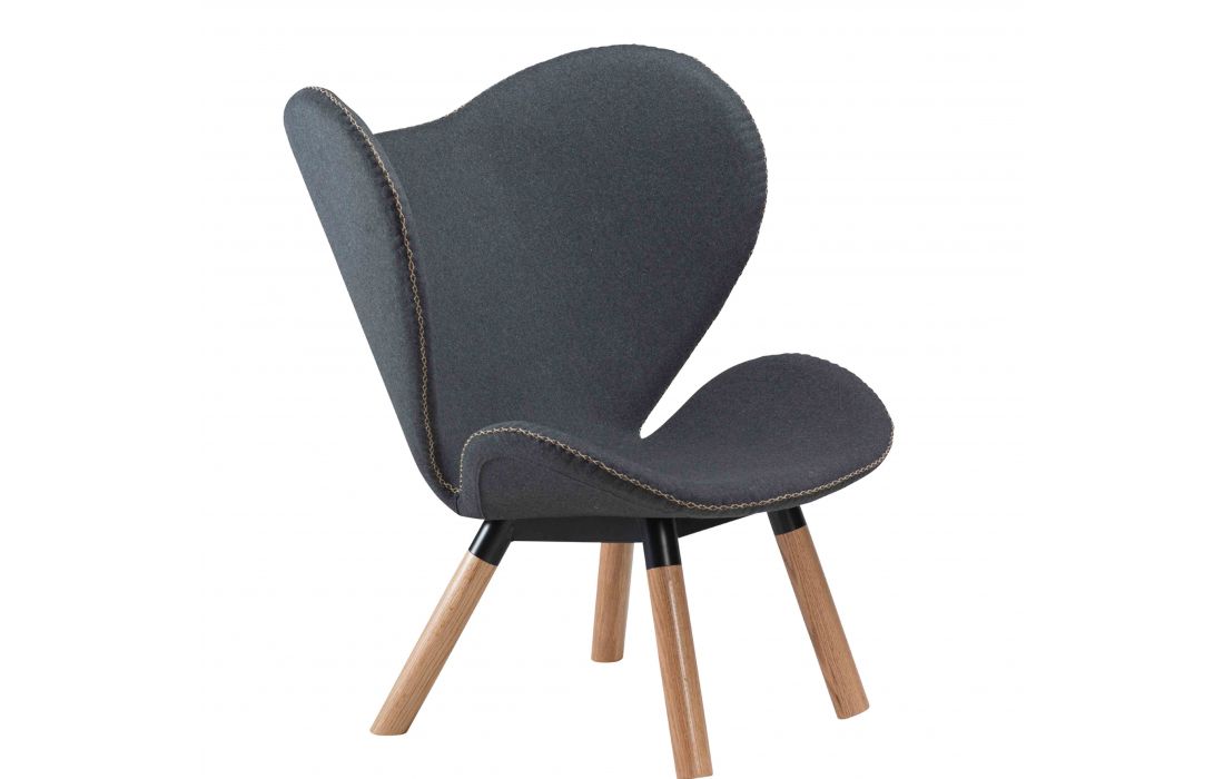 Poltrona em tecido cinza com pés em madeira maciça de carvalho