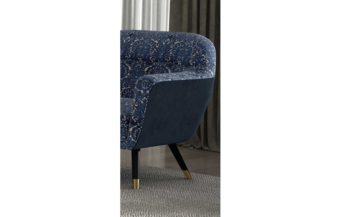 Cadeirão nos vários revestimentos possíveis, pés em madeira com pormenor de metal dourado.Destinatário :