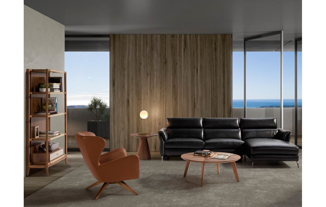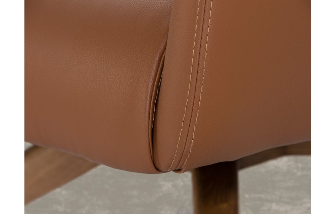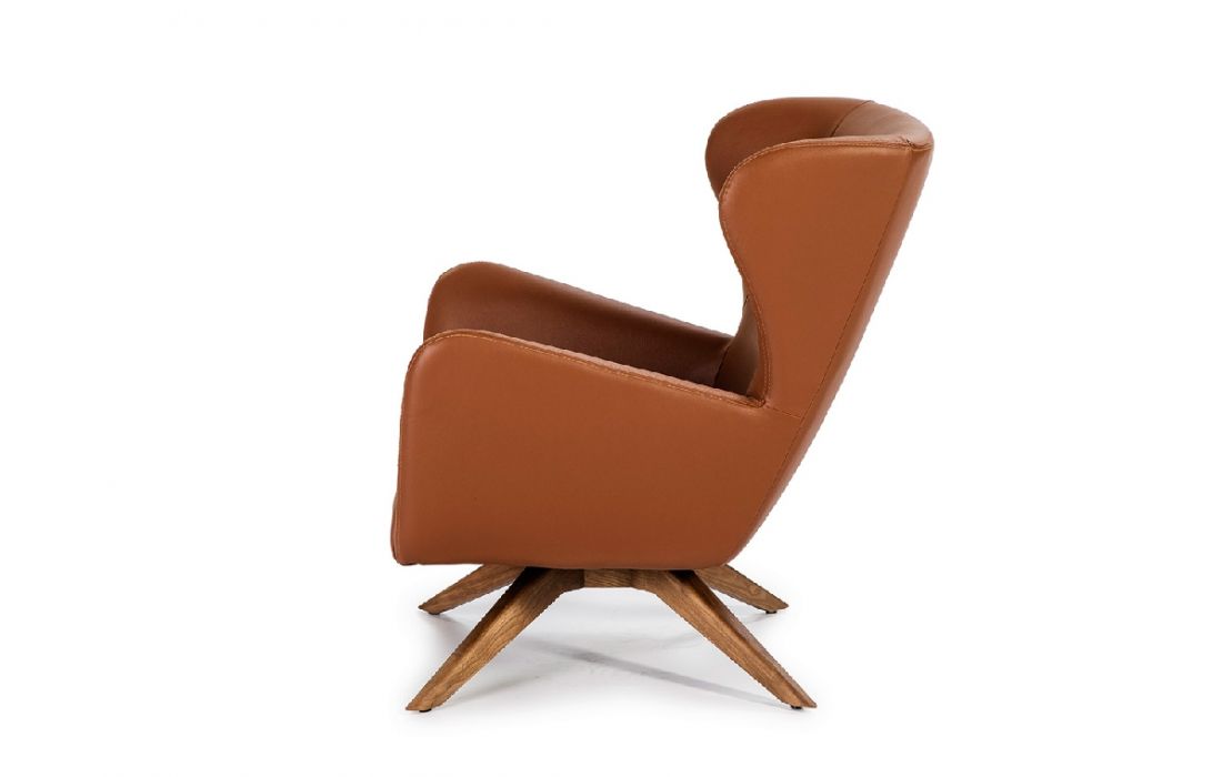 Poltrona giratória estofada nos vários revestimentos possiveis com base sólida de nogueira