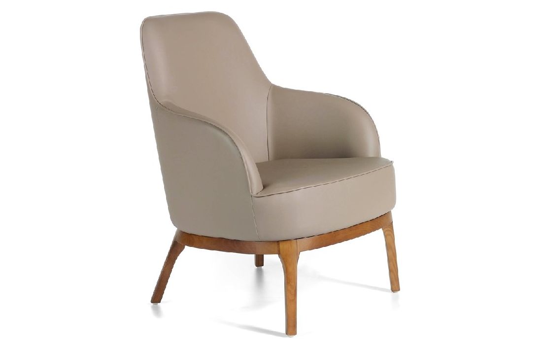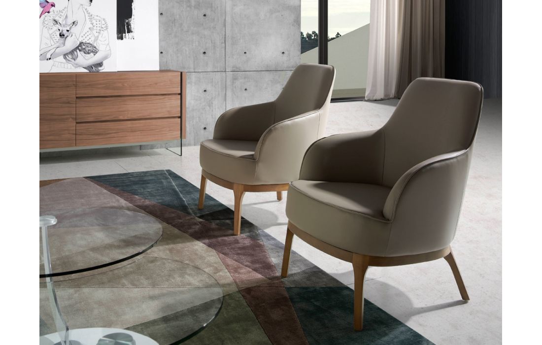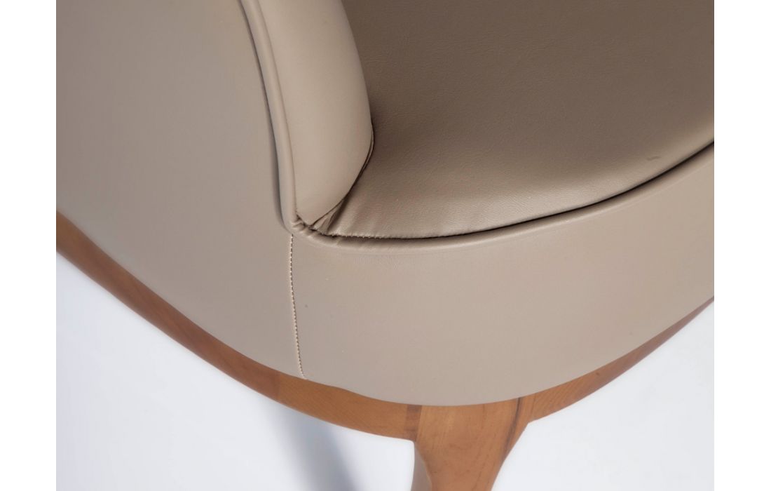 Poltrona estofada nos vários revestimentos possiveis com pés de madeira folheada a nogueira