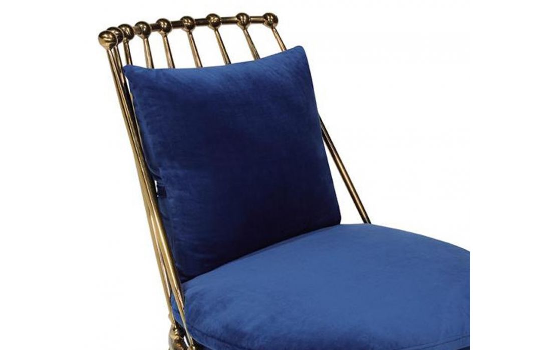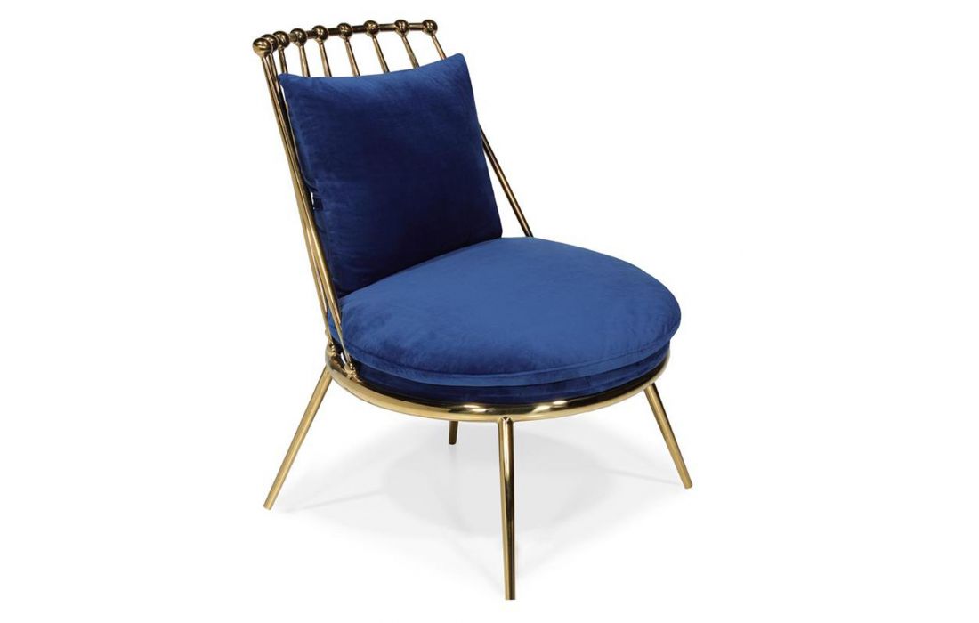 Cadeirão com estrutura em aço inox dourado e o estofo em veludo.