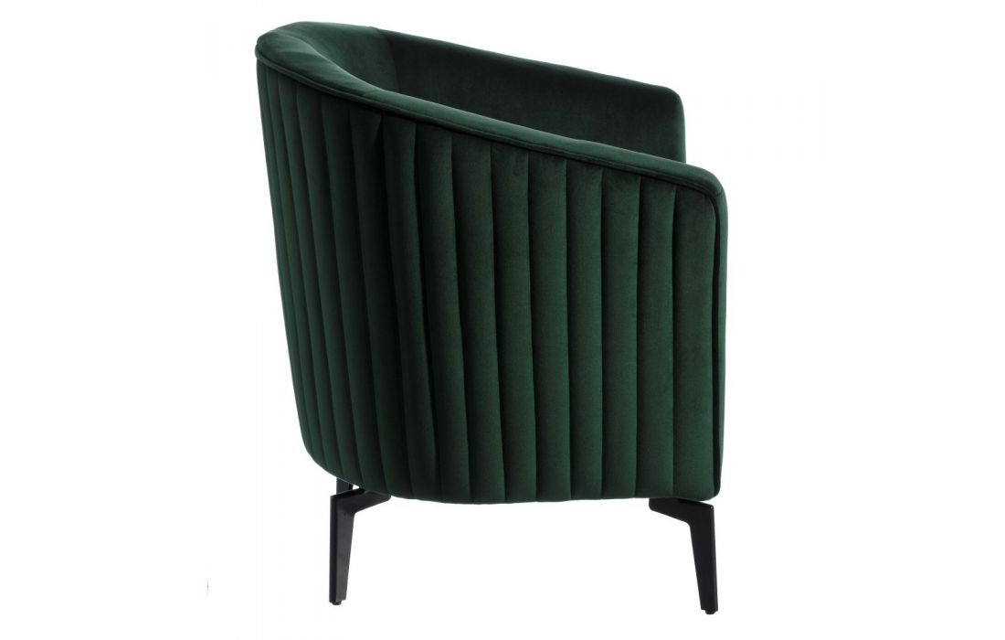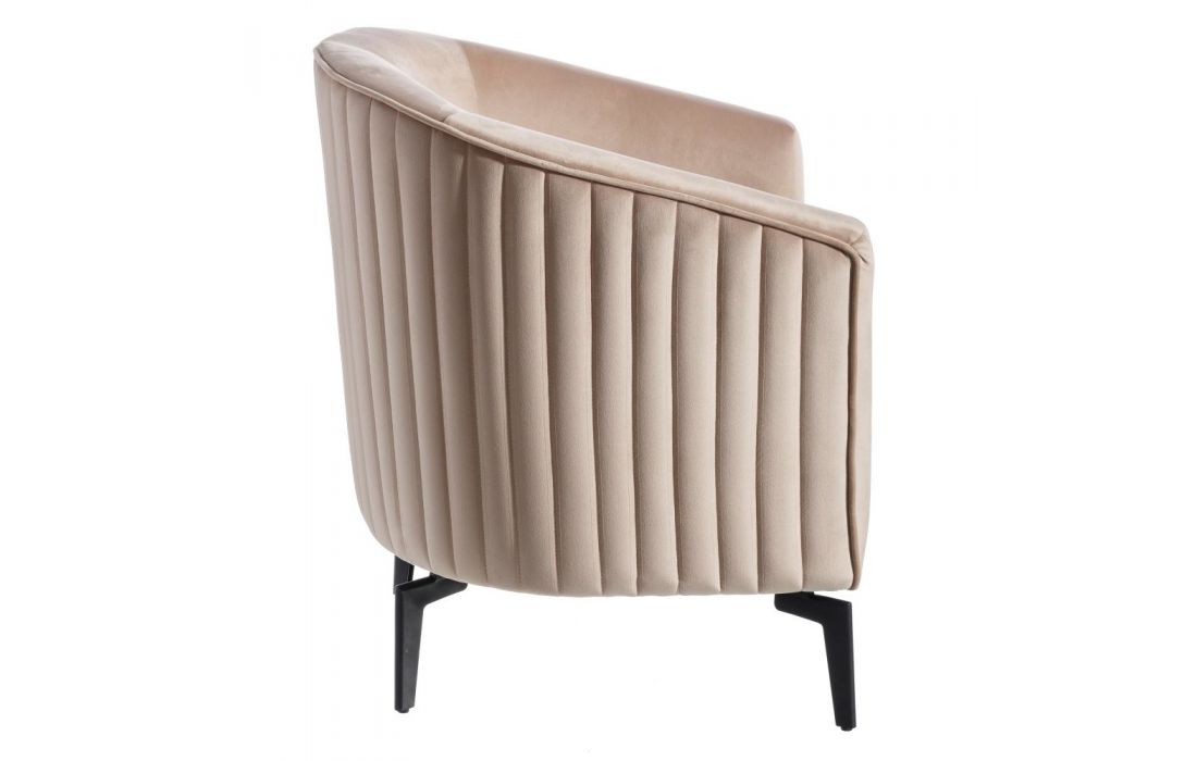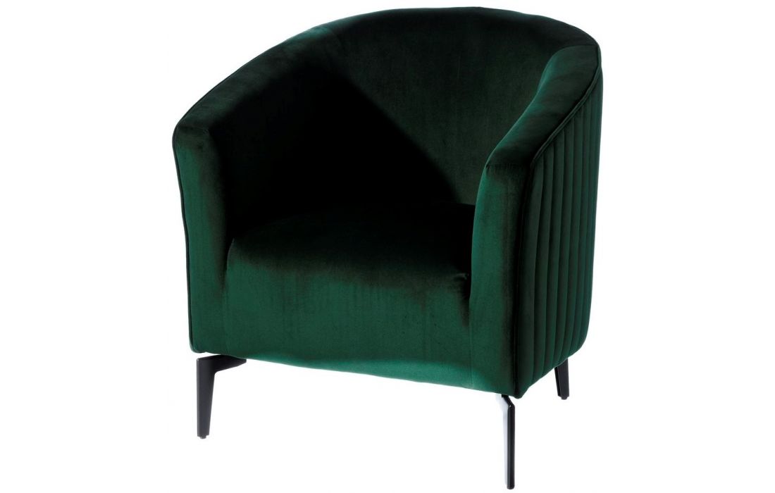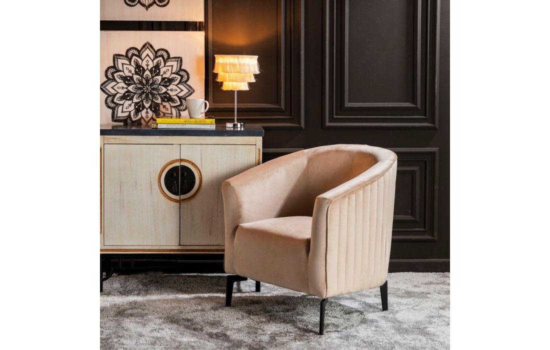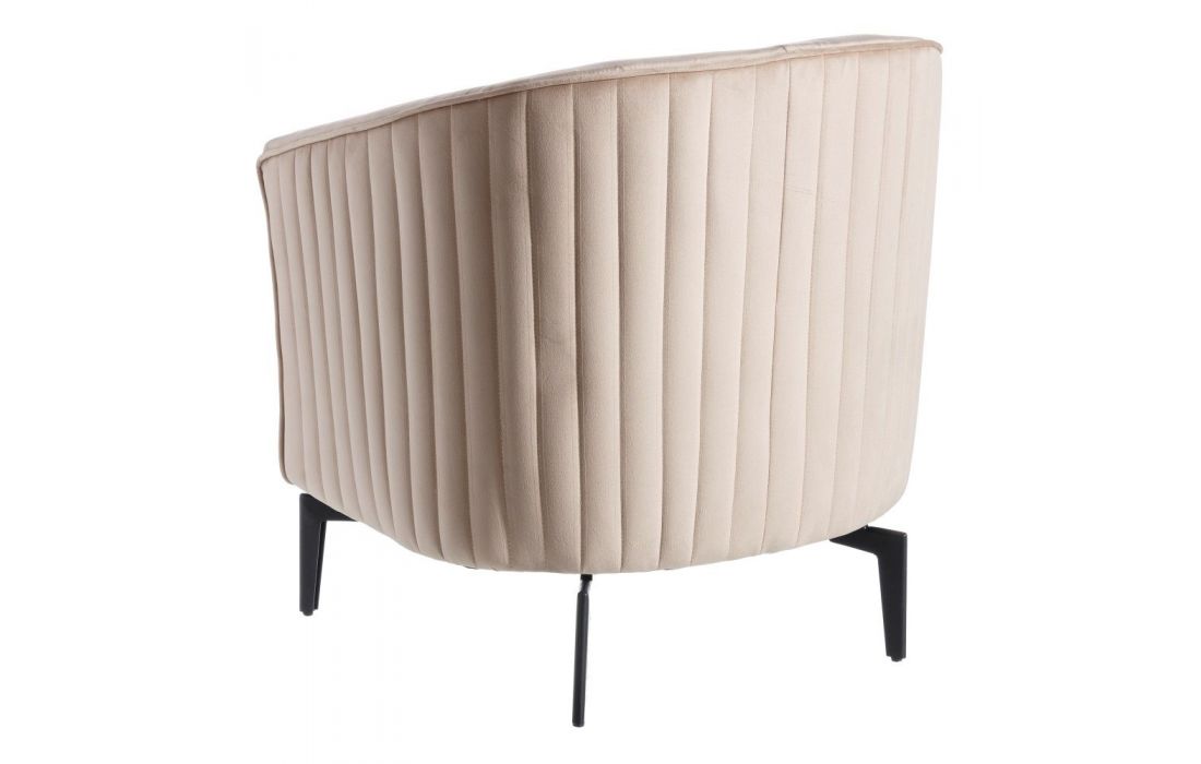 Poltrona estofada em tecido de cor beige, rosa ou verde escuro, com pernas em metal de 19cm altura