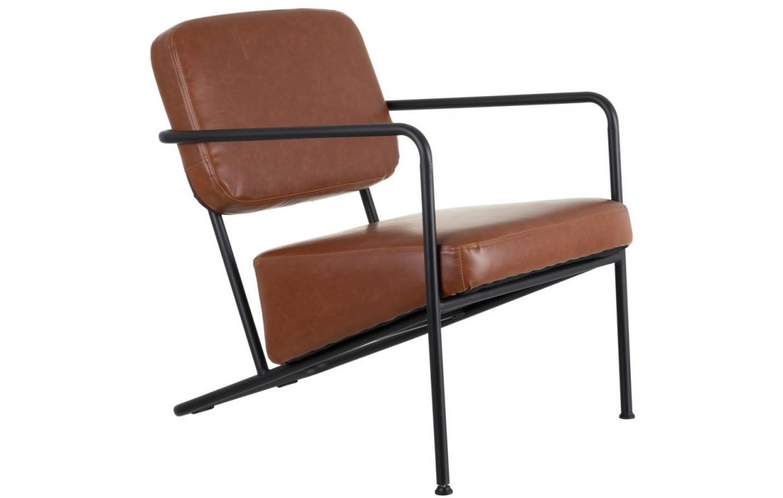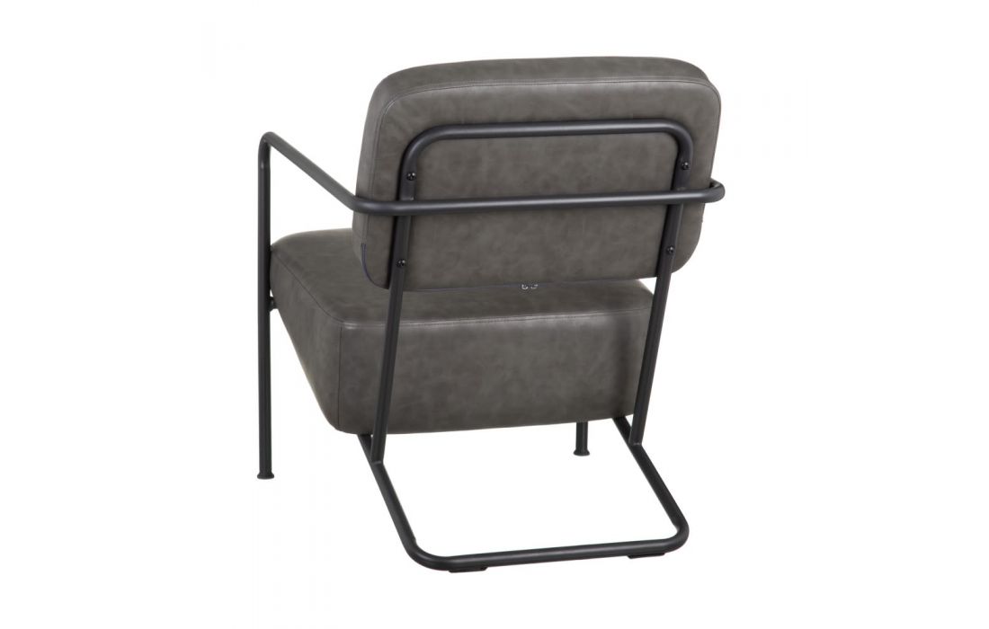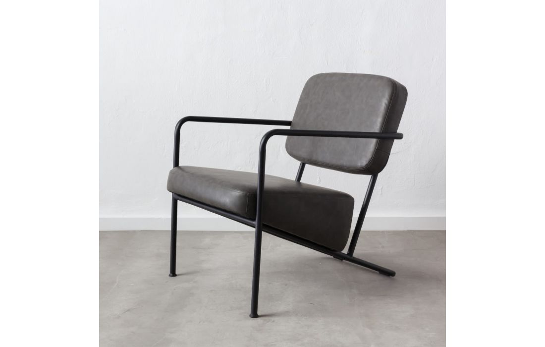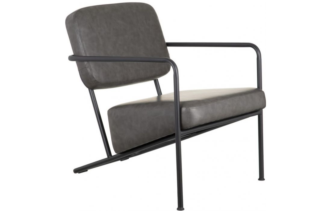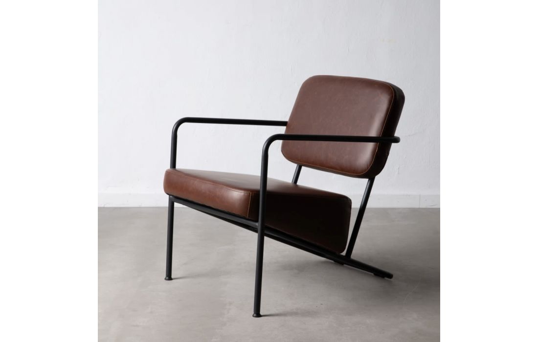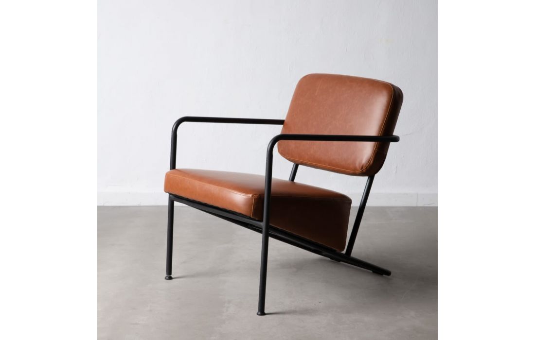 Poltrona estofada em tecido de cor castanho, camelo ou cinza, com pernas de 31cm altura