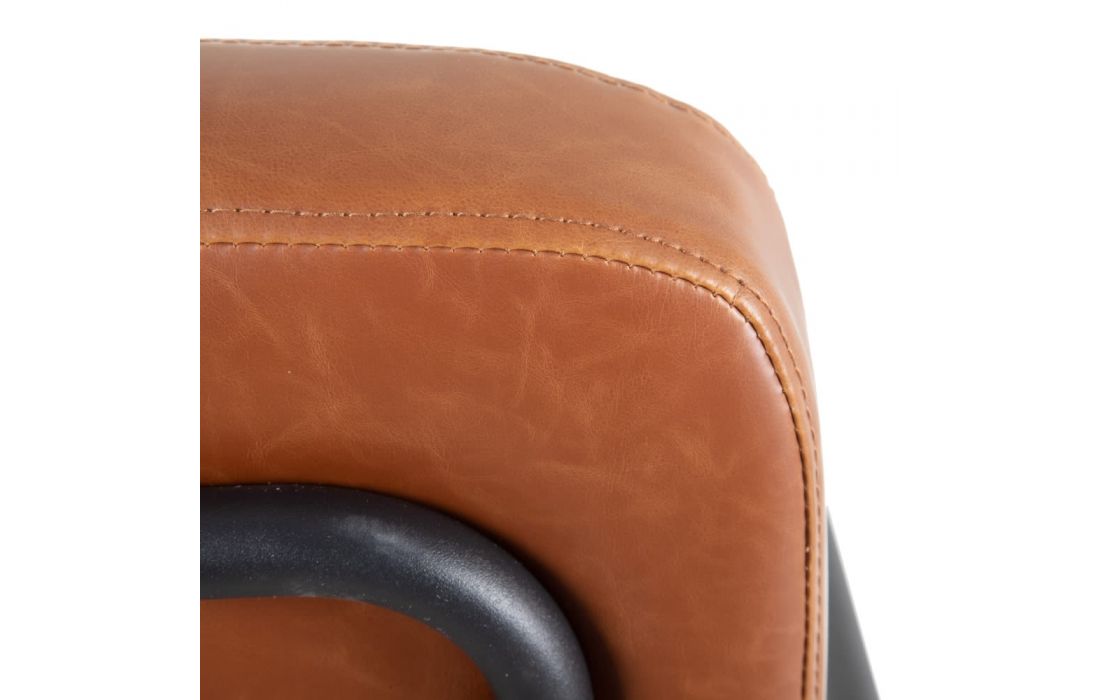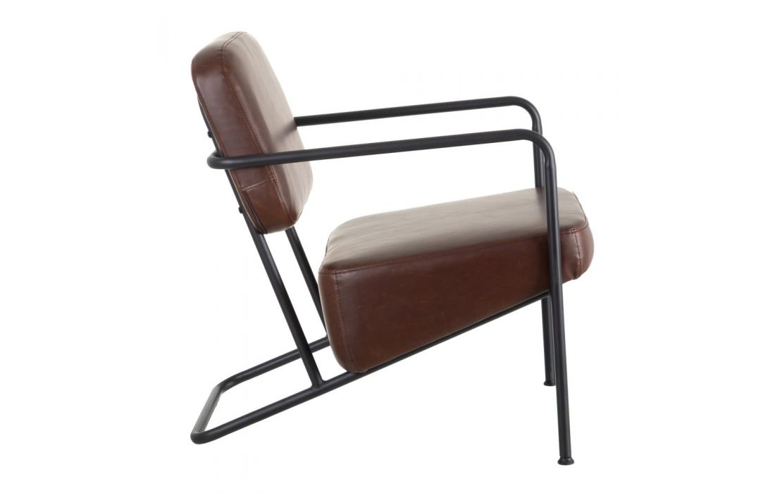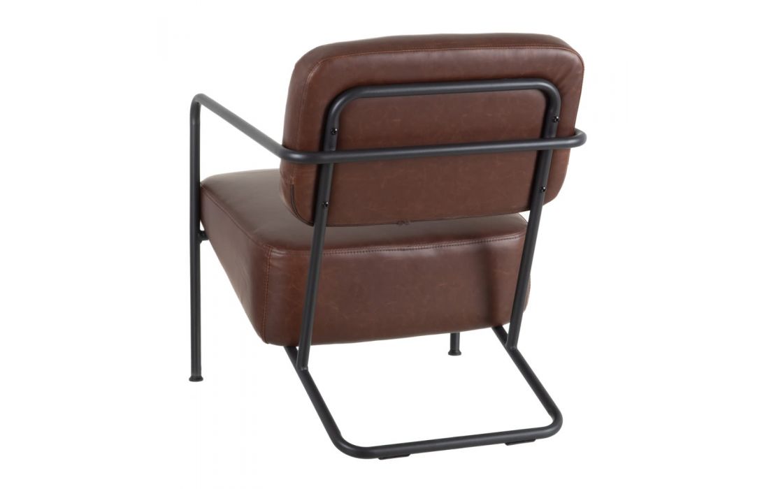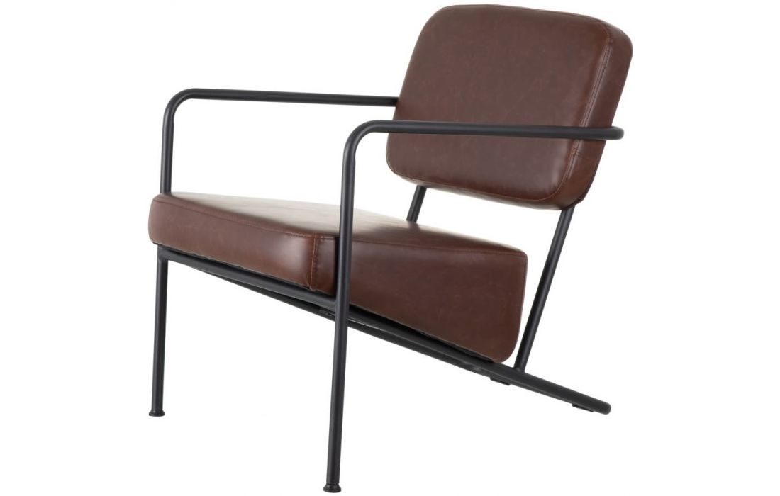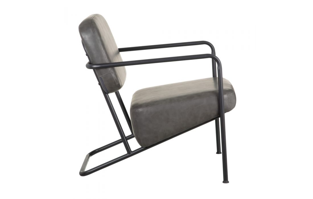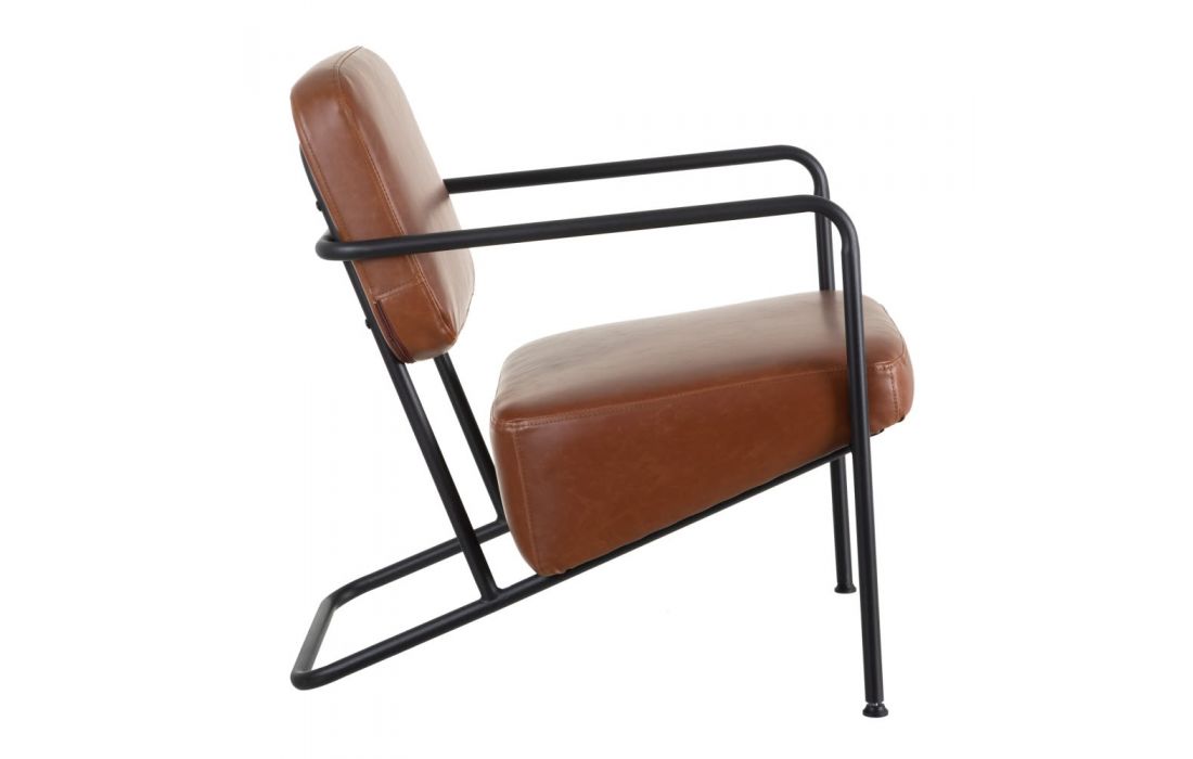 Poltrona estofada em tecido de cor castanho, camelo ou cinza, com pernas de 31cm altura