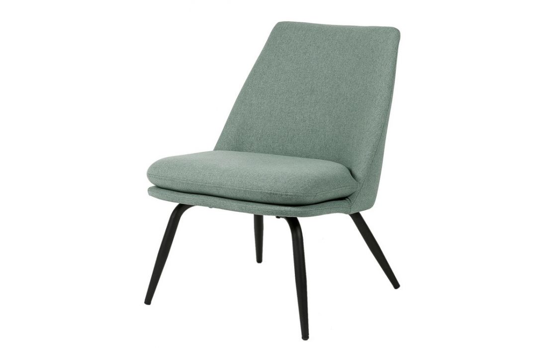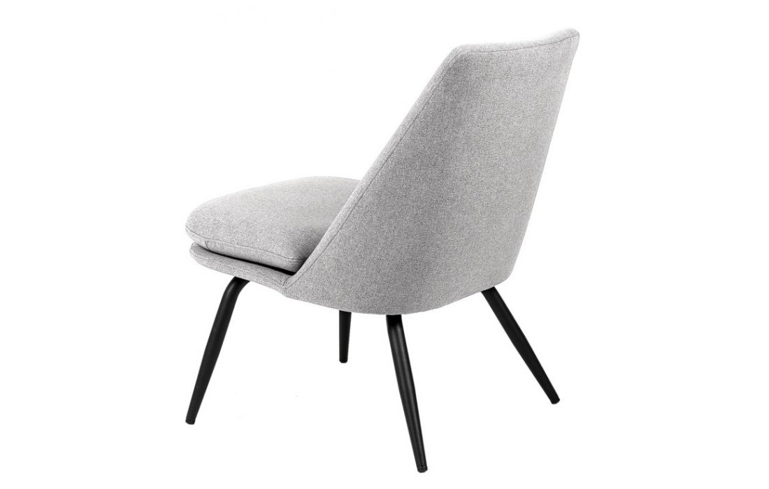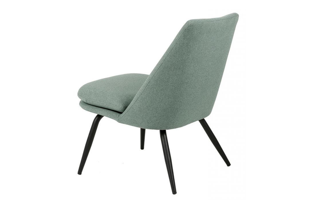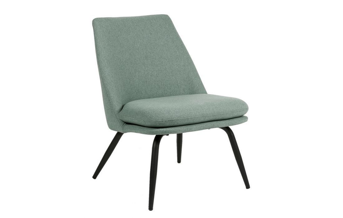 Cadeirão com pés de metal cor preta e estofo em tecido nas cores cinza claro, cinza escuro, menta e rosa