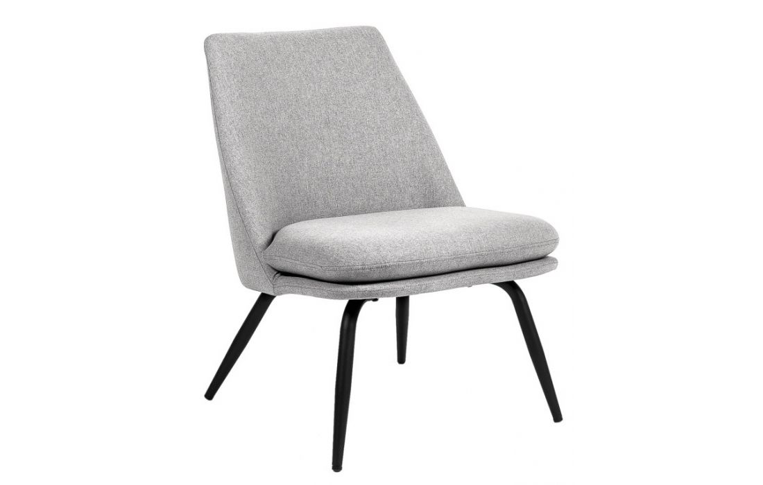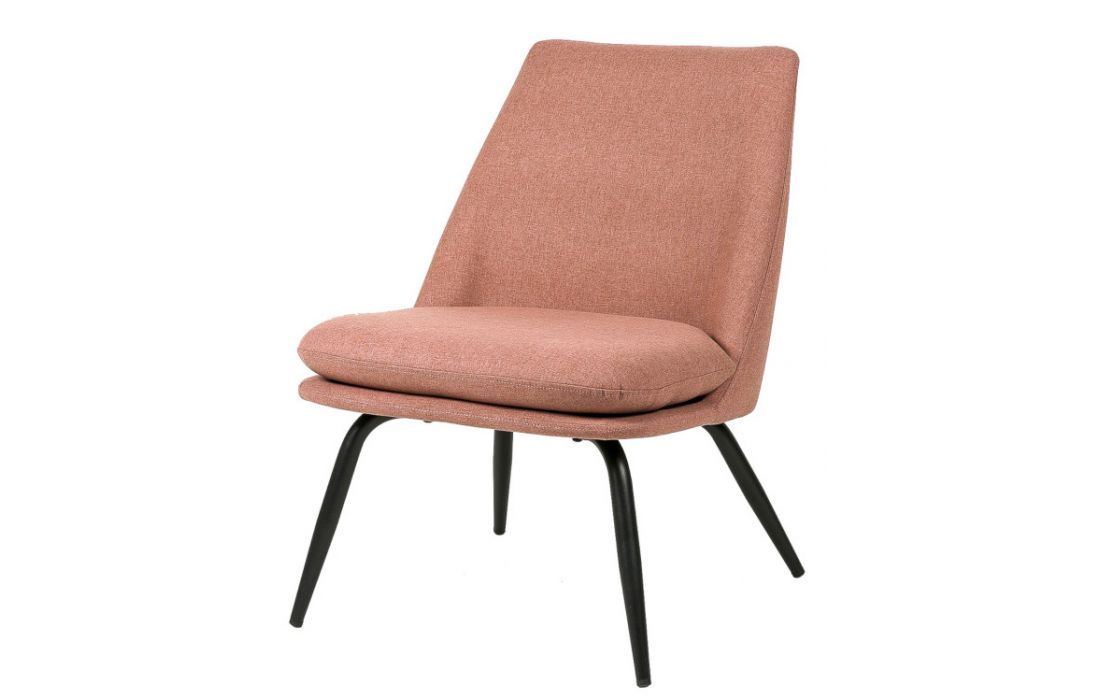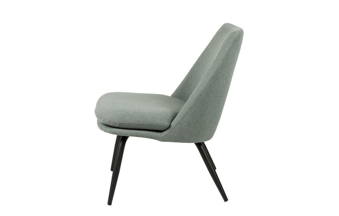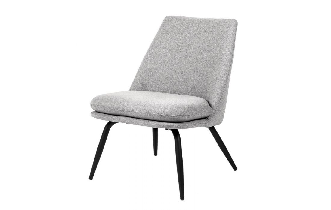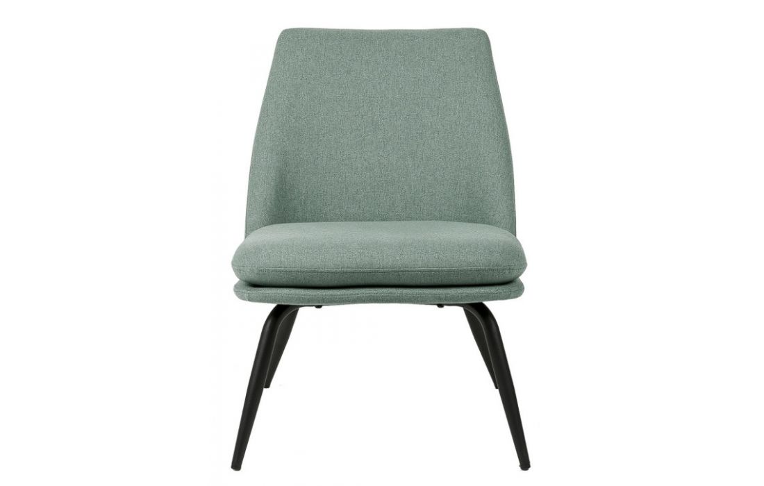 Cadeirão com pés de metal cor preta e estofo em tecido nas cores cinza claro, cinza escuro, menta e rosa