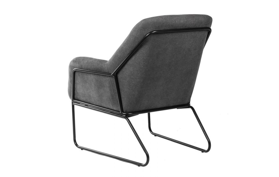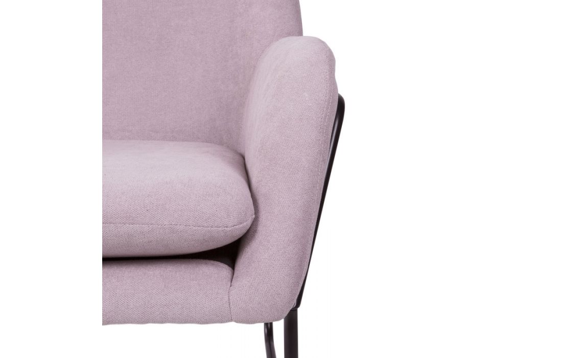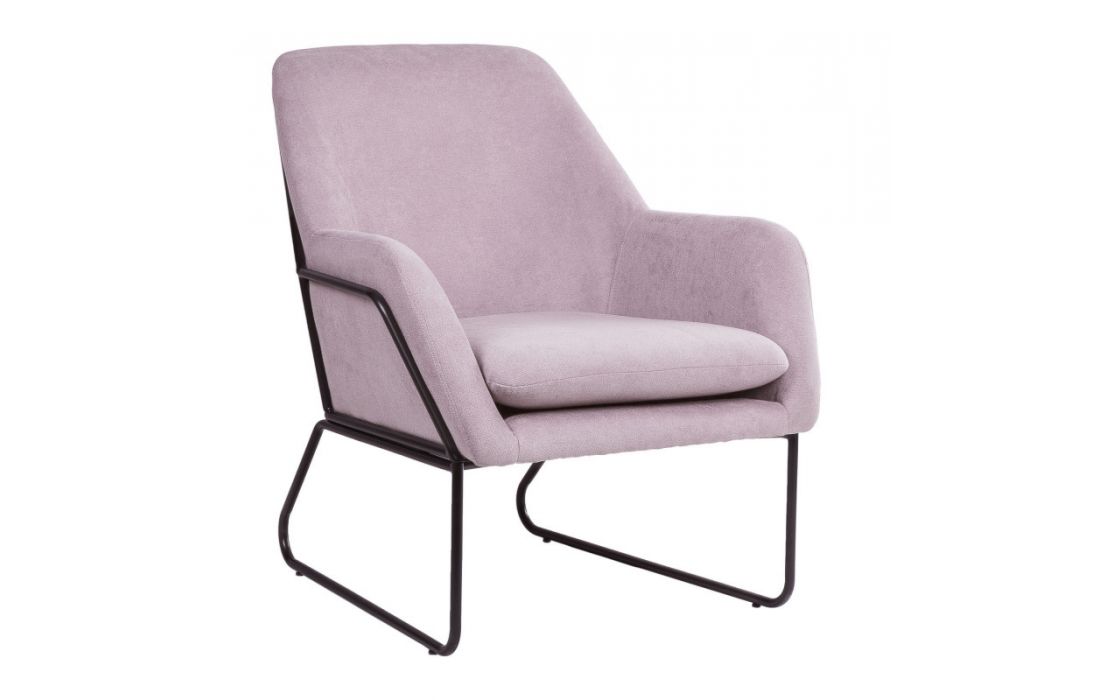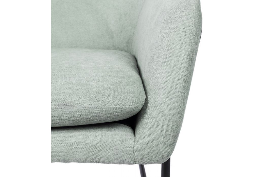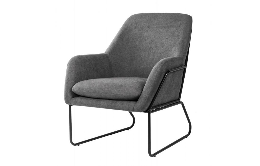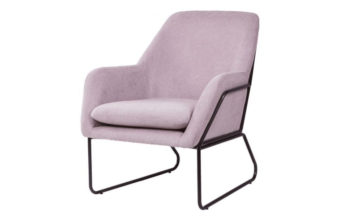 Cadeirão com estrutura em metal de cor preta e estofo nas cores cinza claro, cinza escuro, menta e lilás