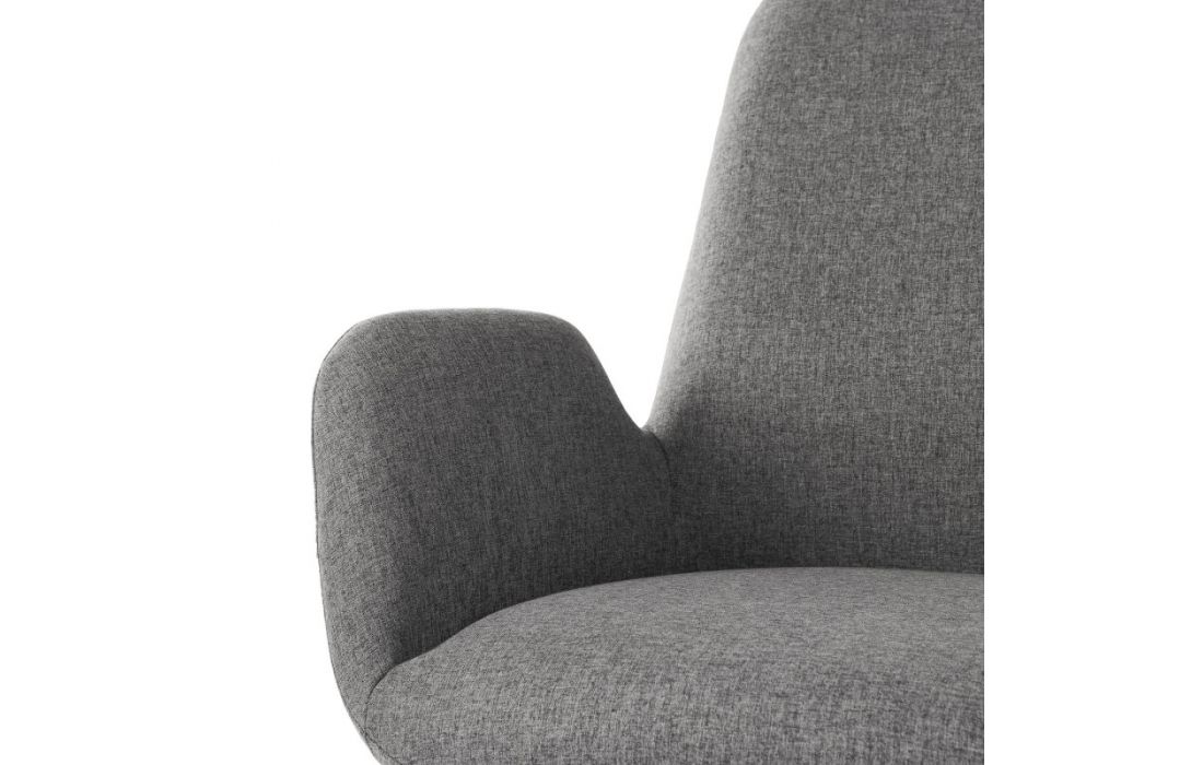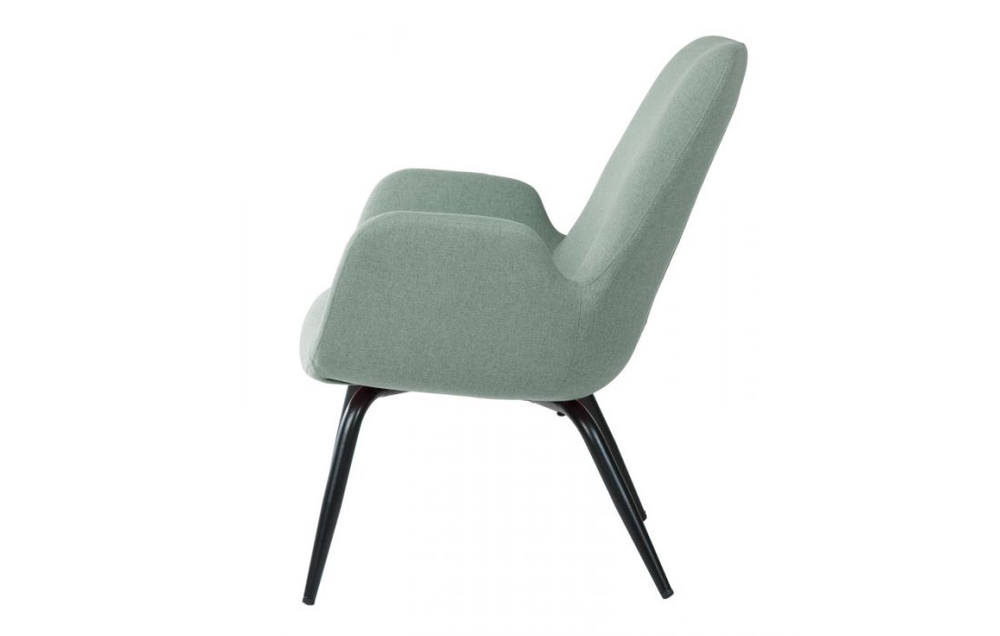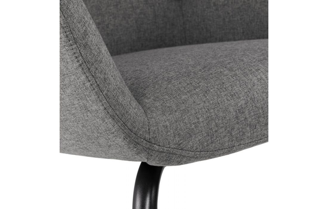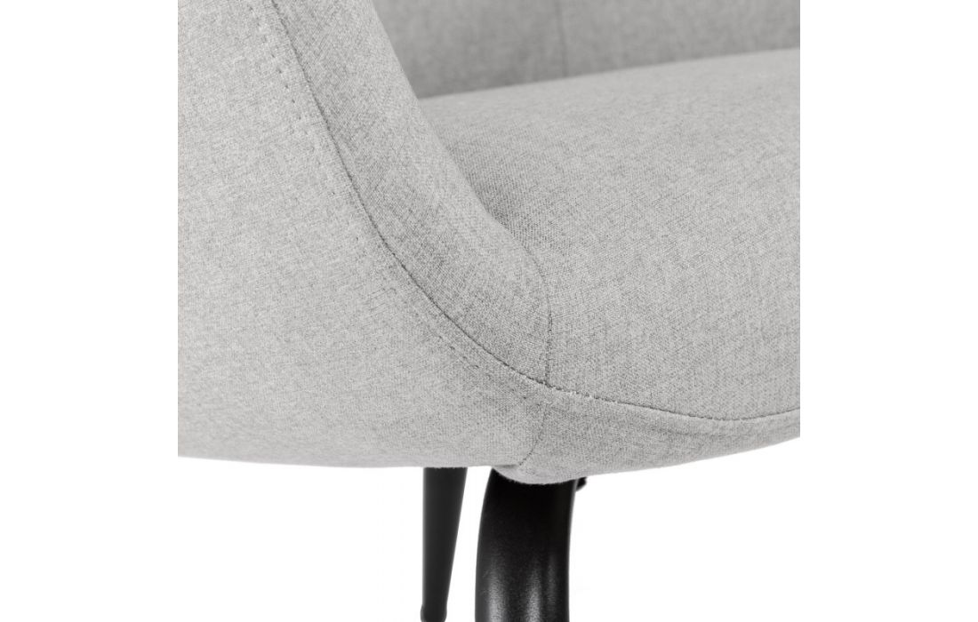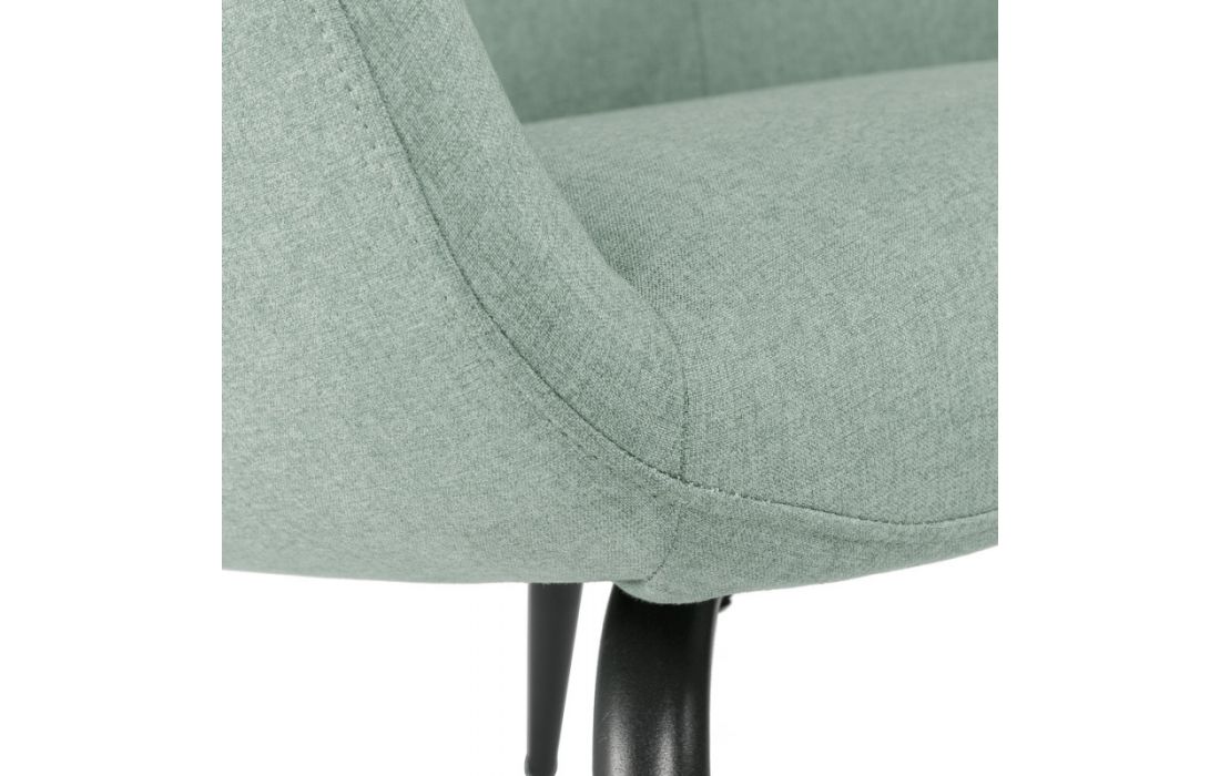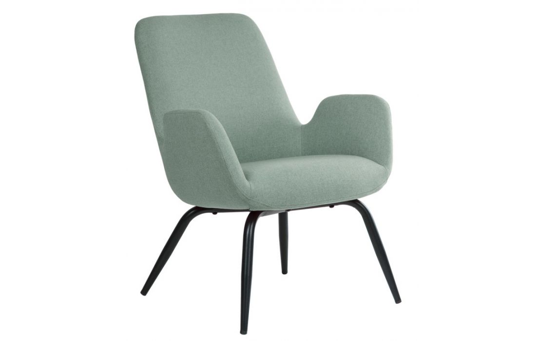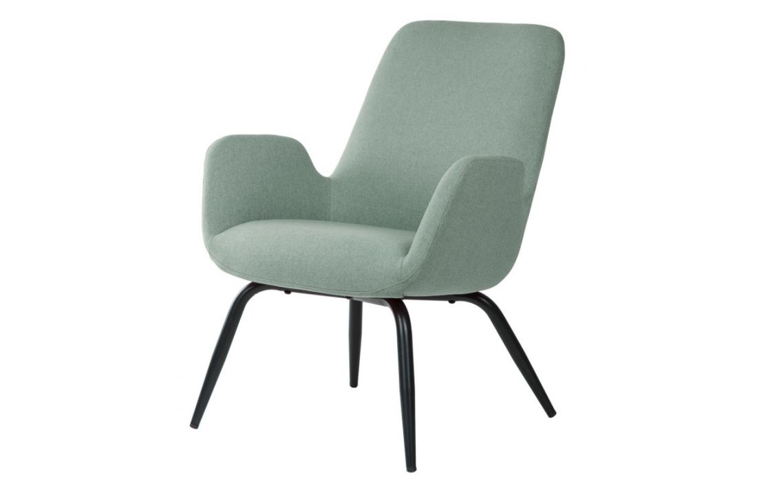 Cadeirão com pés de metal cor preta mate e estofo em tecido nas cores cinza claro, cinza escuro, menta e rosa