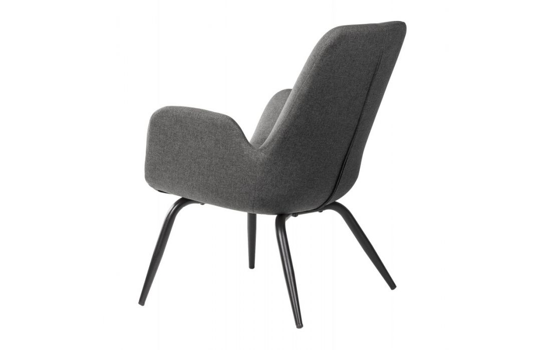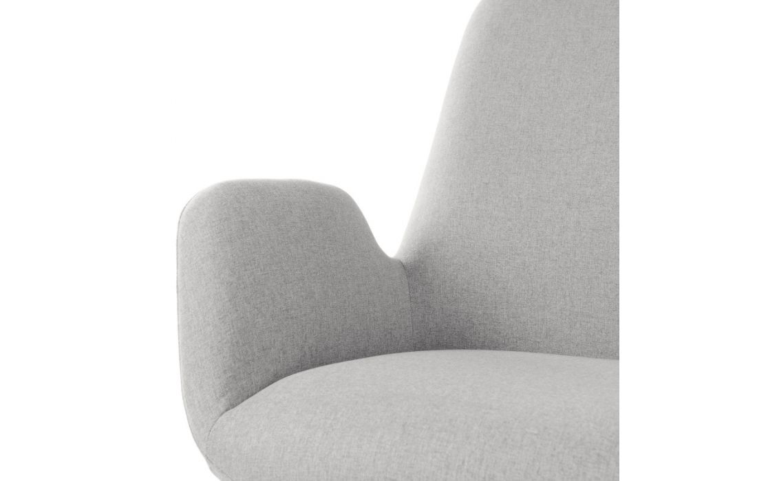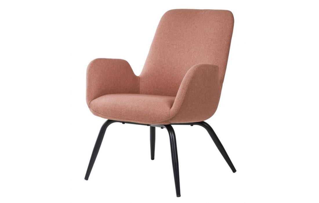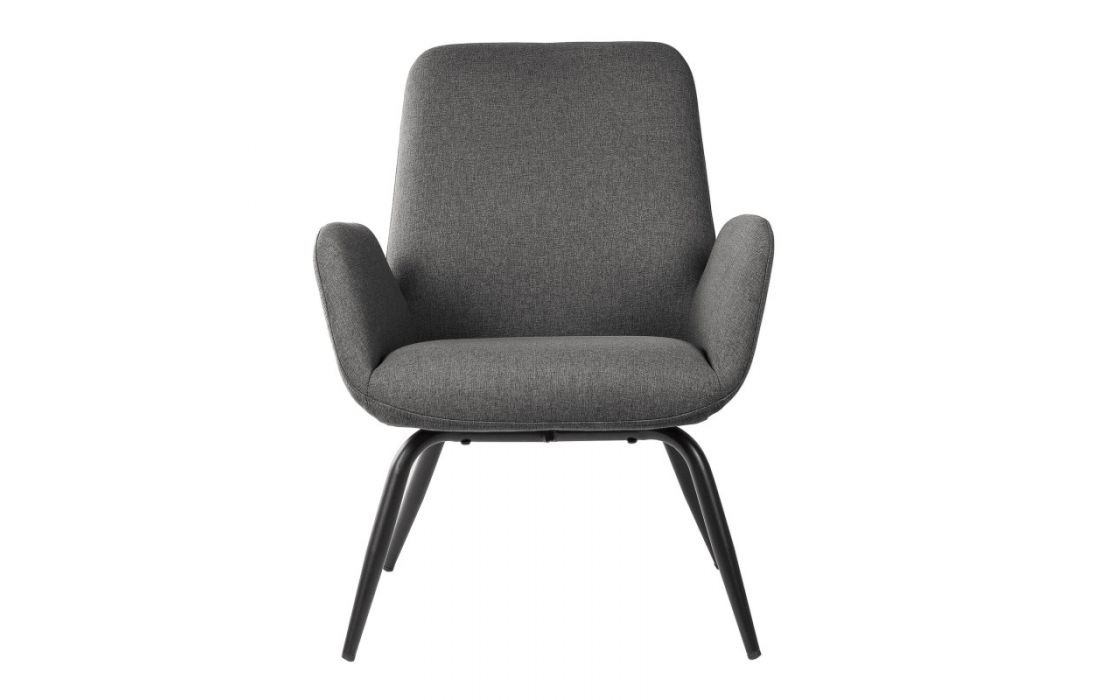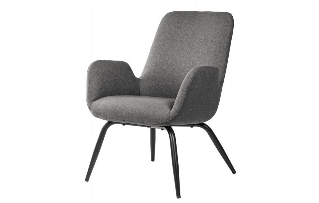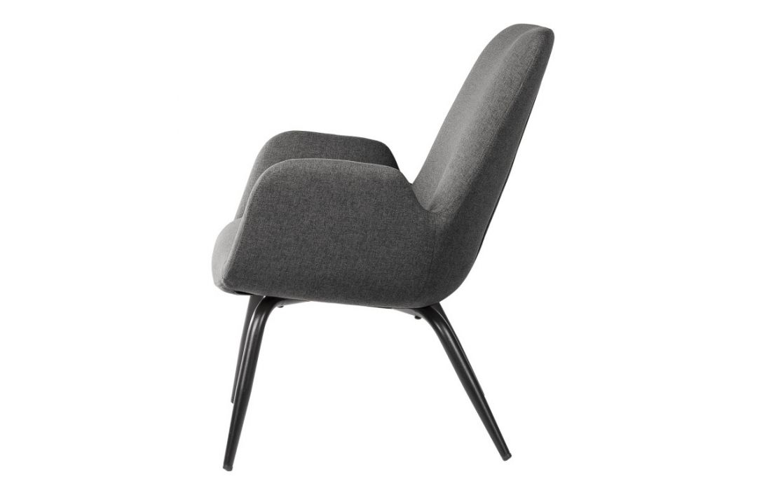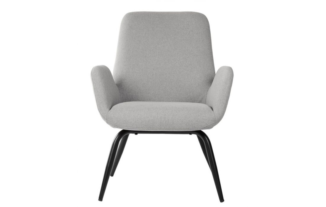 Cadeirão com pés de metal cor preta mate e estofo em tecido nas cores cinza claro, cinza escuro, menta e rosa