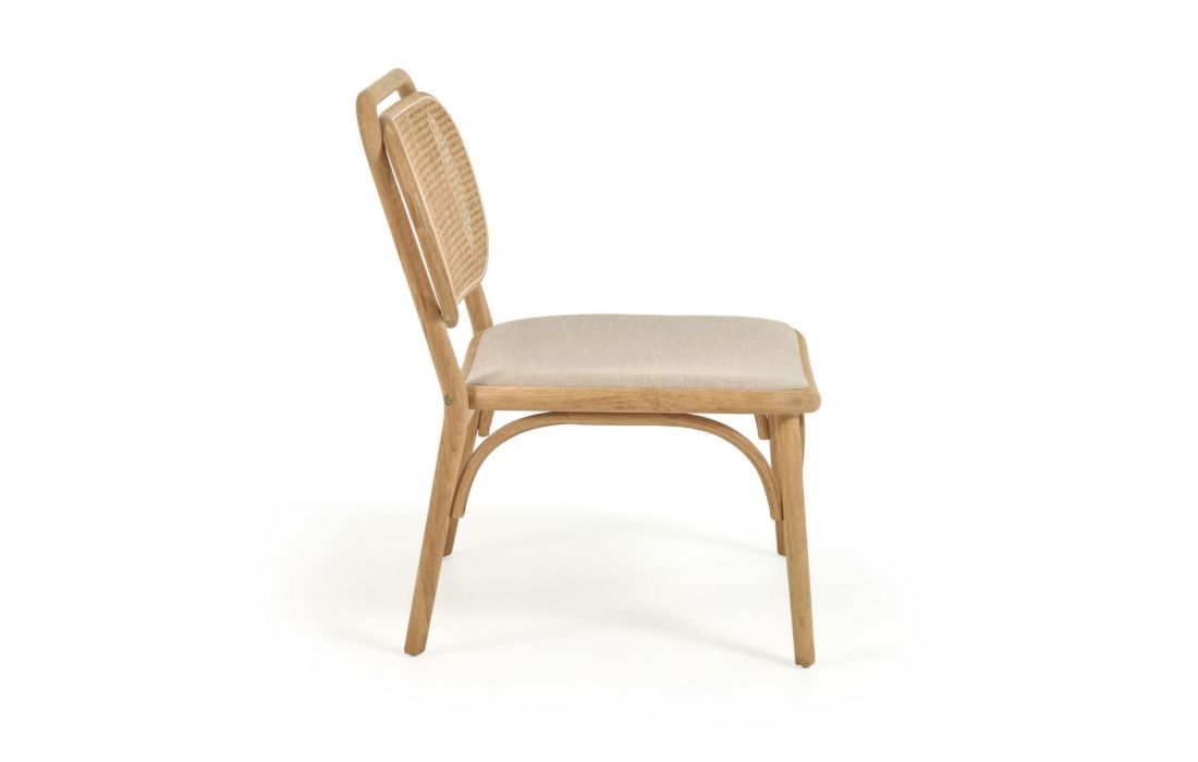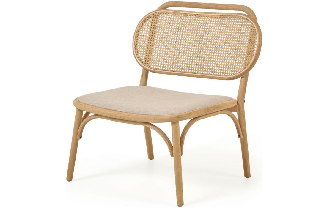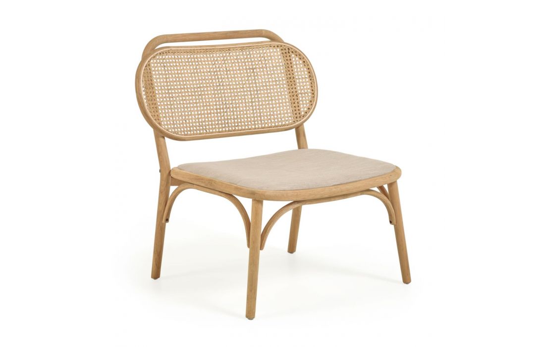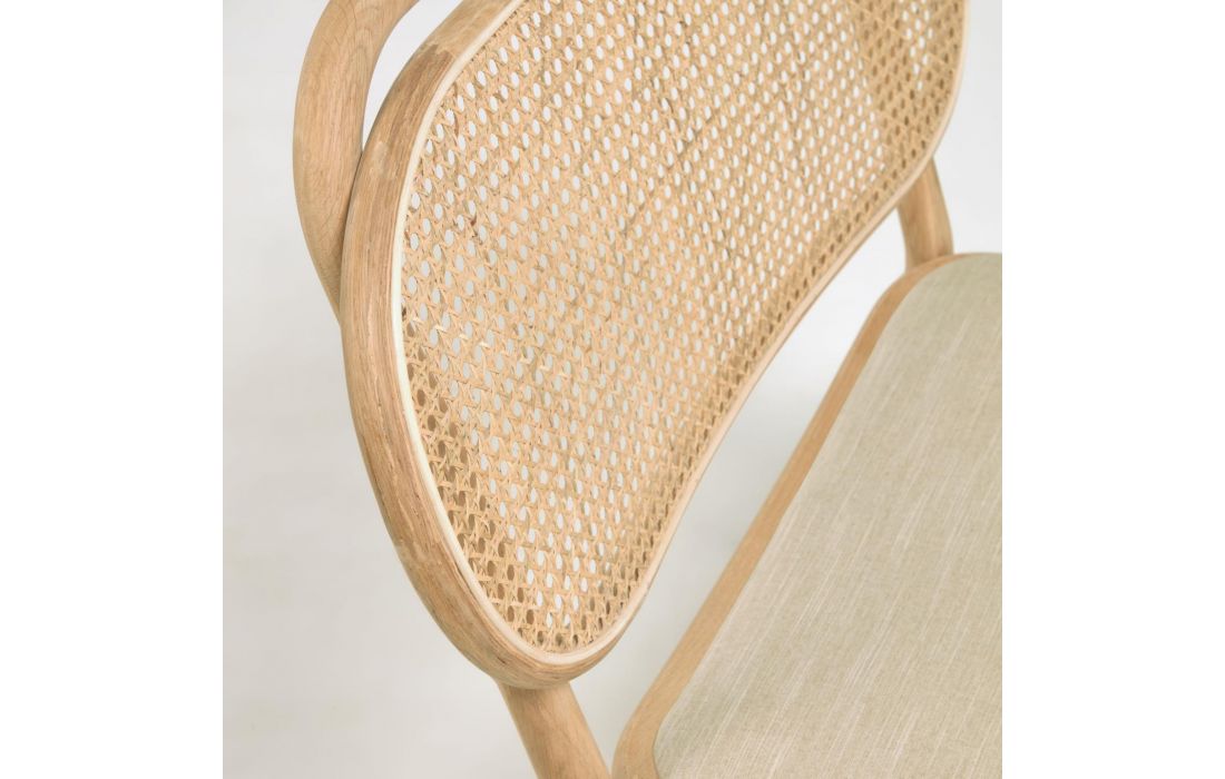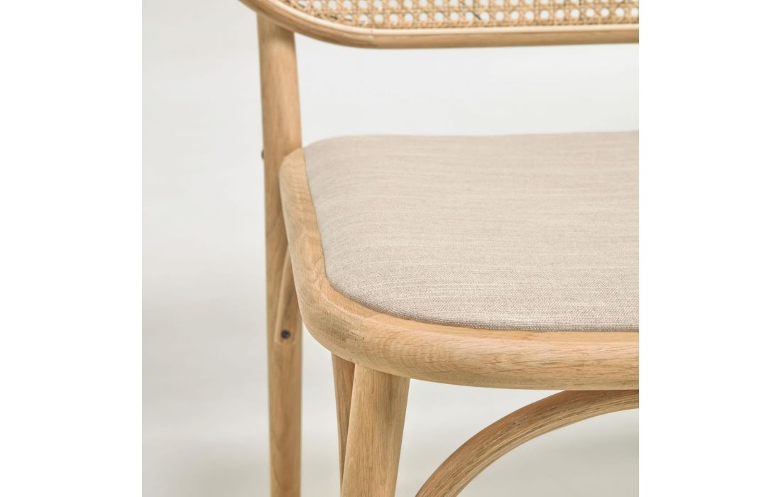 Poltrona em carvalho maciço com acabamento natural, encosto em palhinha e assento em tecido.Destinatário :
