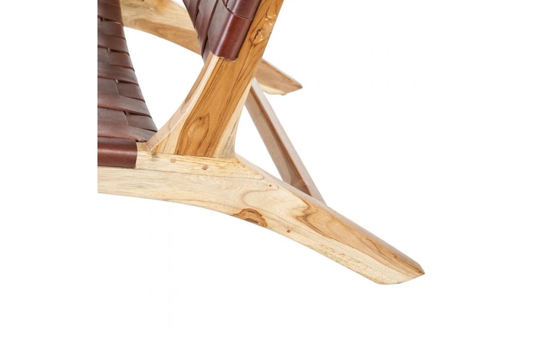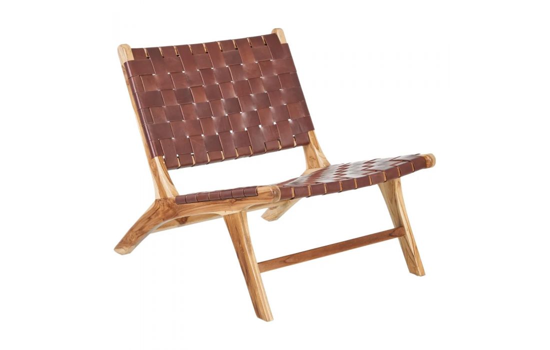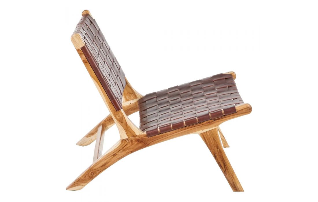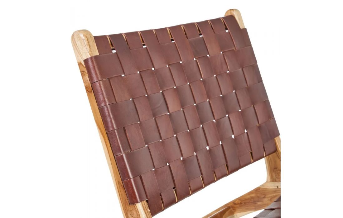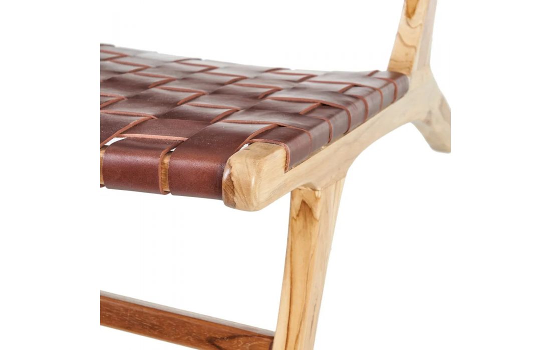 Poltrona em couro trançado à mão e estrutura em madeira maciça de teca com acabamento natural.