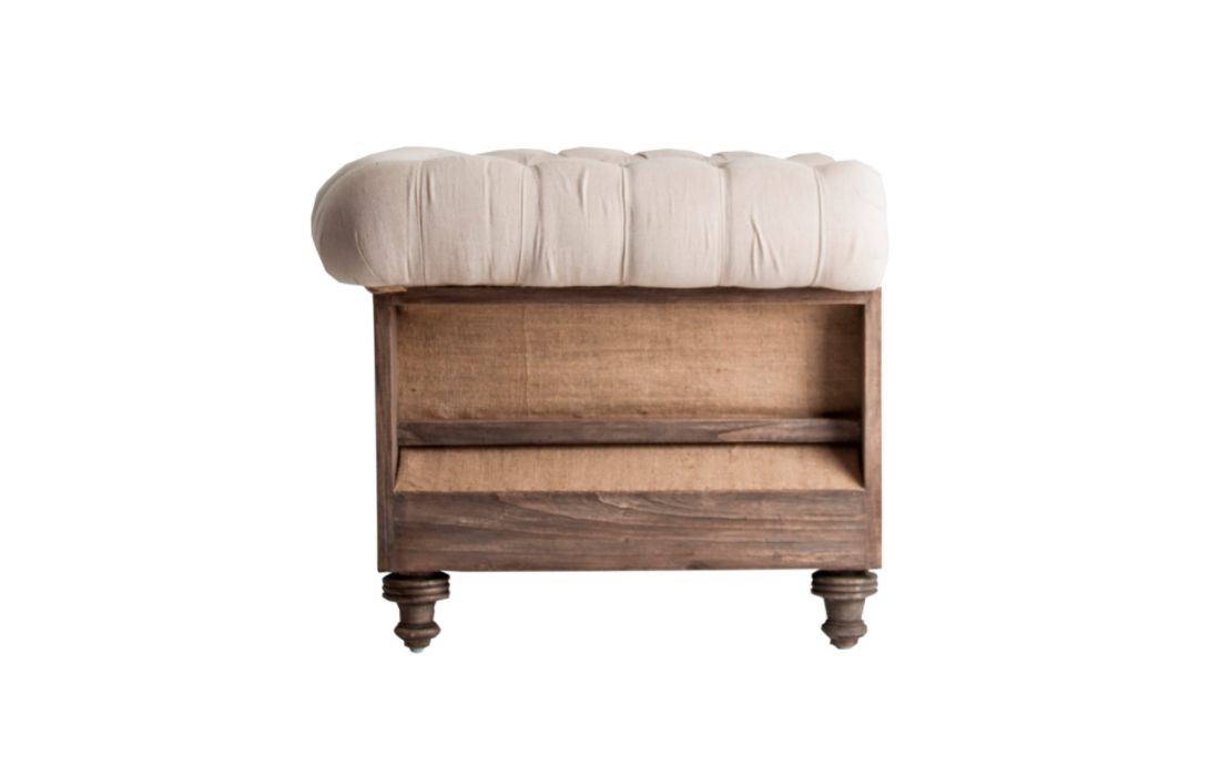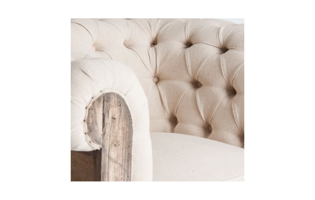 Poltrona estofada em tecido poliéster e estrutura em madeira tropical