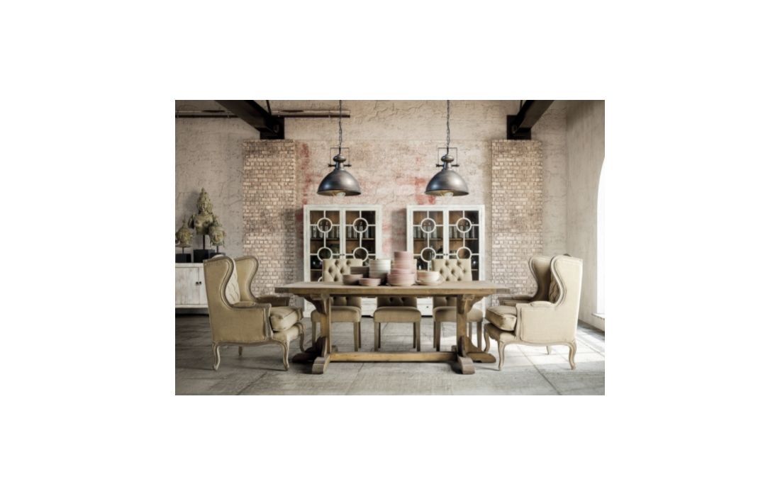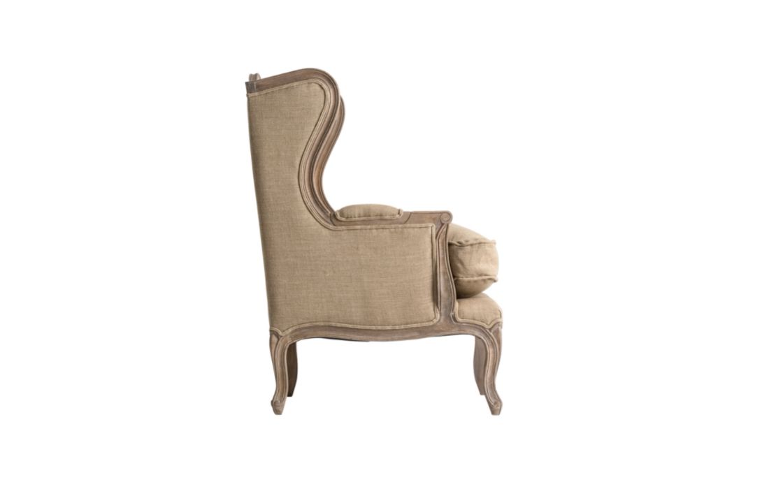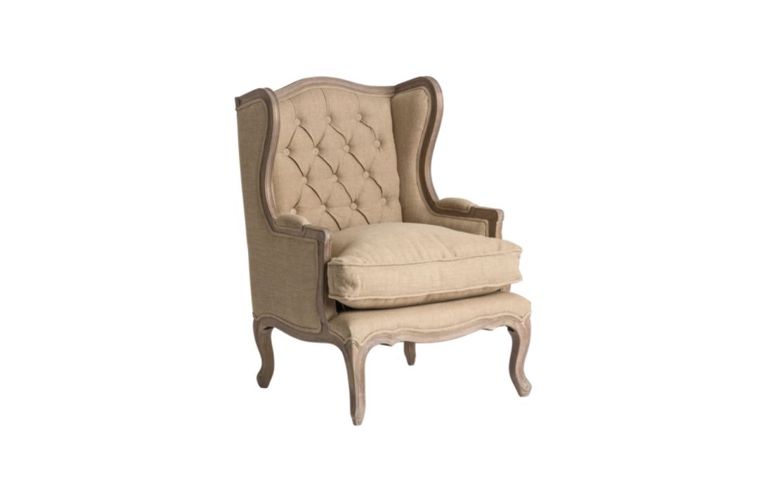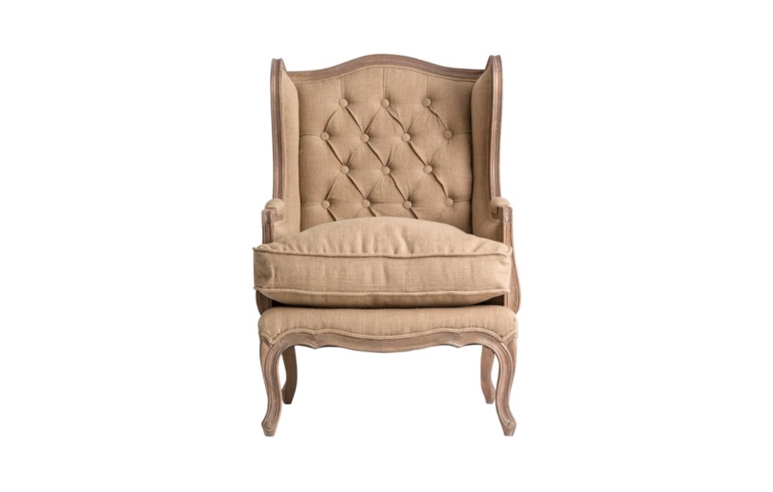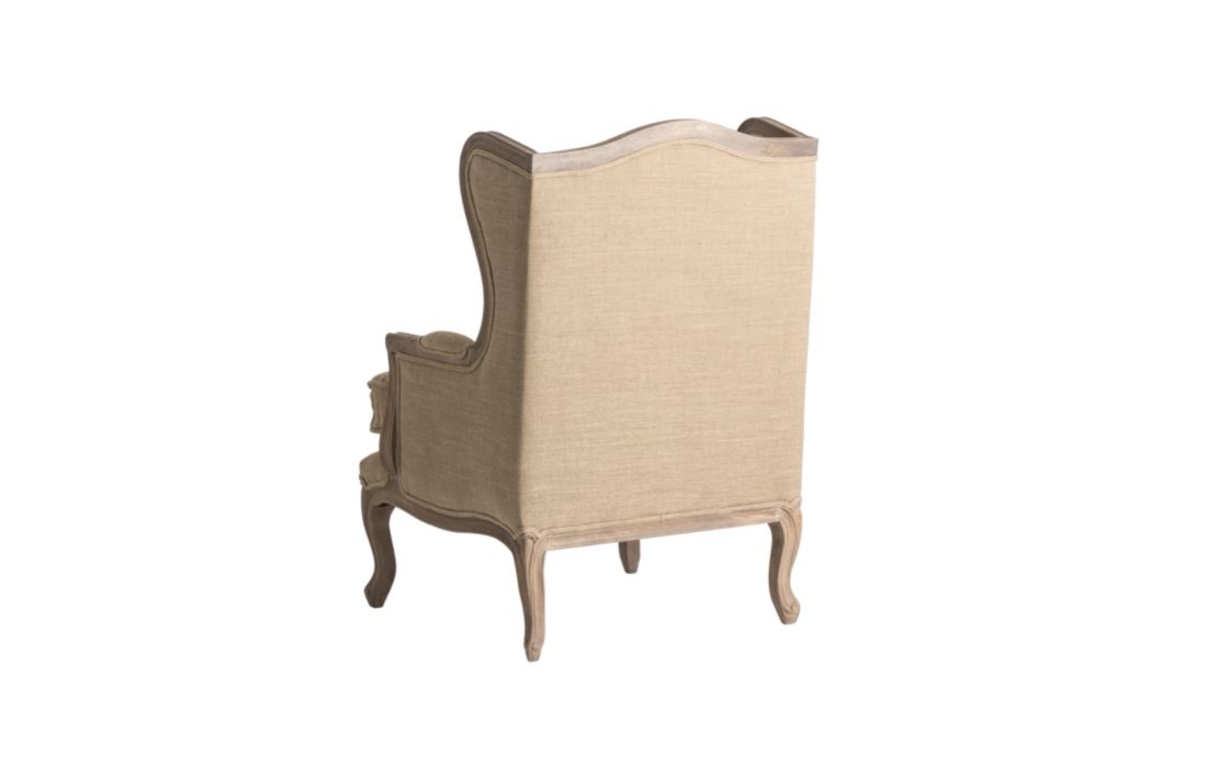 Poltrona estilo provençal feito em madeira de manga e tecido de algodão.