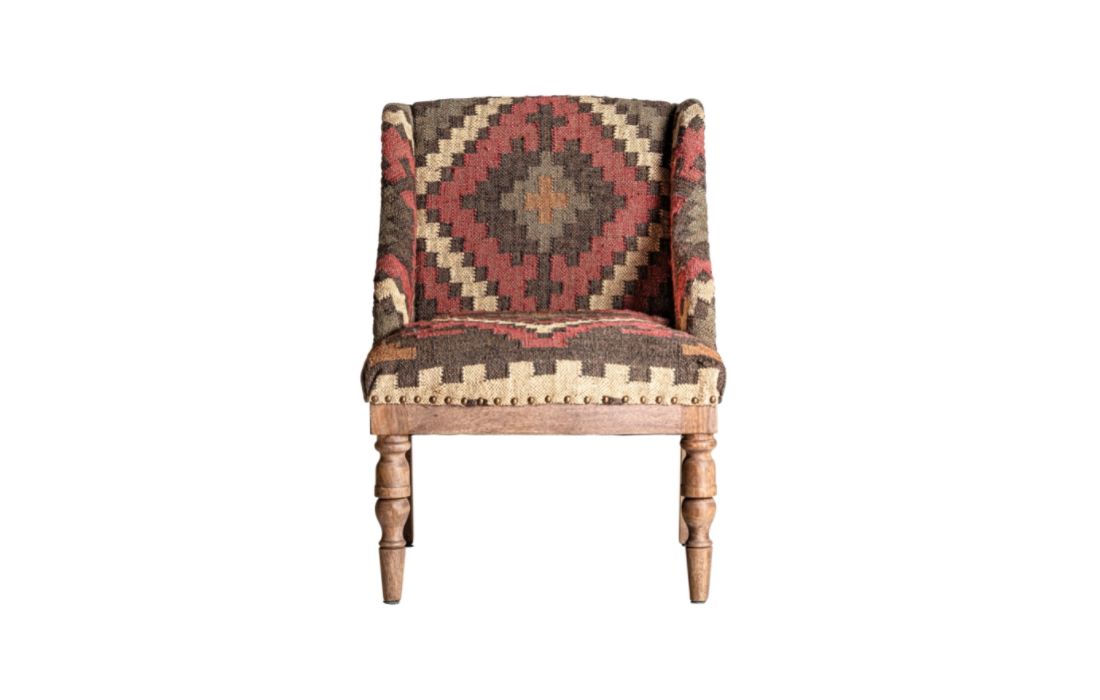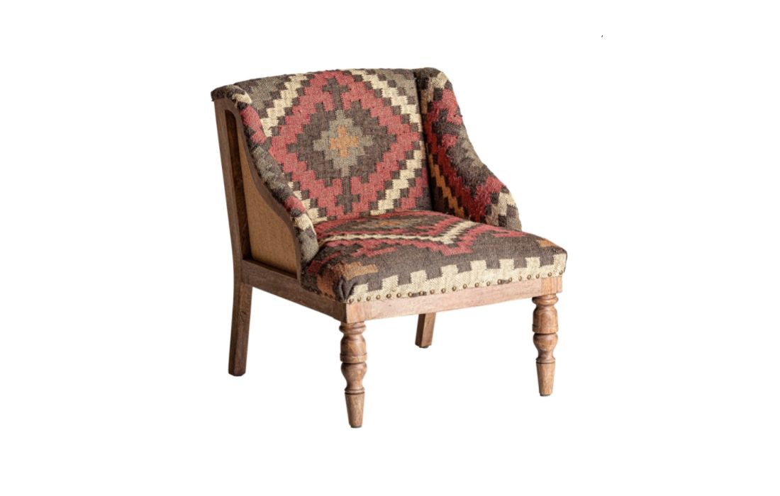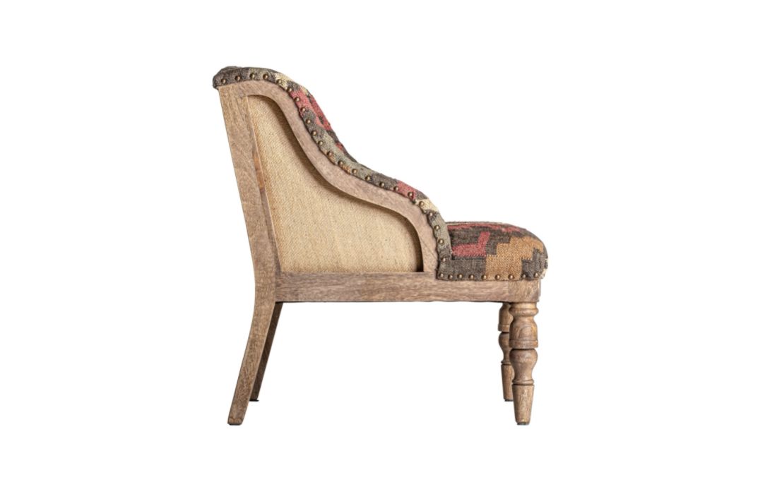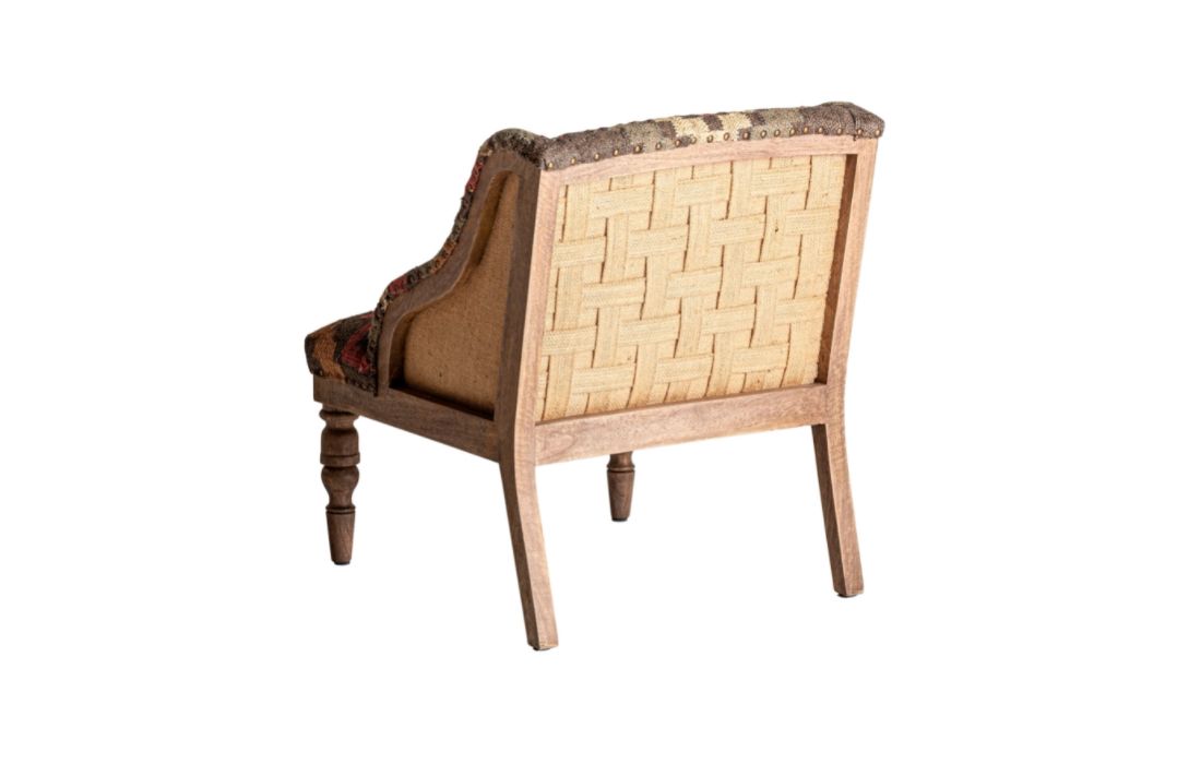 Poltrona estilo colonial feita em madeira de manga, combina madeira de pinho e juta.