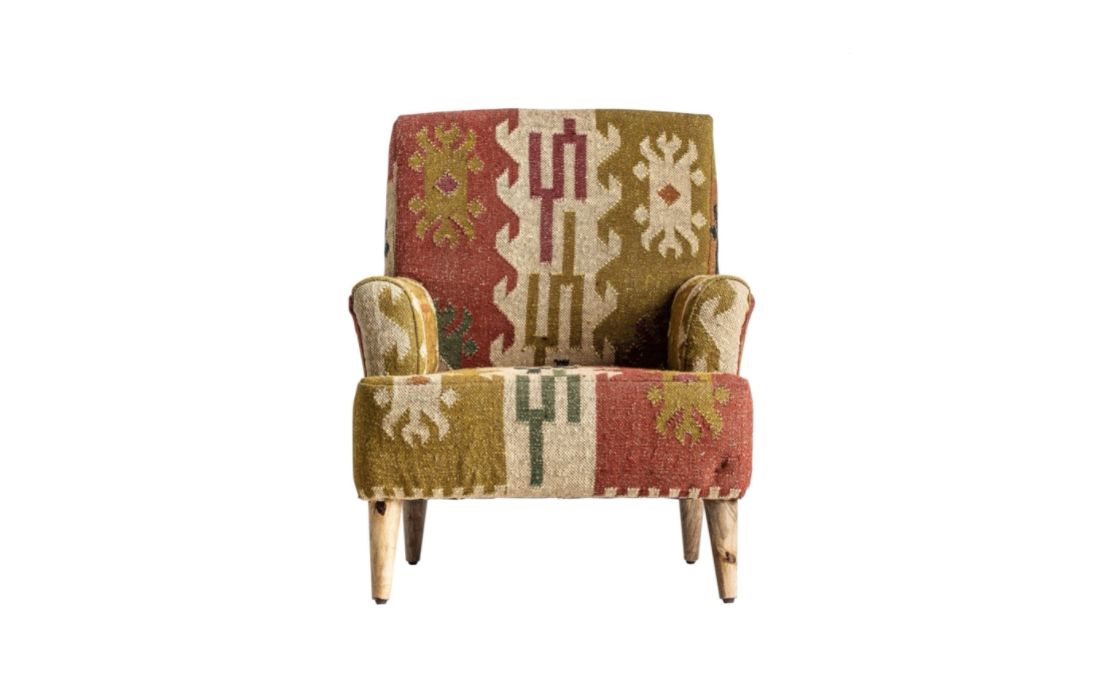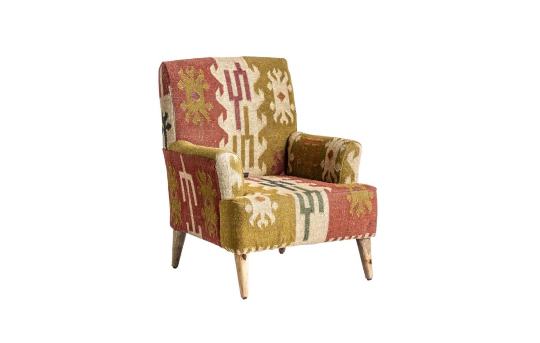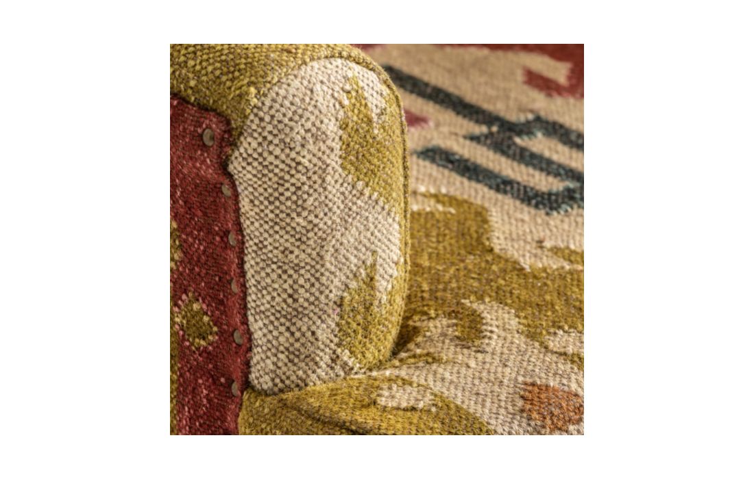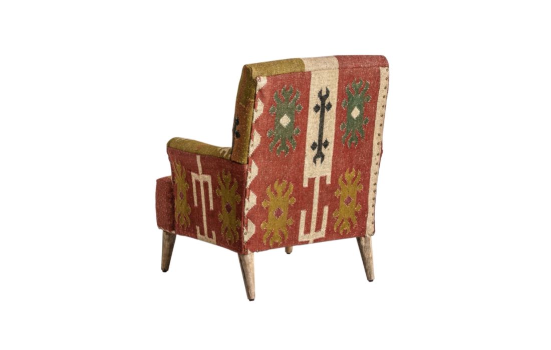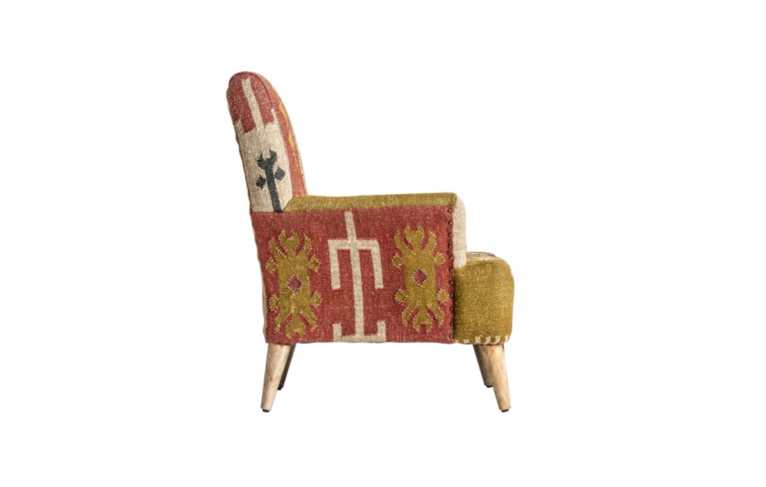 Poltrona estilo vintage feito em madeira de manga, juta e poliéster.