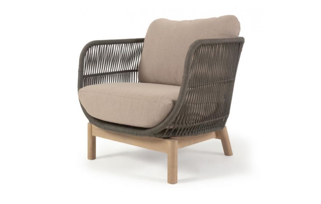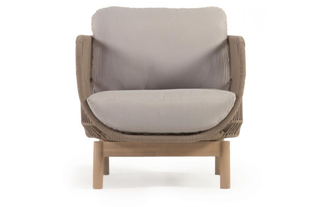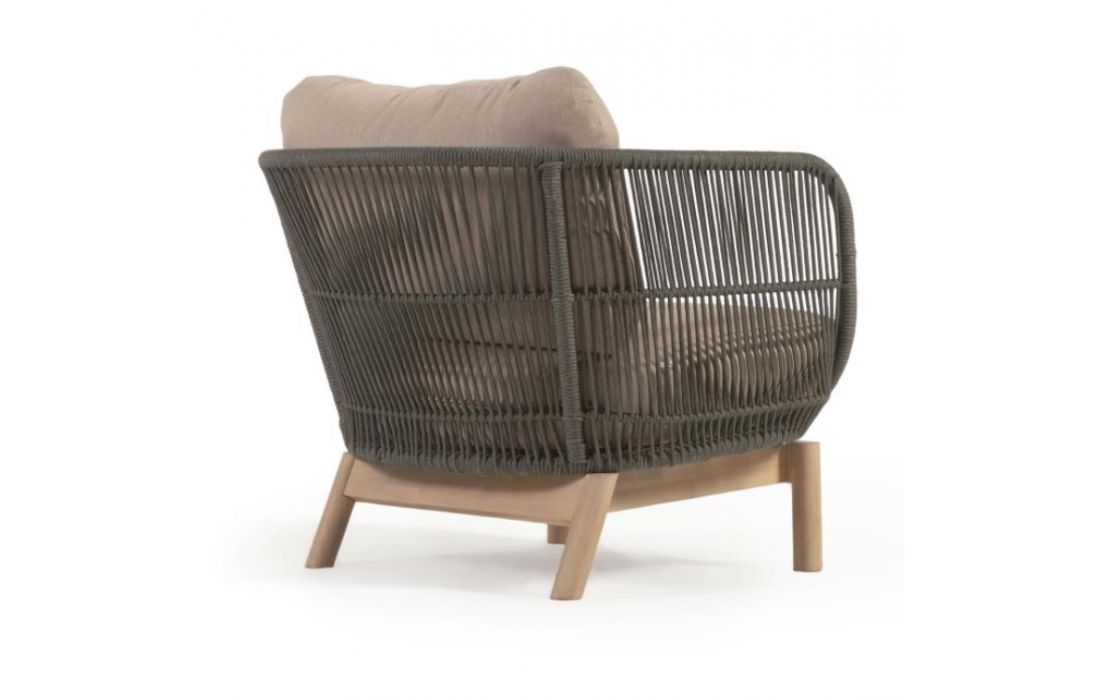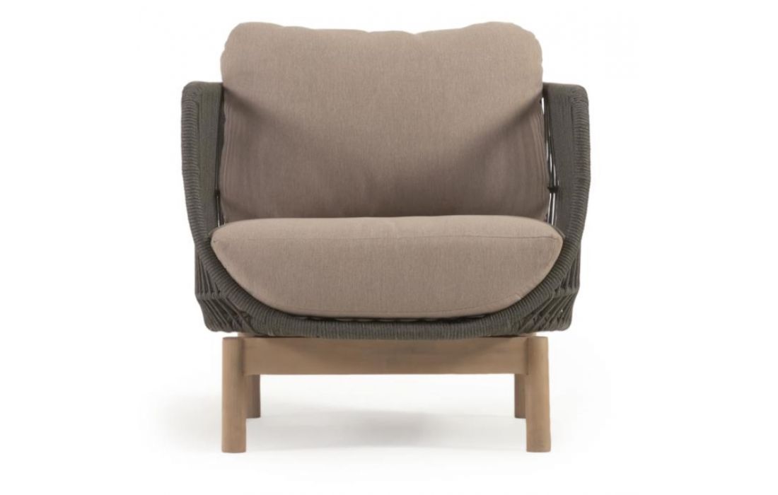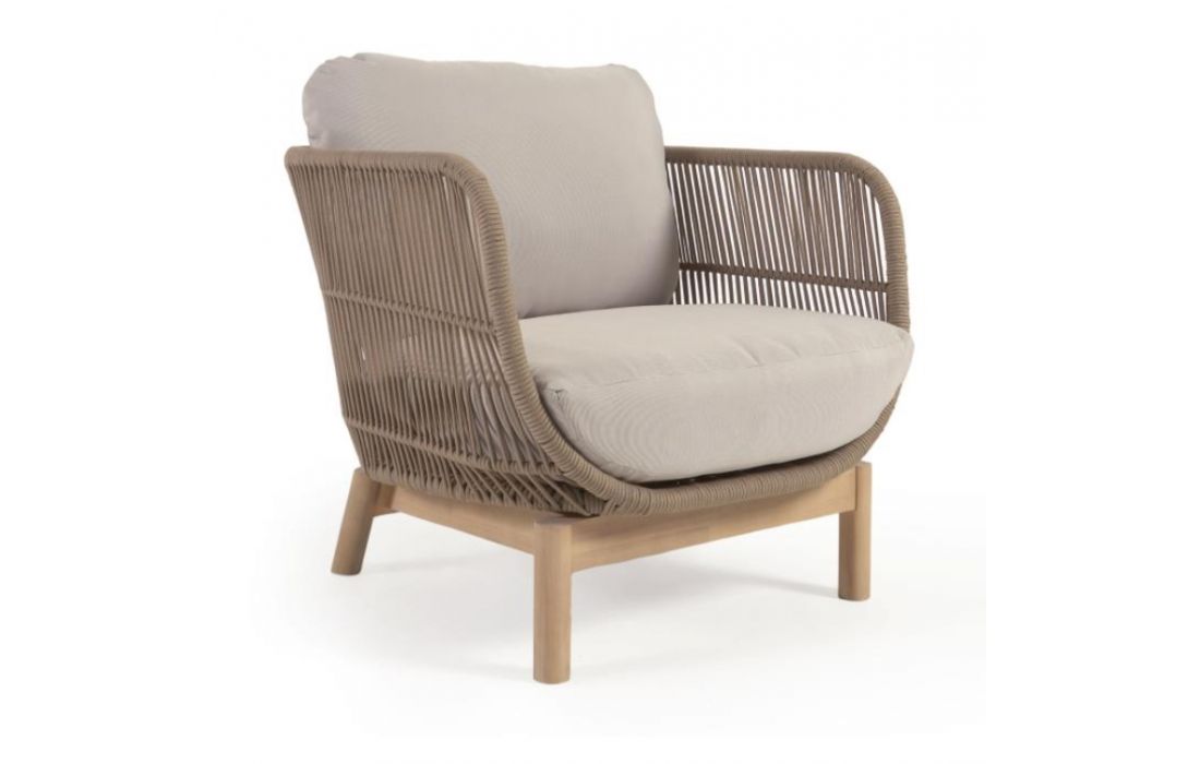 Poltrona em corda, com pés em madeira maçica de acácia e estofo em tecido.Destinatário :
