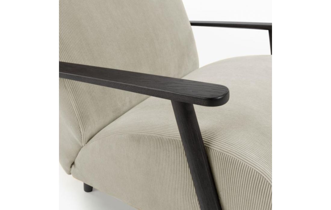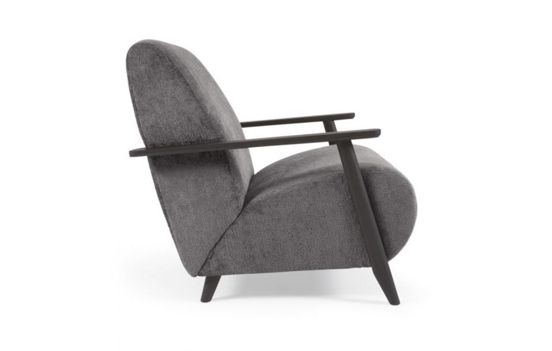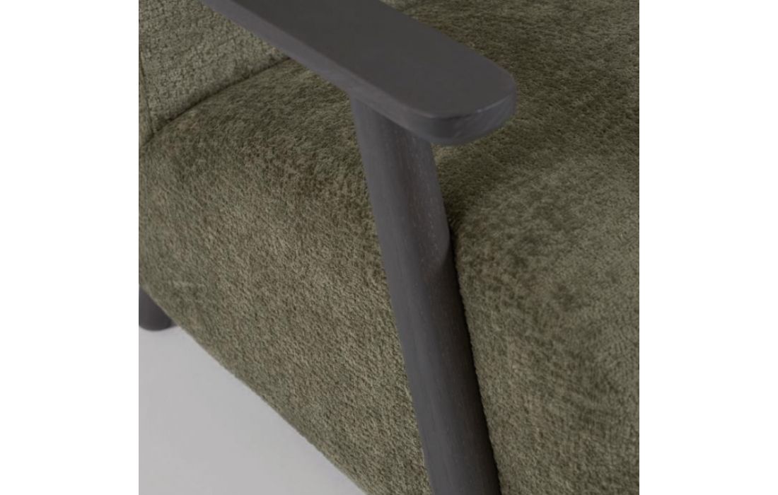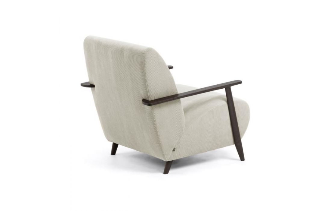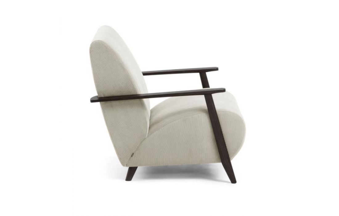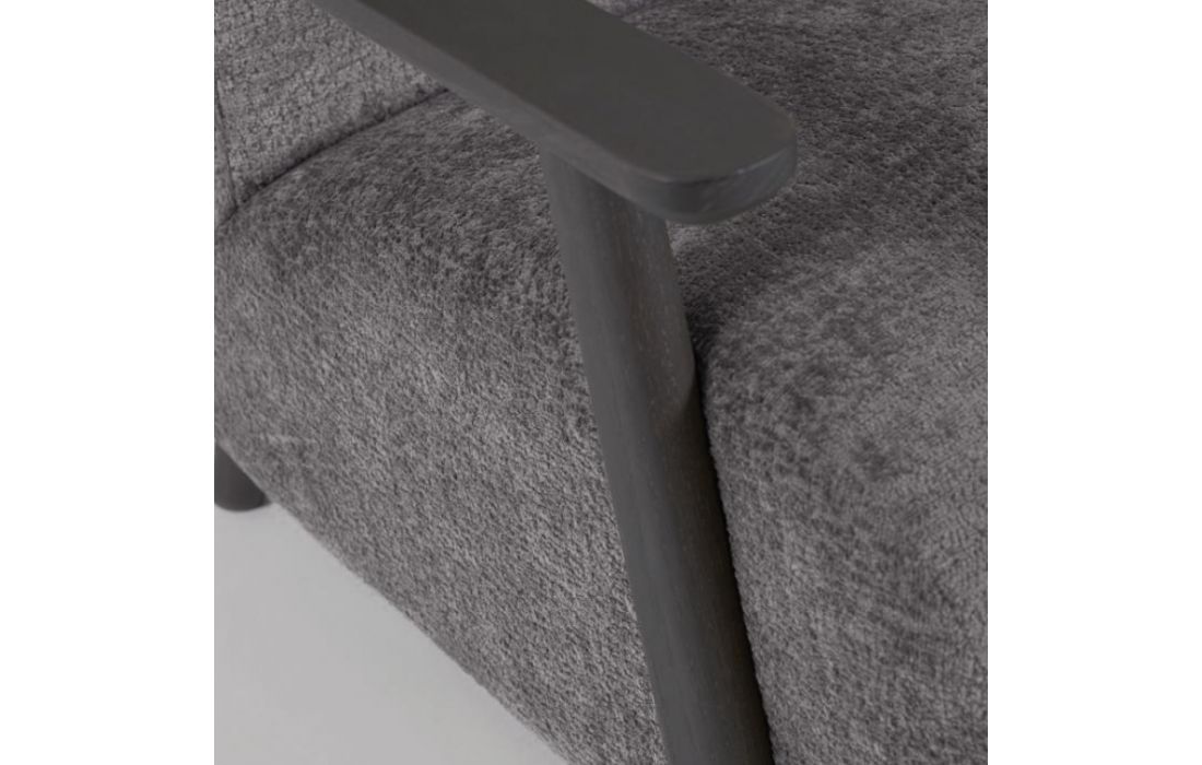 Cadeirão estofado em tecido e braços em madeira de freixo. Disponível em várias cores.Destinatário :