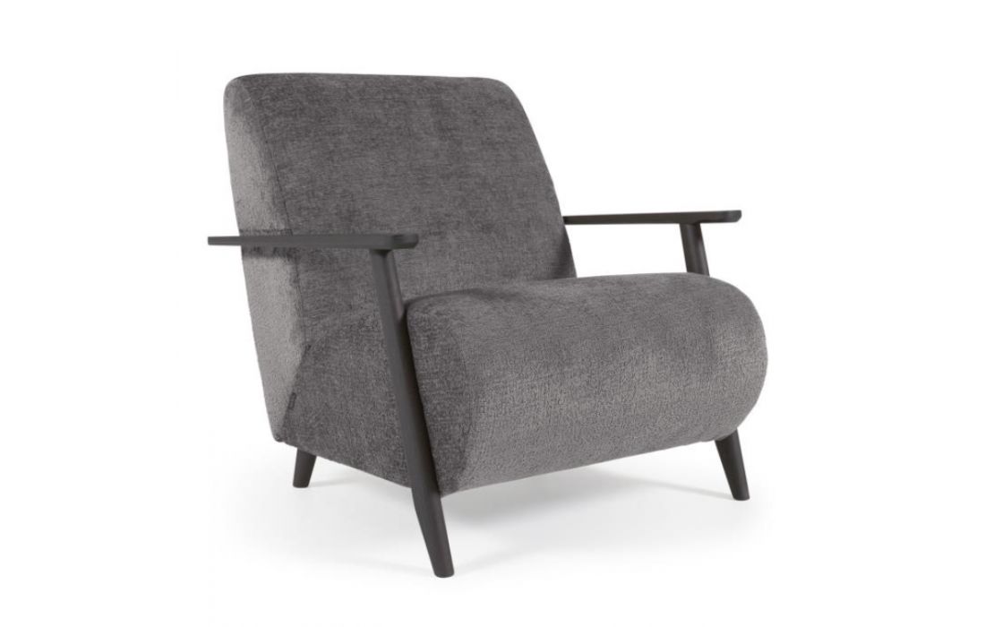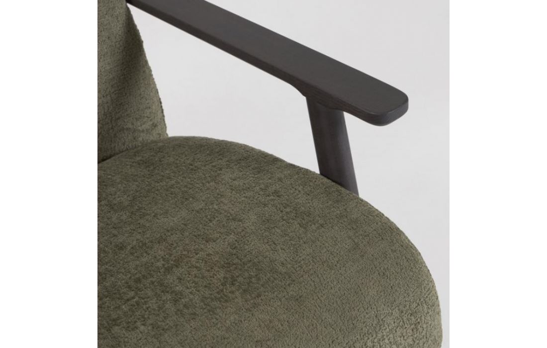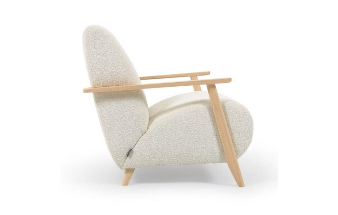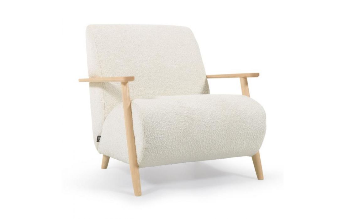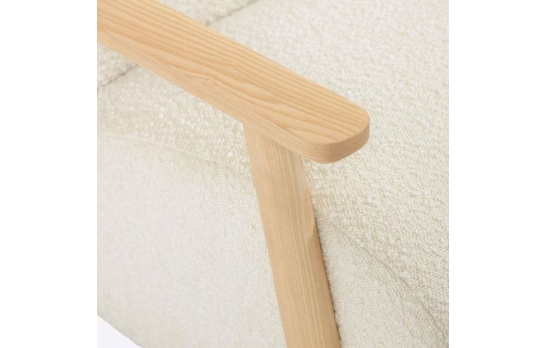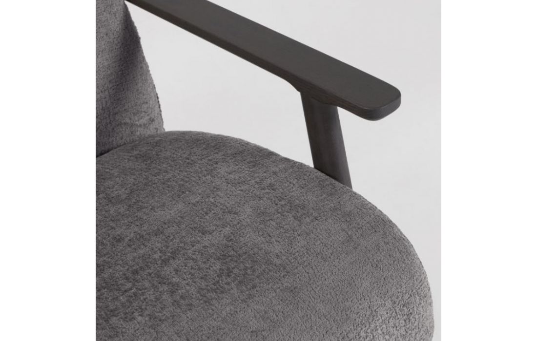 Cadeirão estofado em tecido e braços em madeira de freixo. Disponível em várias cores.Destinatário :