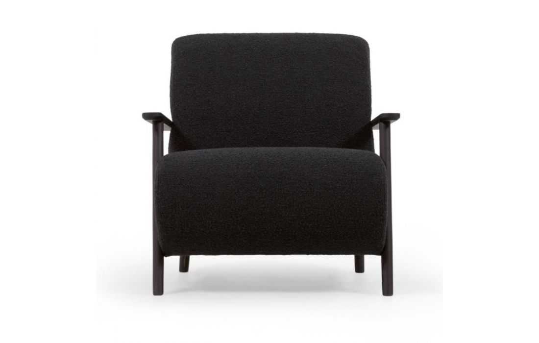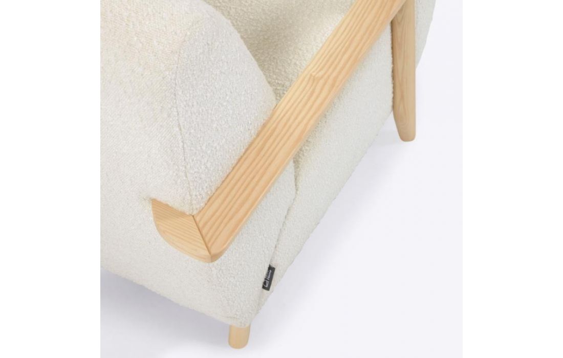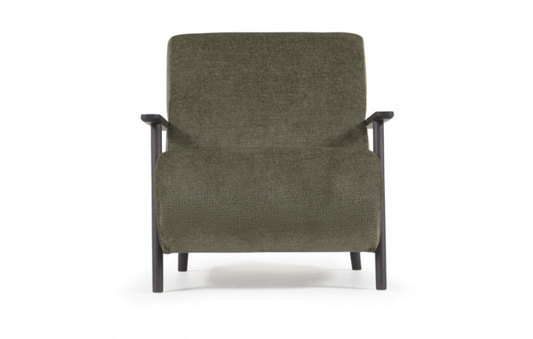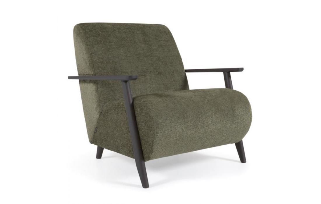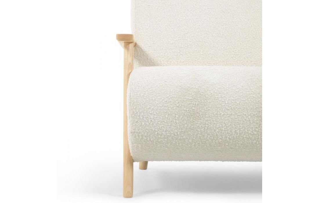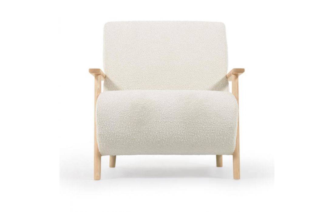 Cadeirão estofado em tecido e braços em madeira de freixo. Disponível em várias cores.Destinatário :