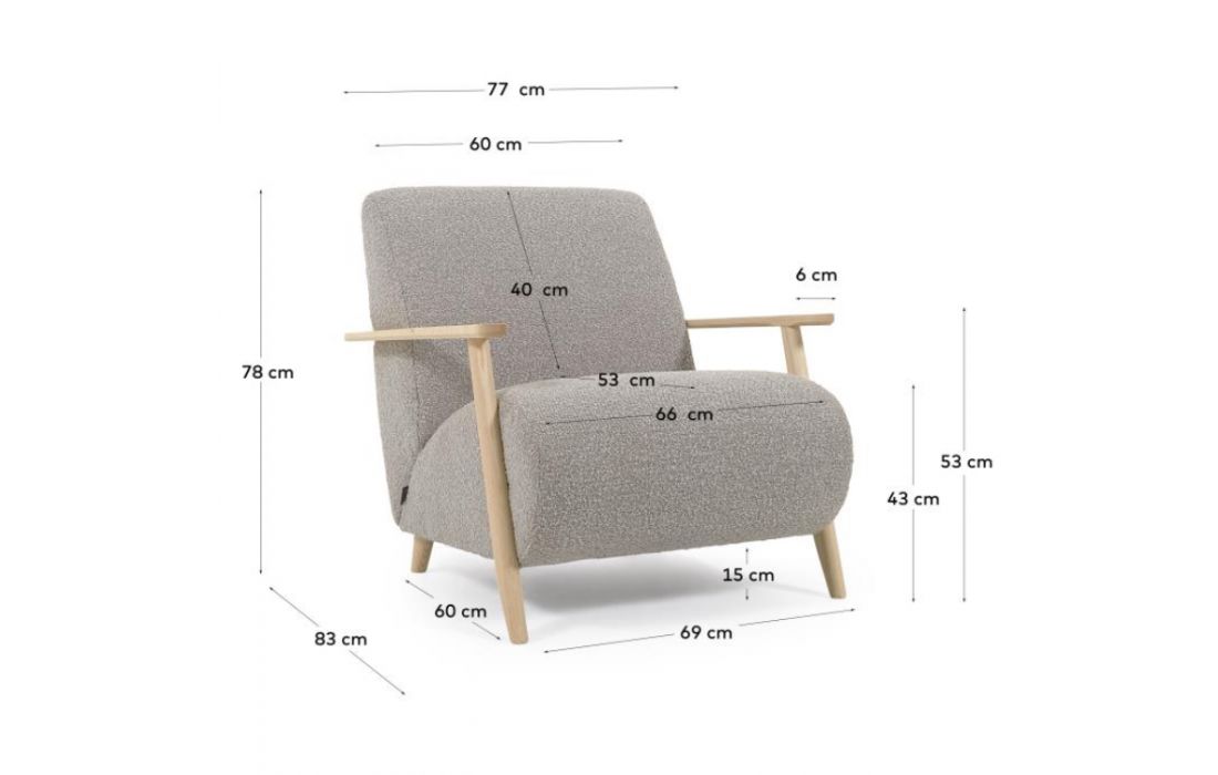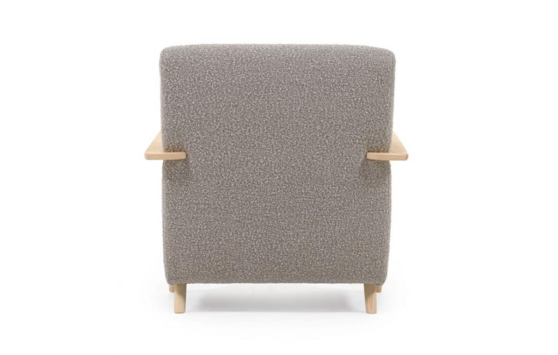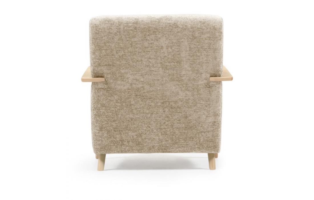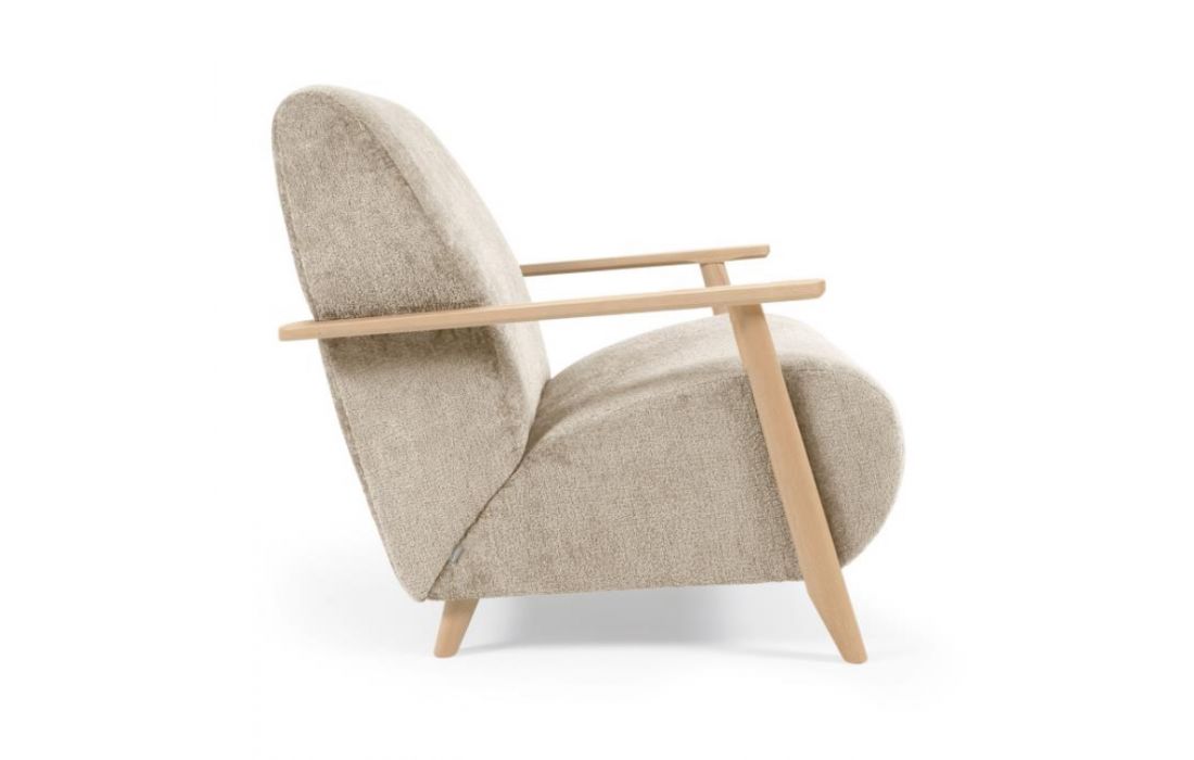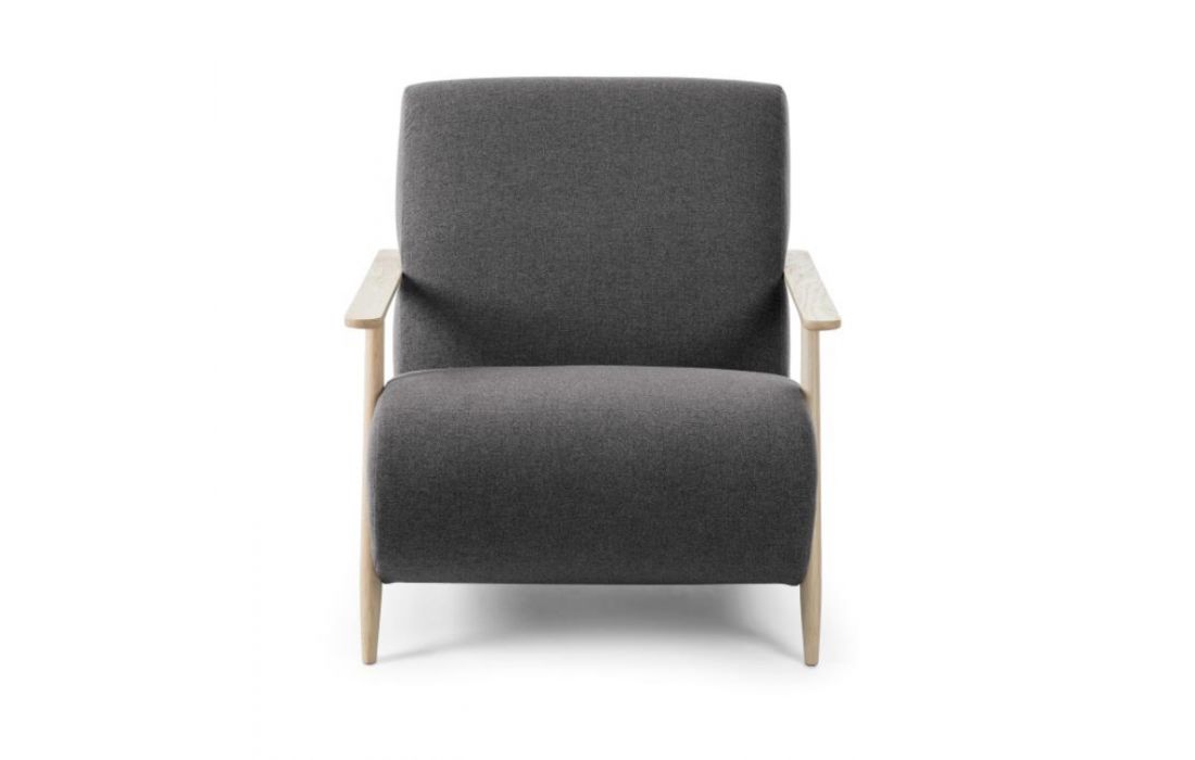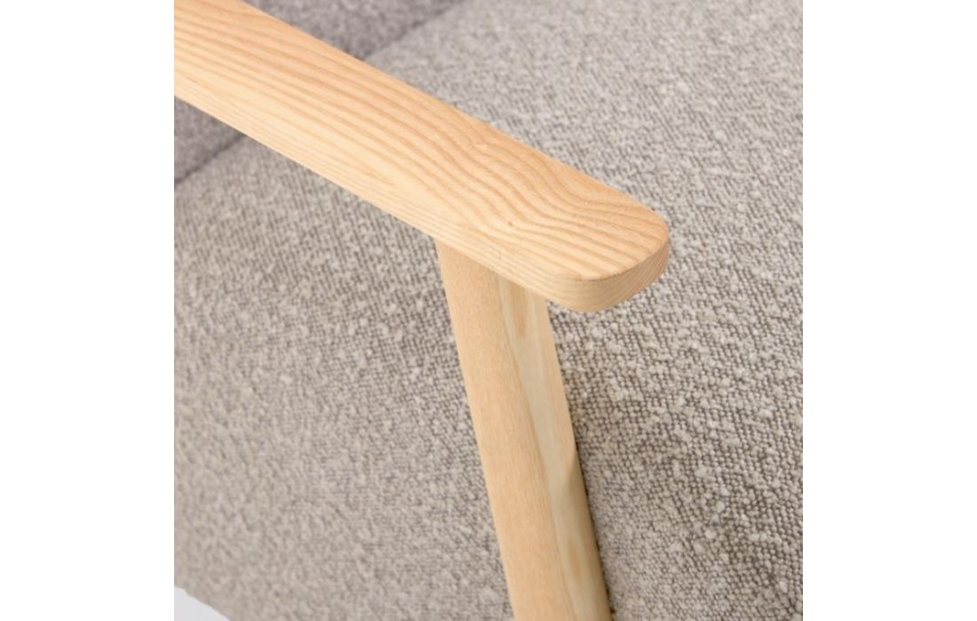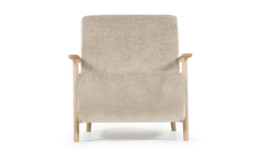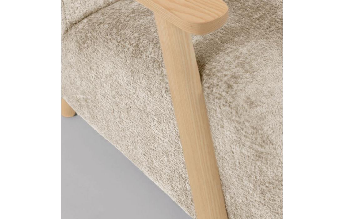Cadeirão estofado em tecido e braços em madeira de freixo. Disponível em várias cores.Destinatário :