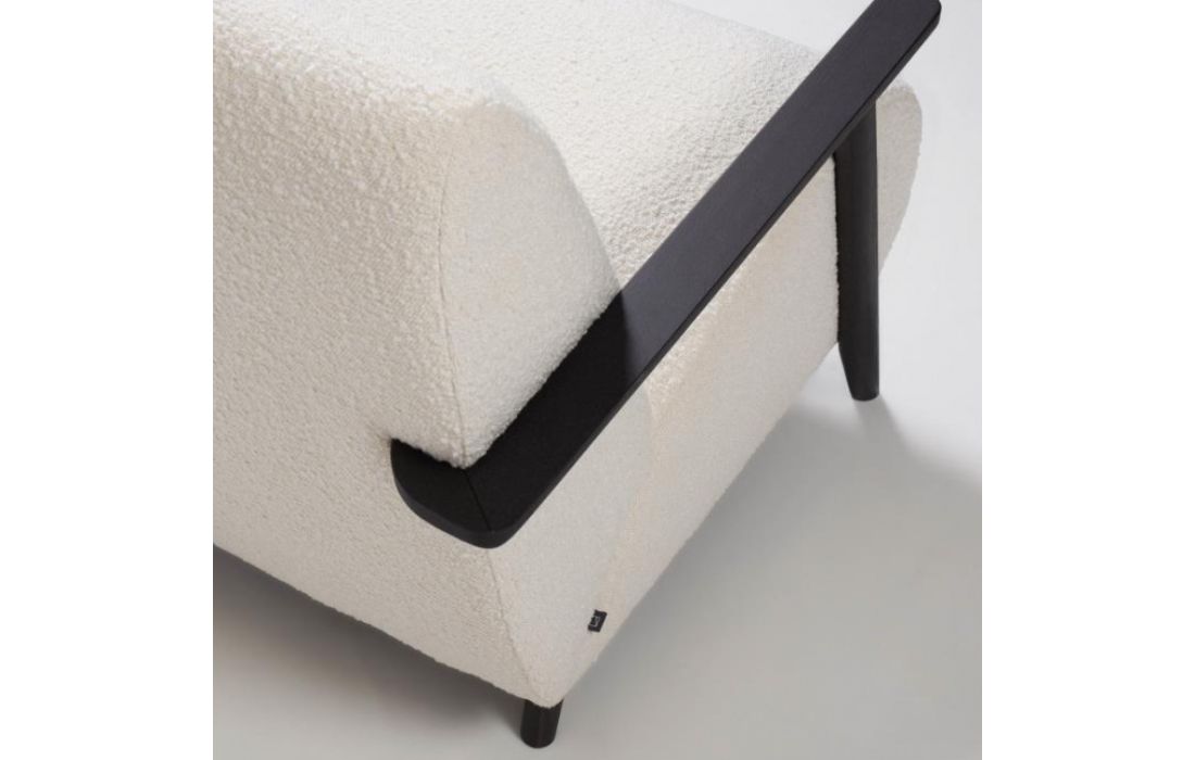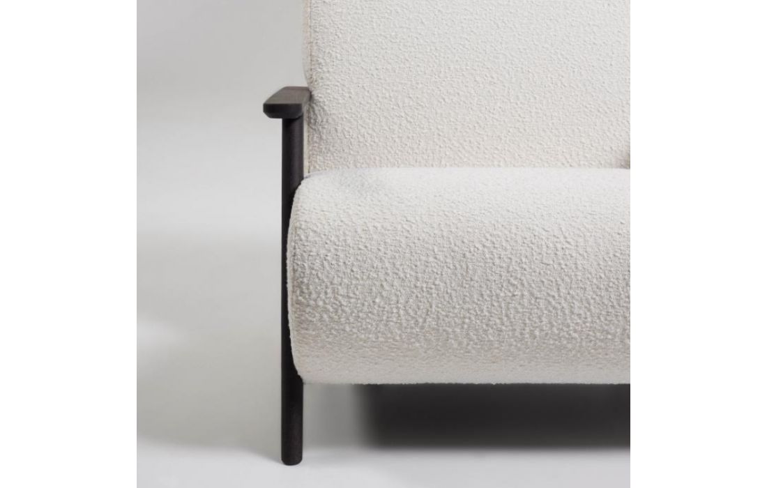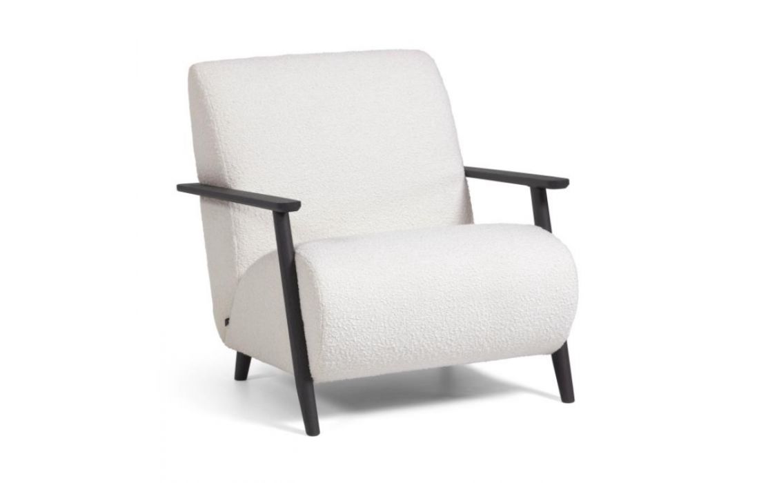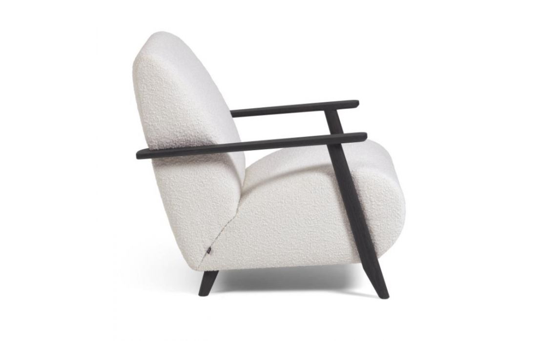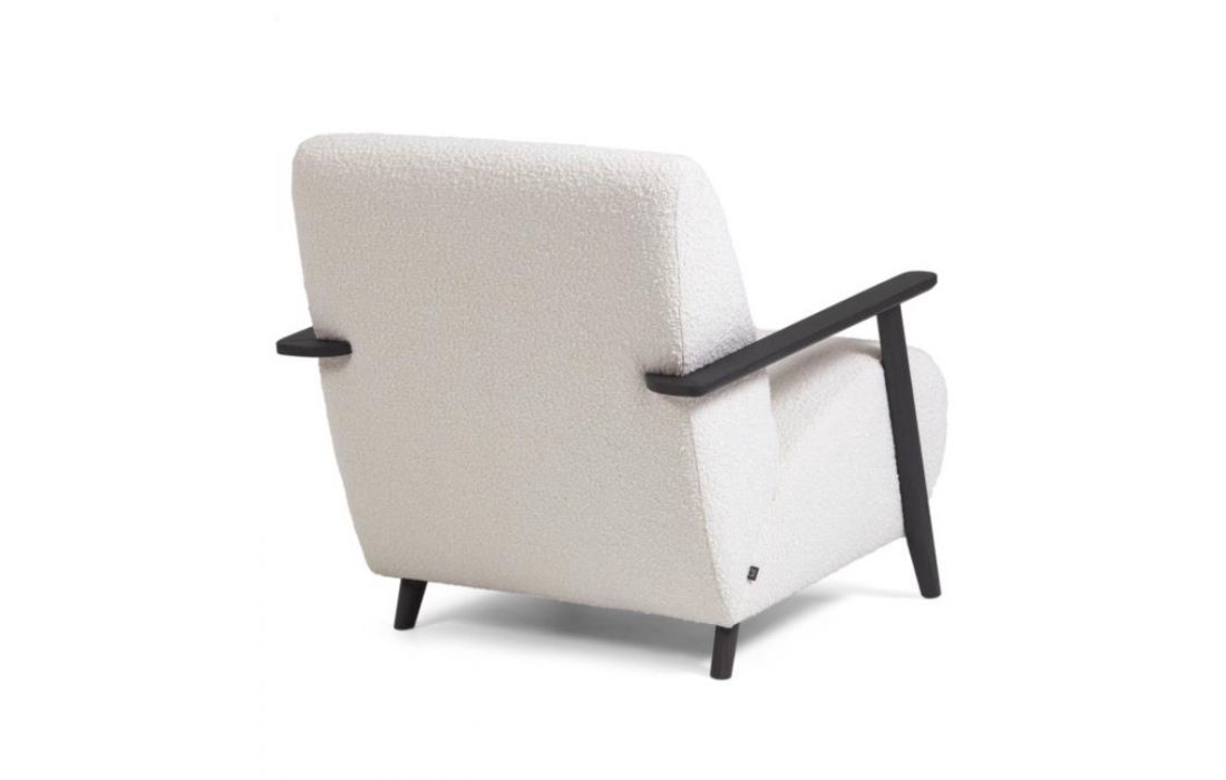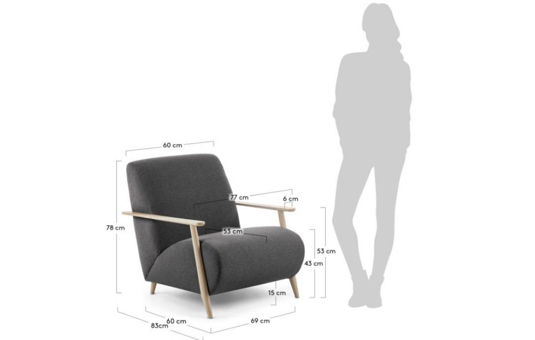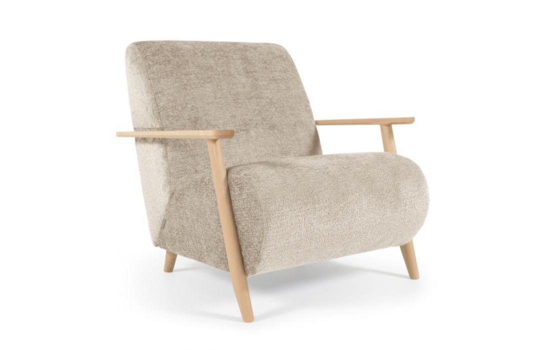 Cadeirão estofado em tecido e braços em madeira de freixo. Disponível em várias cores.Destinatário :