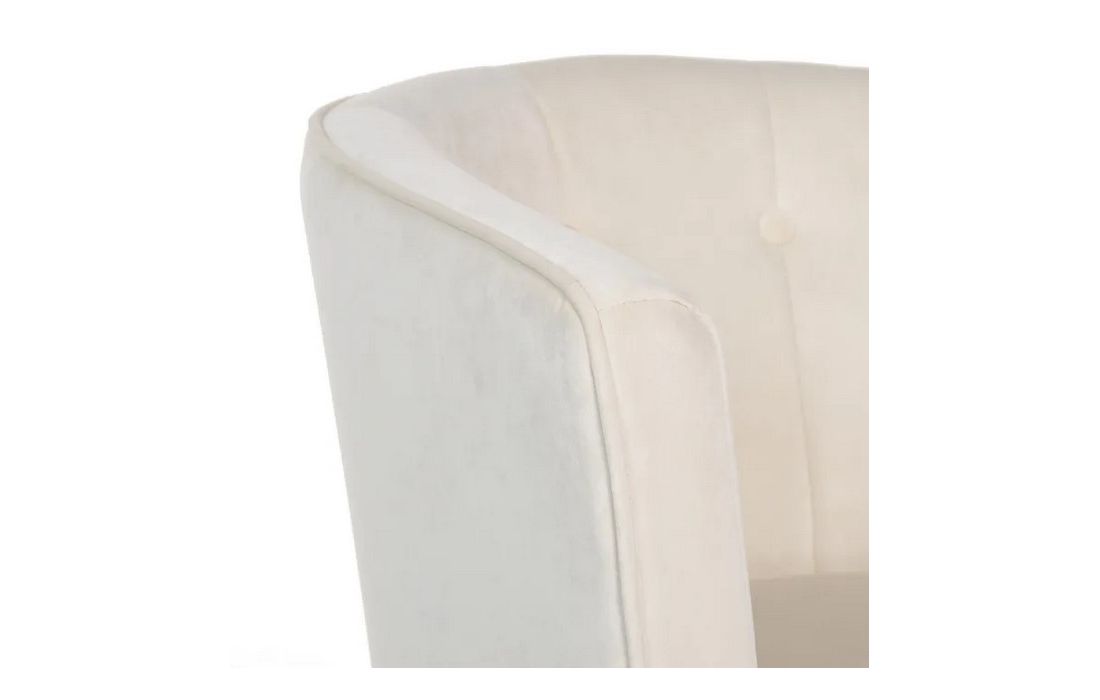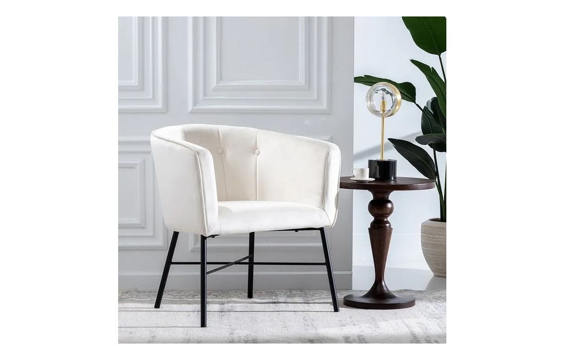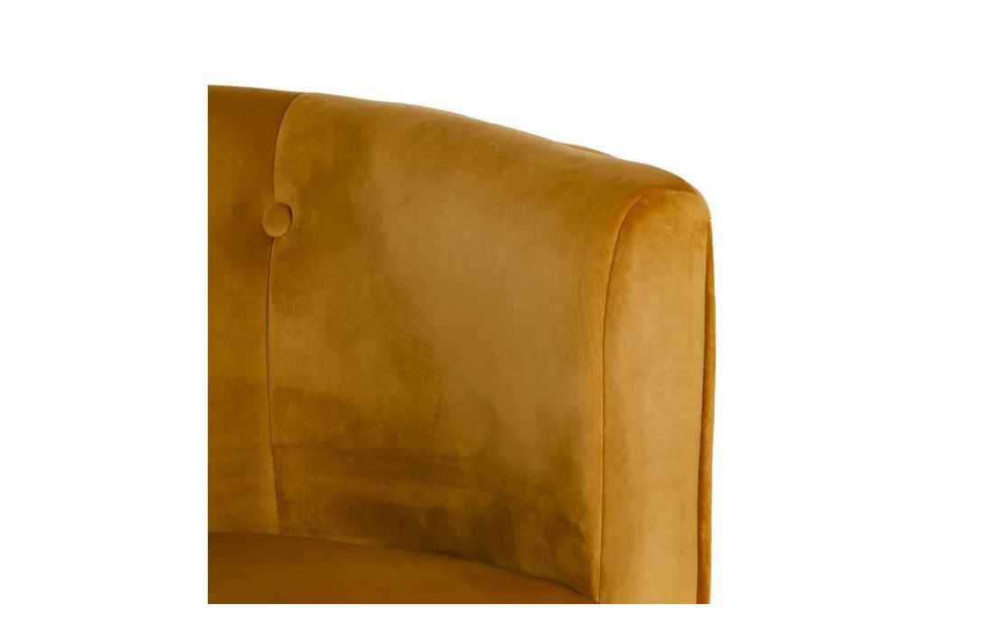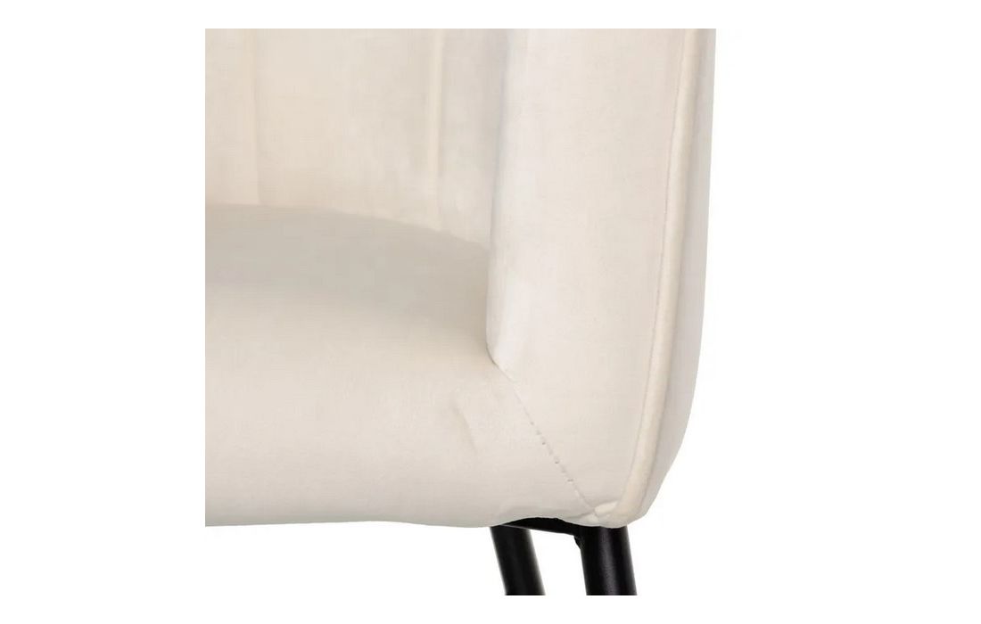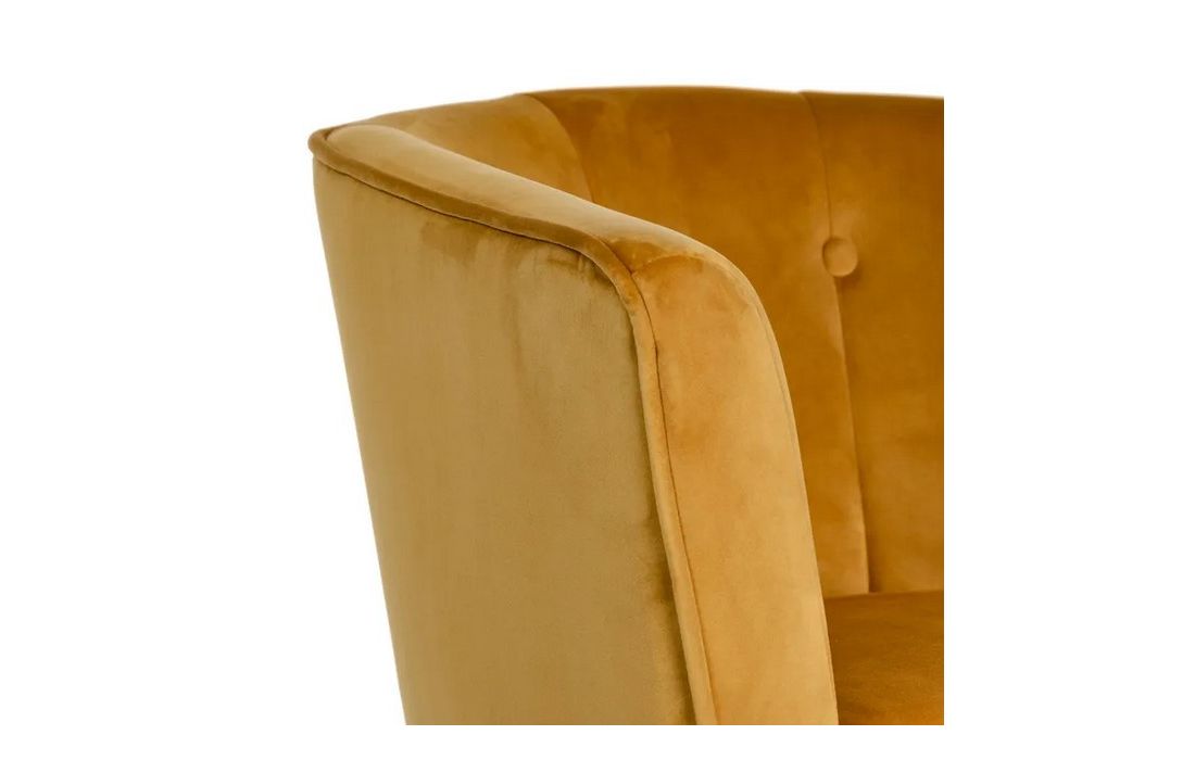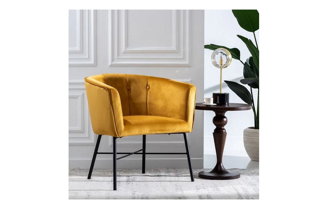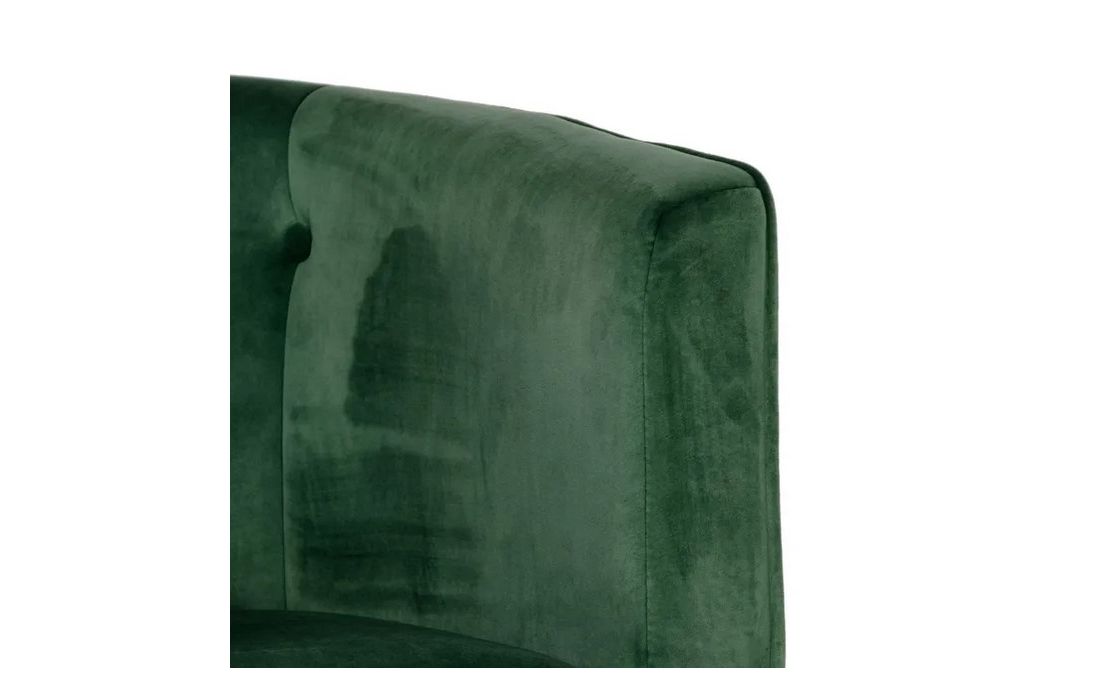 Poltrona com pé de aço preto estofada em tecido de veludo.