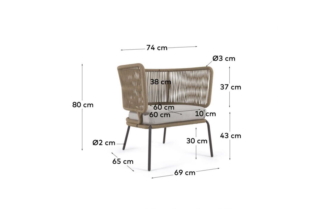 Especificações do Produto Tecido / Aço galvanizado / Corda Não fazemos qualquer alteração ao produto Manutenção e Limpeza Limpar com um pano seco Para tirar manchas deve usar um pano húmido e de seguida passar um pano seco Legenda de medidas (L) Largura (P) Profundidade(A) Altura