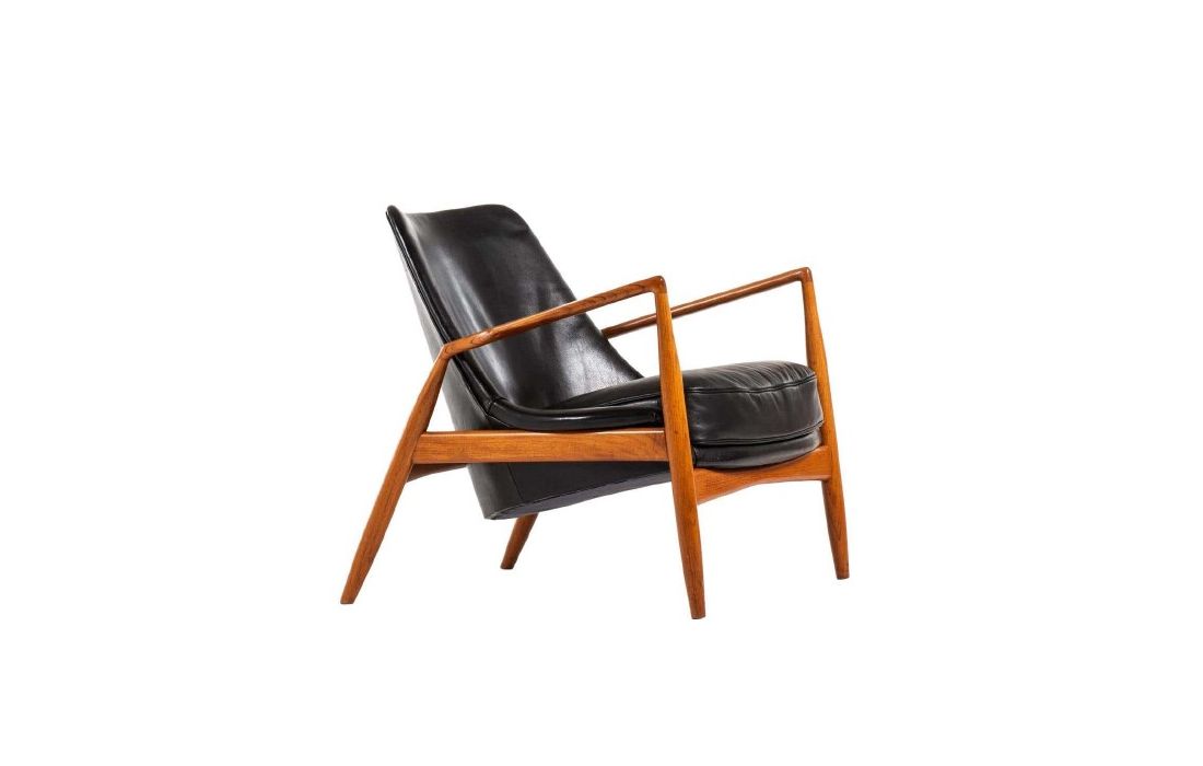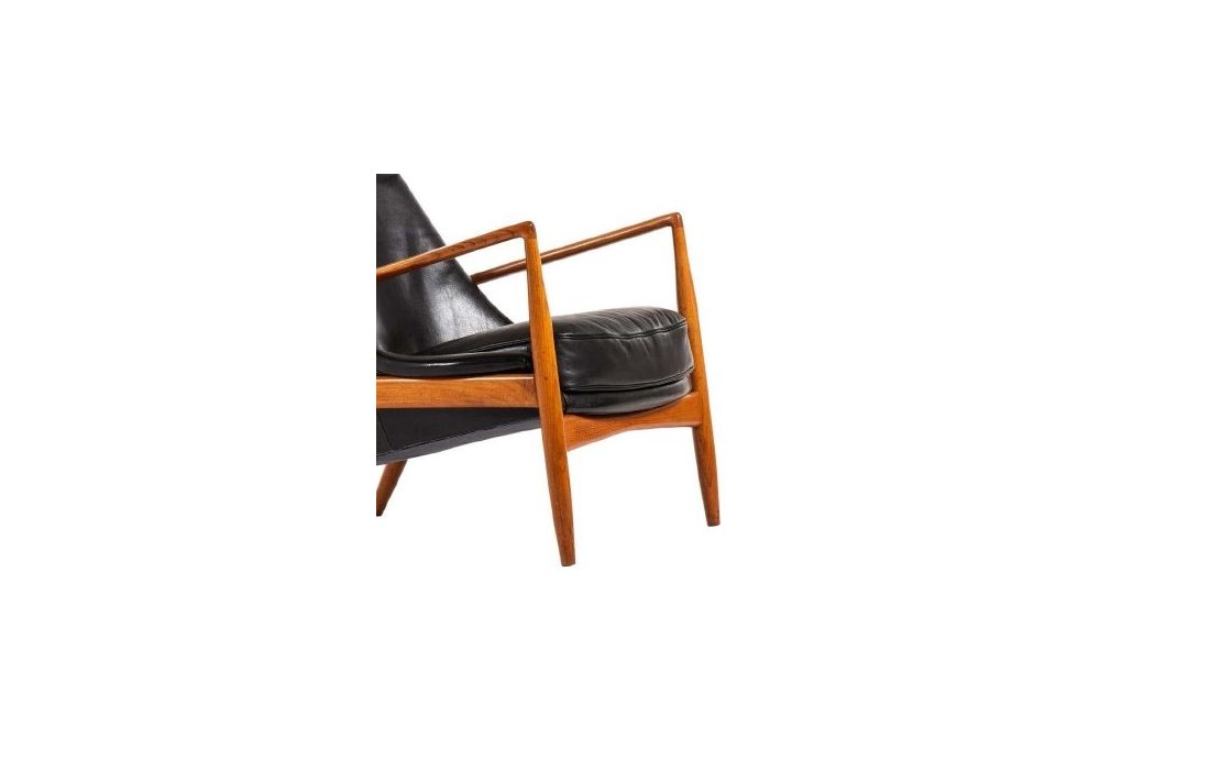 Cadeirão em madeira maciça de freixo e revestimento em tecido, pele sintética ou pele genuína.