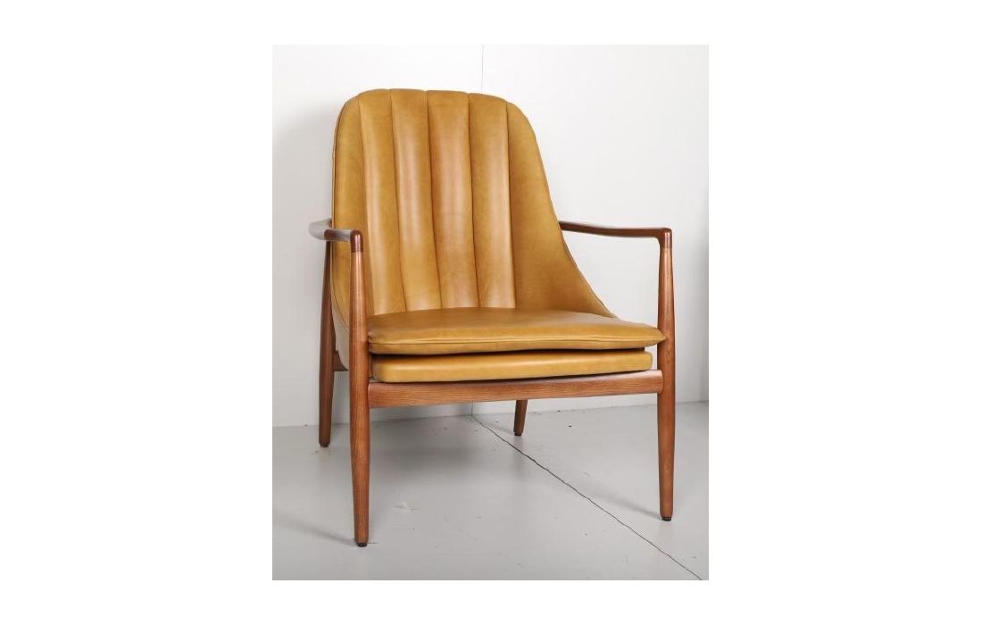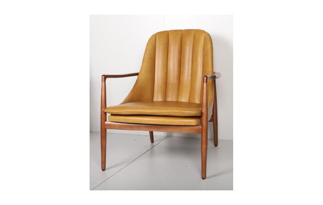 Cadeirão em madeira maciça de freixo e revestimento em tecido, pele sintética ou pele genuína.